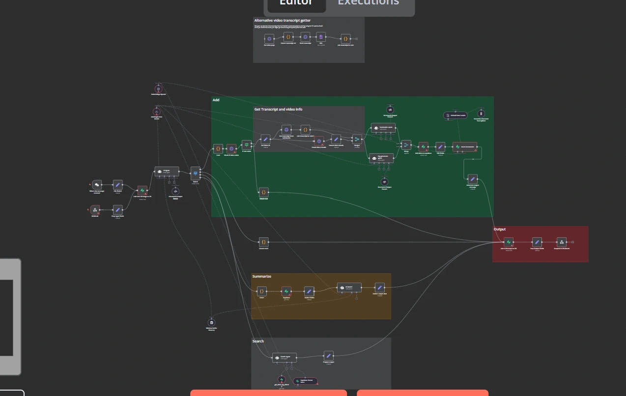 This n8n workflow is a comprehensive automation solution for extracting, processing, and utilizing video content, primarily focusing on transcription and summarization. It appears to act as a "Video Content Processing Hub," taking raw video inputs, retrieving transcripts, and then intelligently processing that text for various outputs.