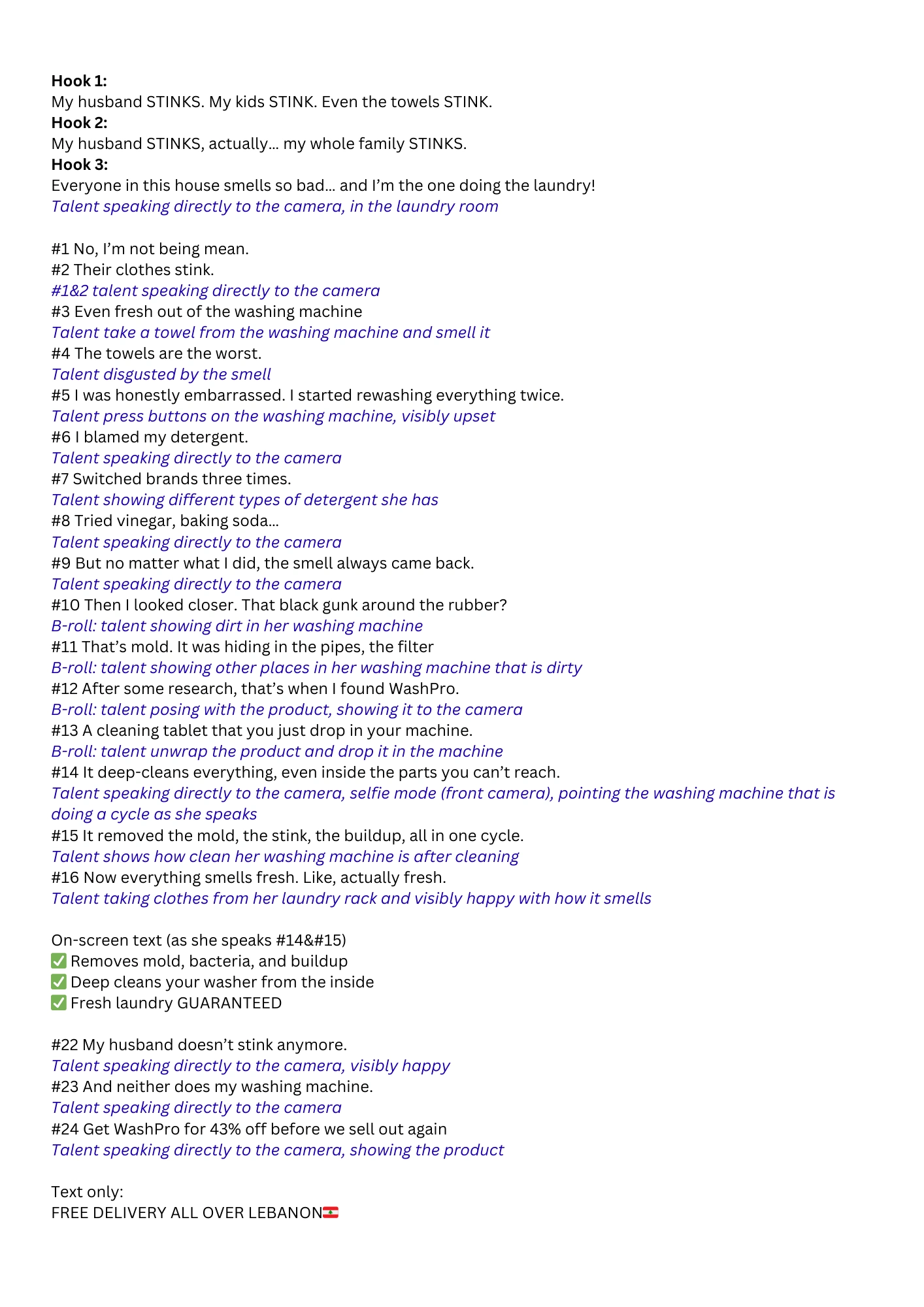One of the biggest challenges was finding a direct-response creative strategist who truly understood the Lebanese market, both culturally and linguistically. Fortunately, the client was more than happy to bridge that gap: I wrote the scripts in English, and he translated them into Lebanese to ensure they sounded natural and locally authentic.