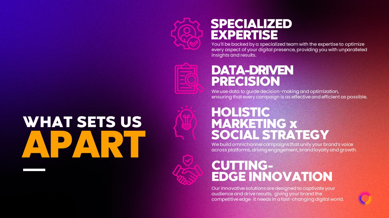 It highlights the agency’s expertise in building seamless omnichannel campaigns that ensure consistent brand messaging across all digital touchpoints, including social media, paid advertising, content marketing, and customer journey optimization.