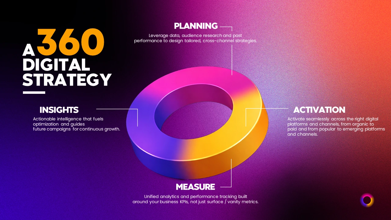Digital marketing pitch deck showcasing omnichannel strategies, data-driven insights, and creative campaigns to drive engagement, brand growth, and conversions.