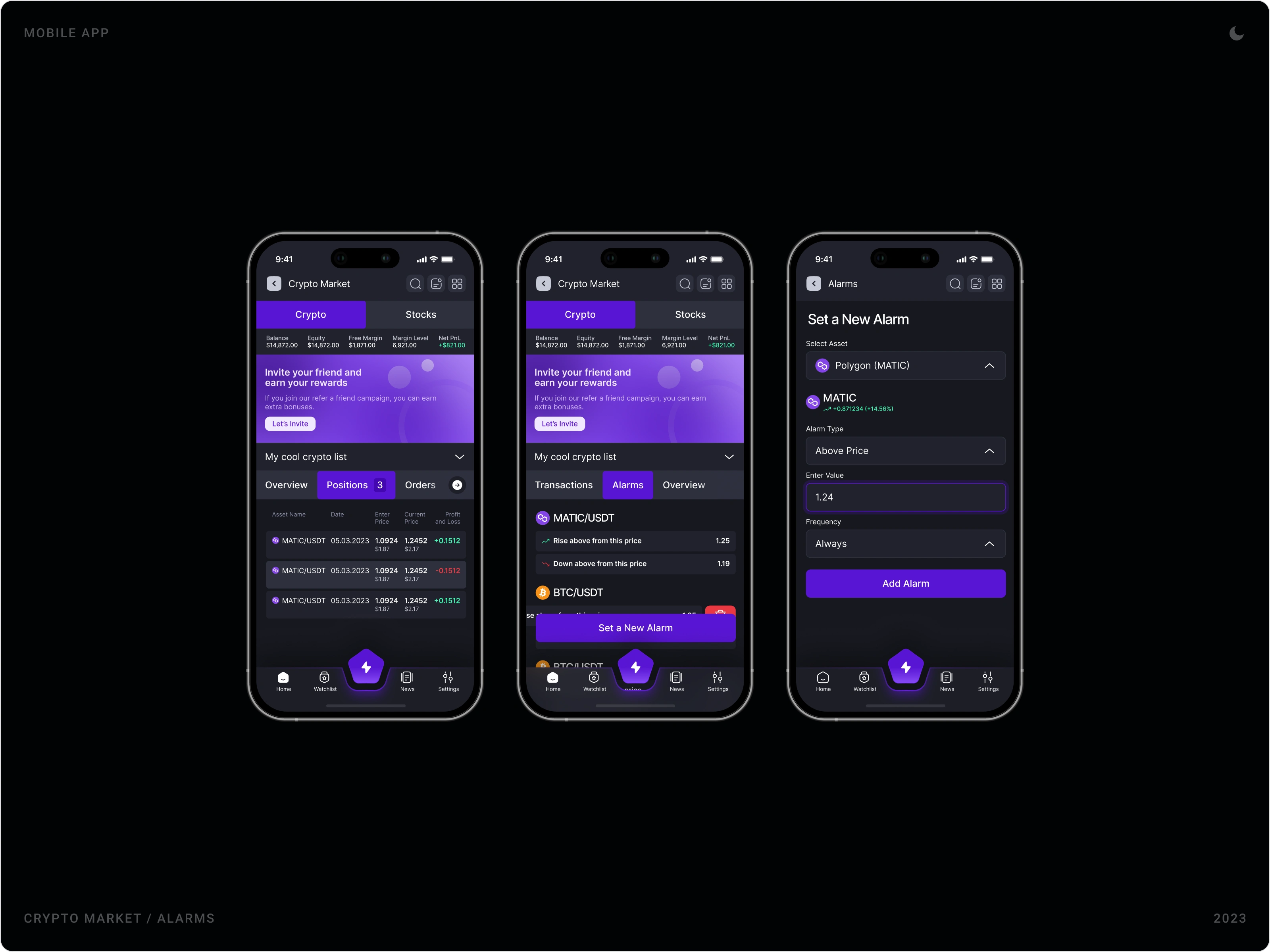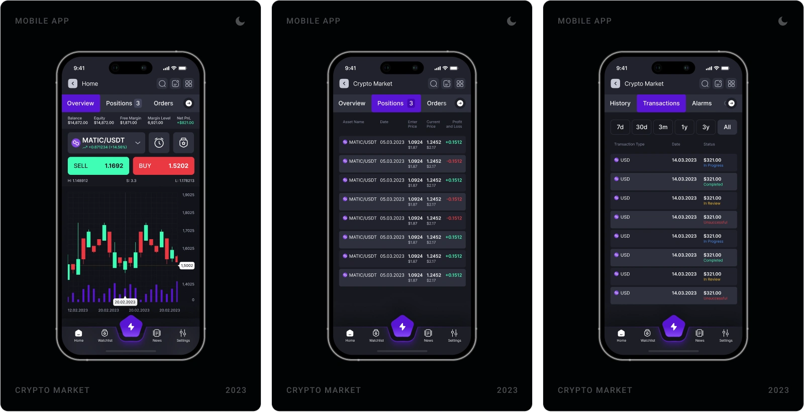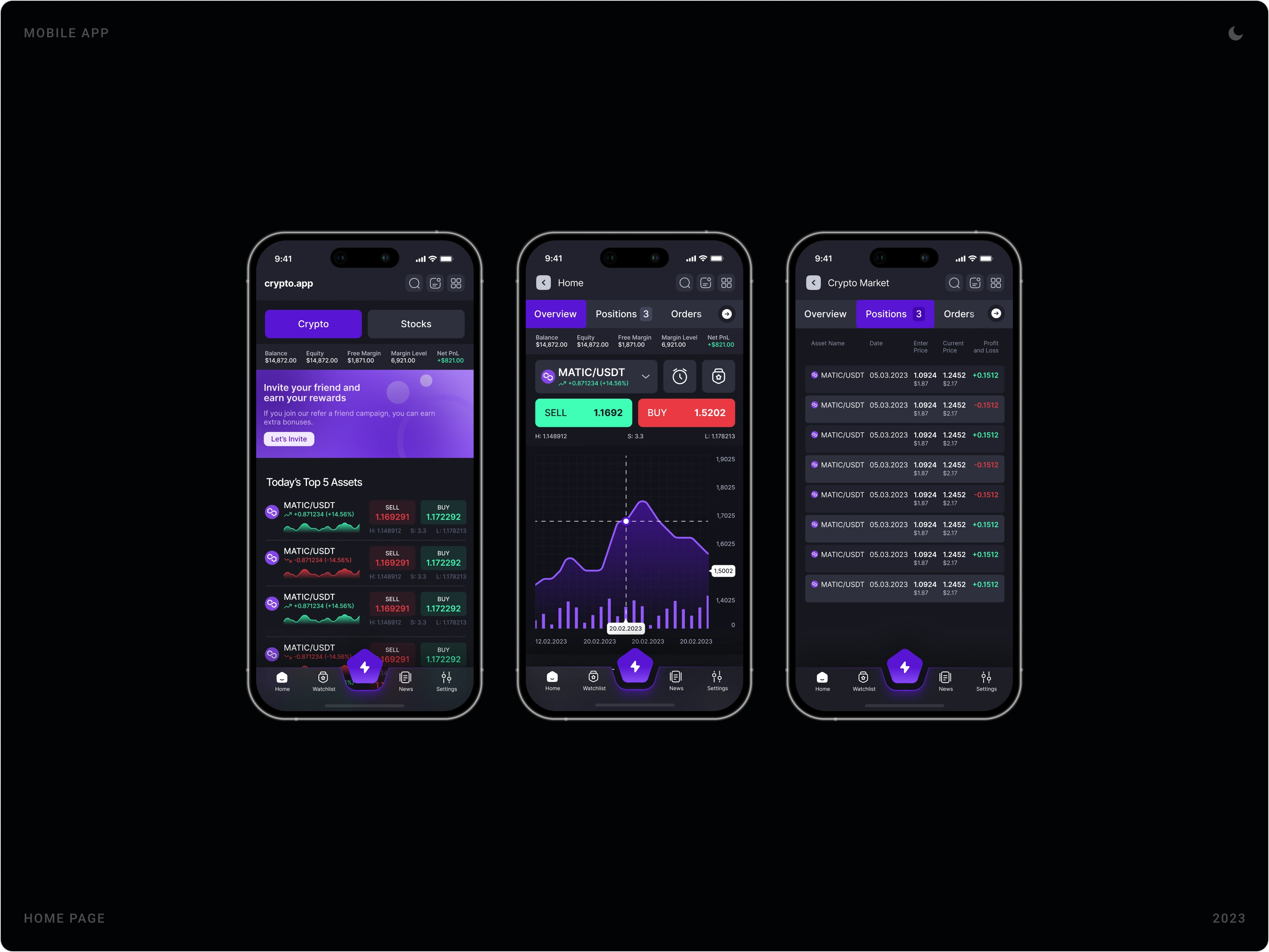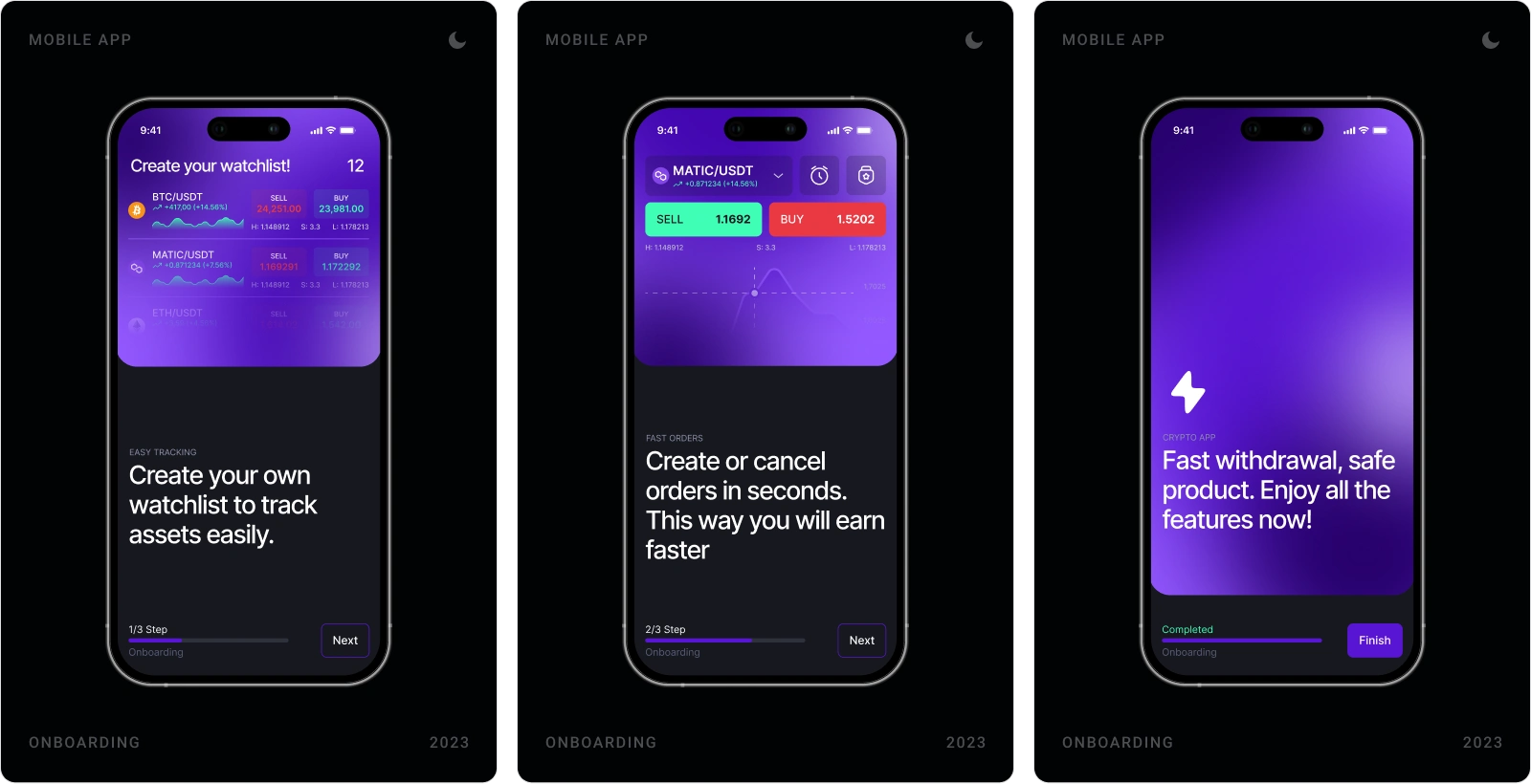 Crypto App was designed as a high-clarity, real-time trading and asset management experience tailored for modern crypto users. The goal was to create a powerful yet intuitive mobile interface that simplifies market tracking, portfolio control, and transaction execution while maintaining speed and security at its core. From trading flows and asset lists to wallet management and security settings, the product was structured to balance performance, usability, and visual immersion.