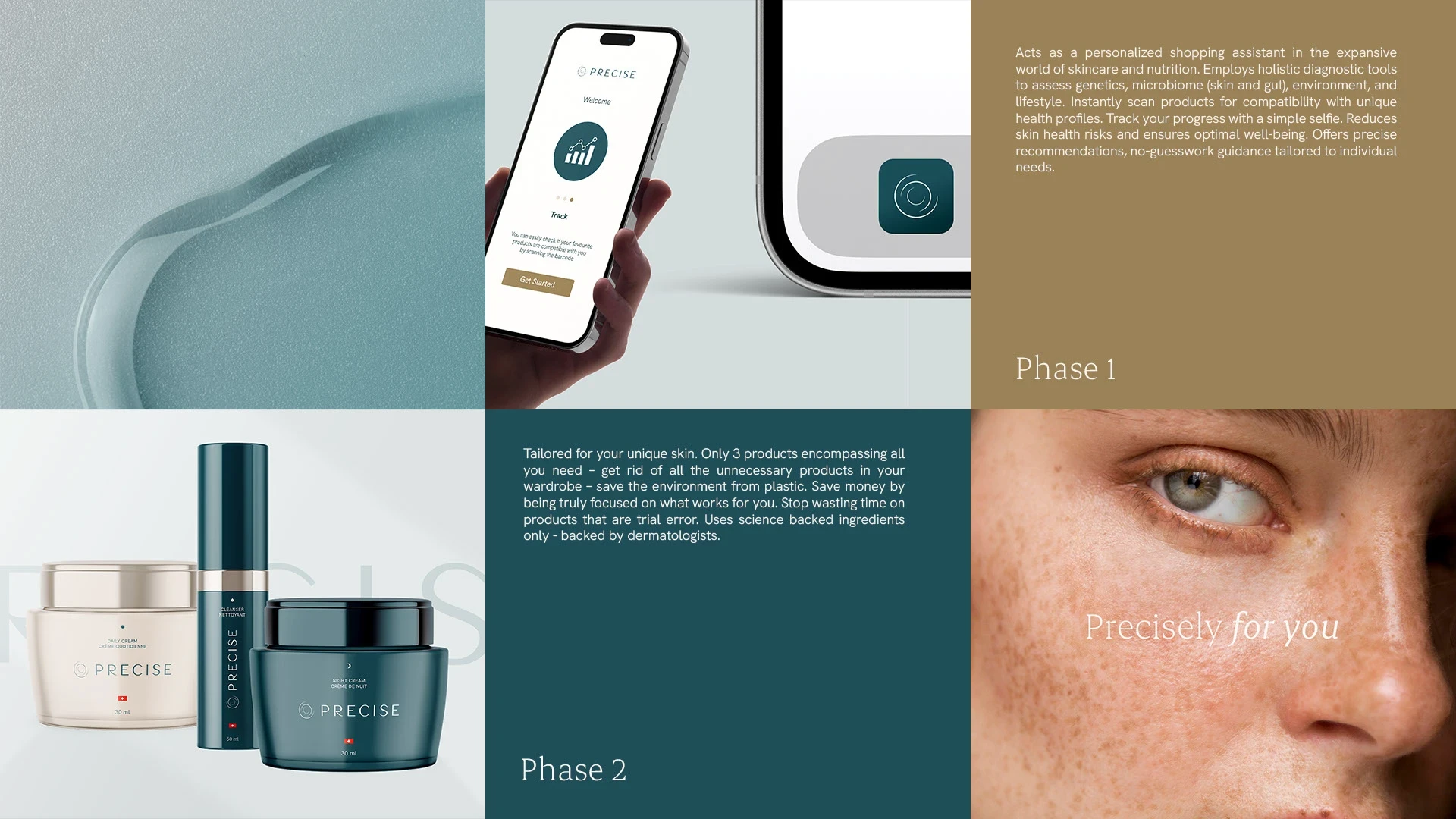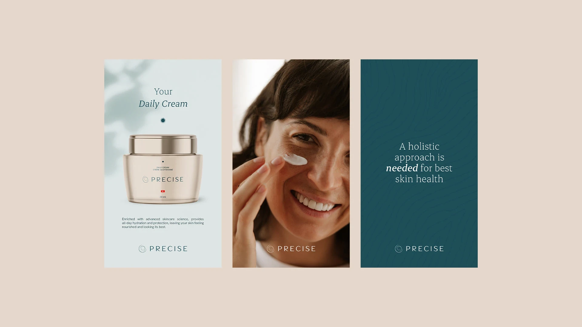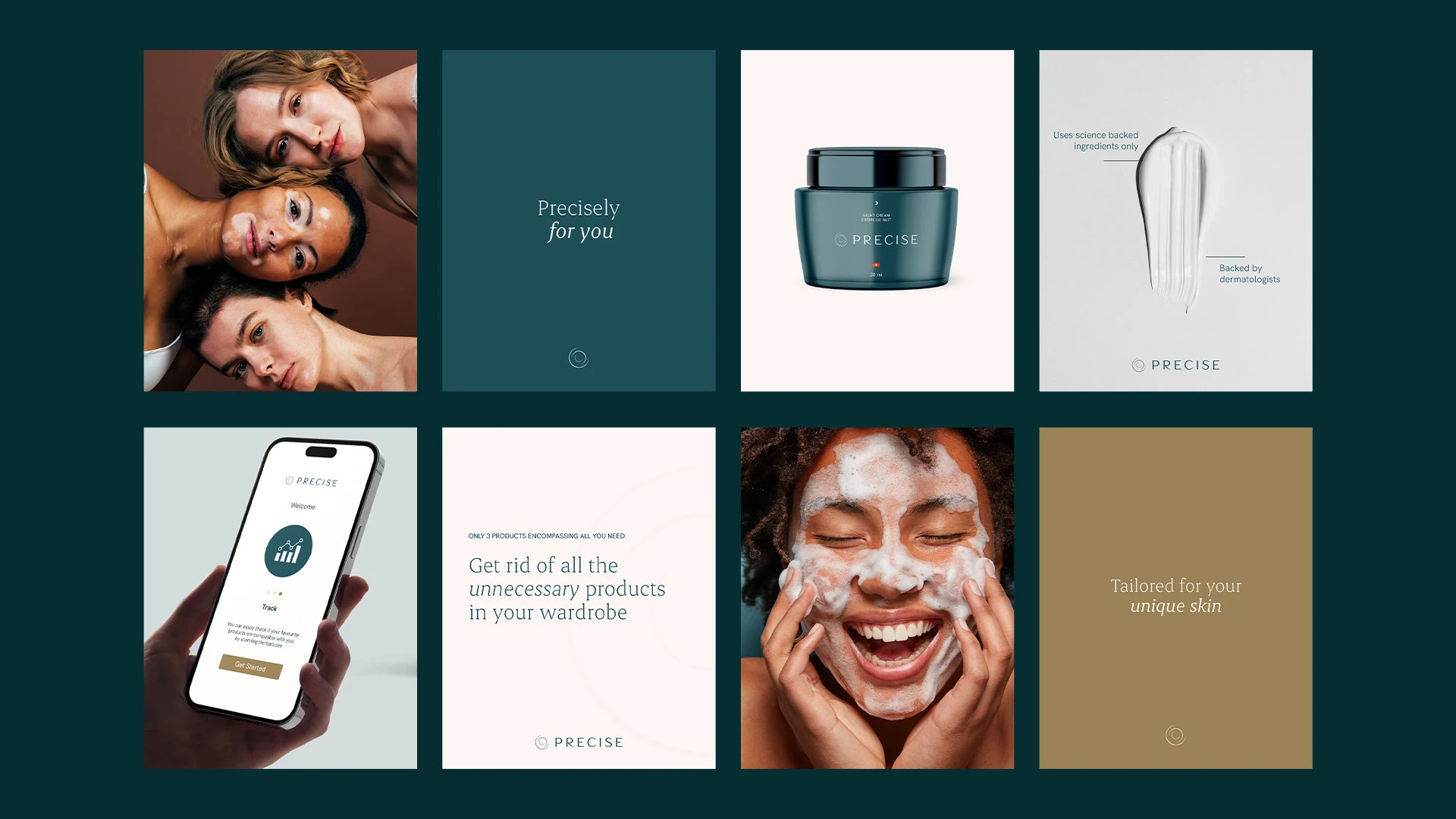 I’ve crafted a clean, modern and digital visual identity—the meticulously chosen color palette mirrors the brand’s core attributes and values. The Precise logo was crafted using a modern and elegant typography, with a distinctive curve modification in the letter “R,” adding personality and distinctiveness. The symbol for the brand, inspired by a target with strategic openings, embodies the essence of precision and accuracy. Its clean, minimalist design reflects modernity and simplicity, highlighting the brand’s commitment to health.