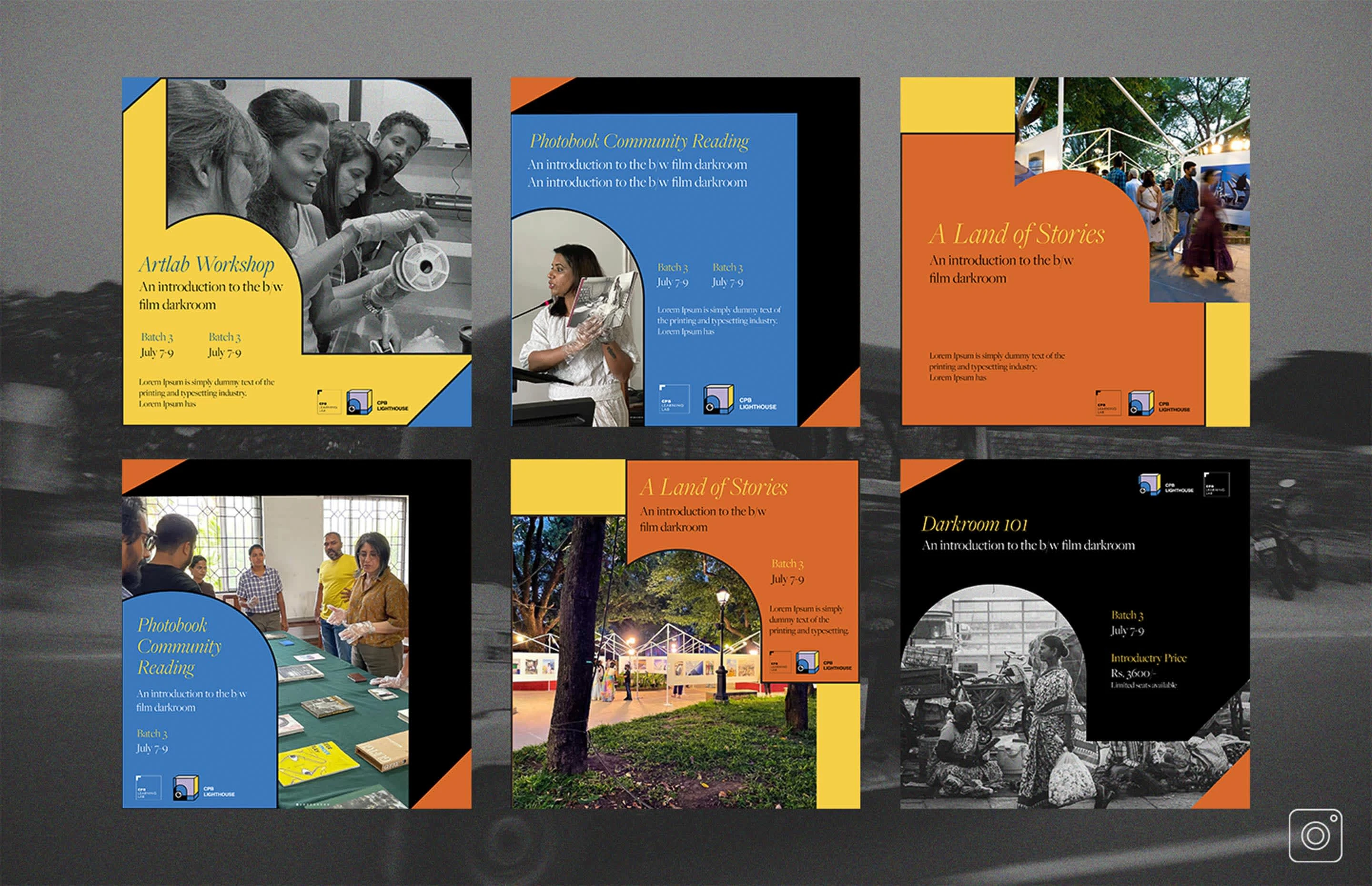 Chennai Photo Biennale Lighthouse is a one-of-a-kind community space designed for photographers and photography enthusiasts. Envisioned as a hub with a darkroom, library, gallery, and art lab, Lighthouse caters to everyone — from students and hobbyists to professionals and art lovers. Our challenge was to deeply understand how Lighthouse functions, break it down into clear, approachable parts, and design an identity that captures its inclusive and versatile spirit while extending the visual language of Chennai Photo Biennale.