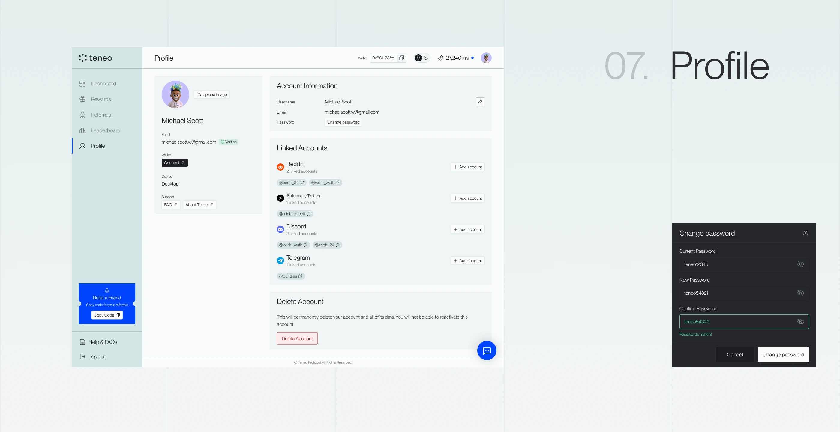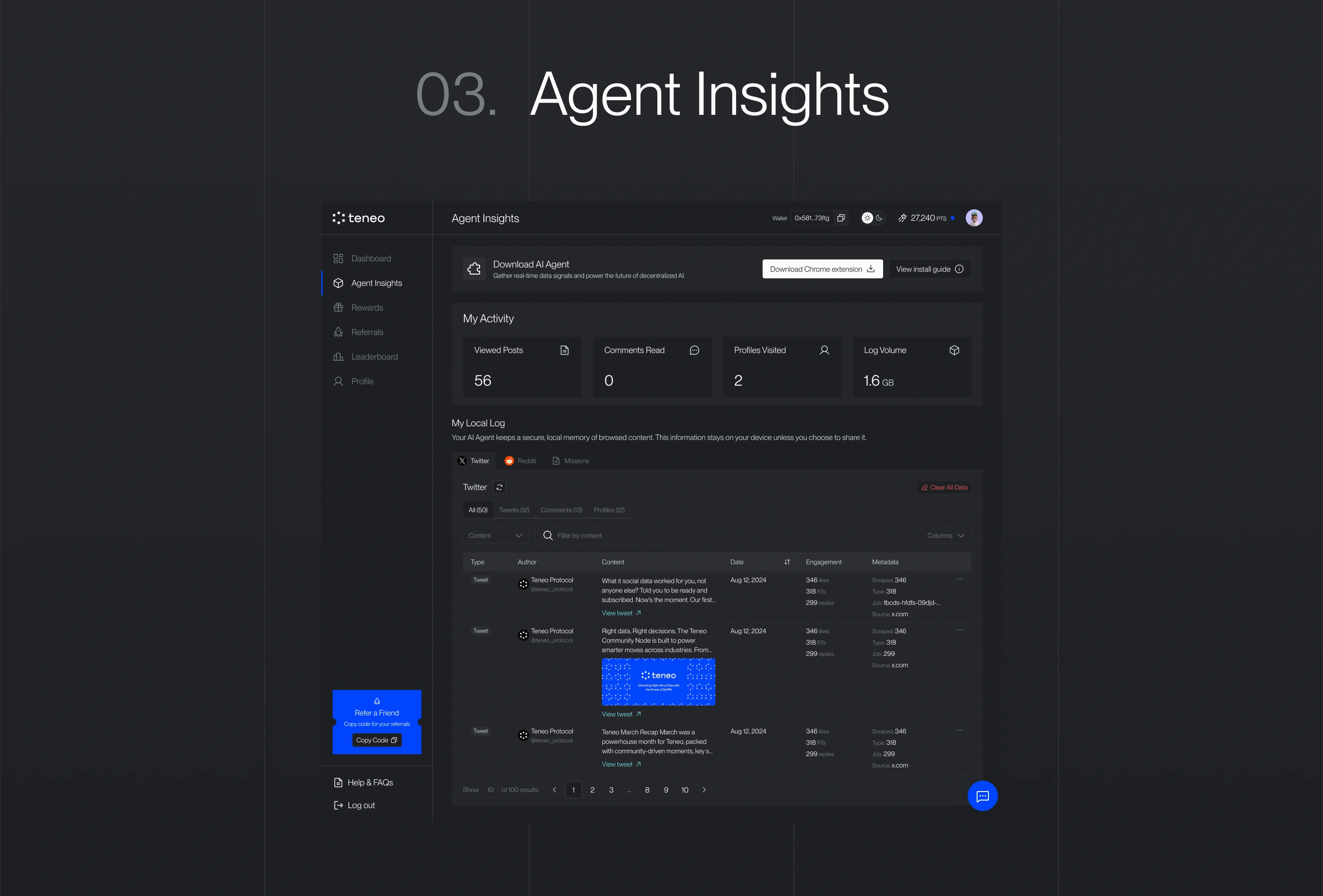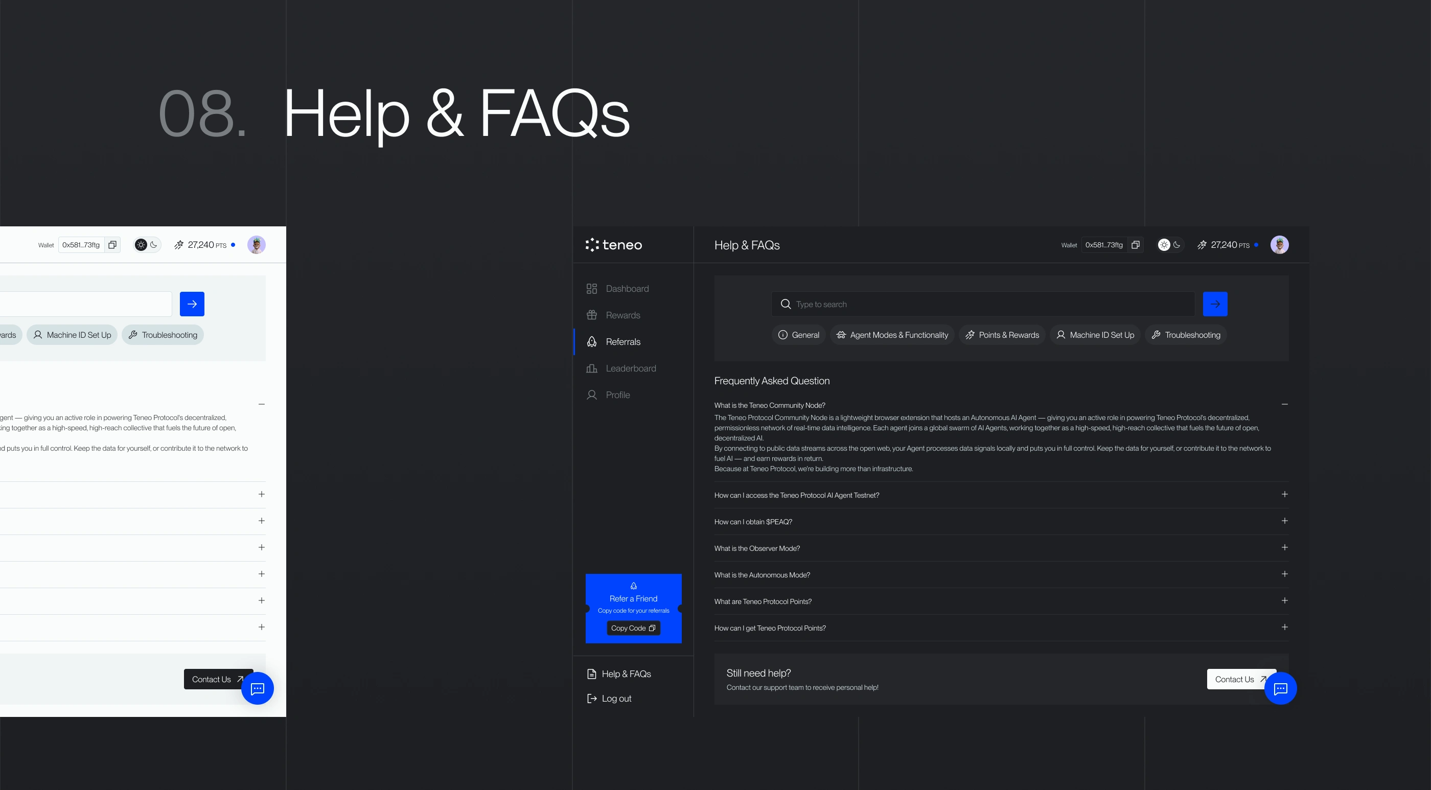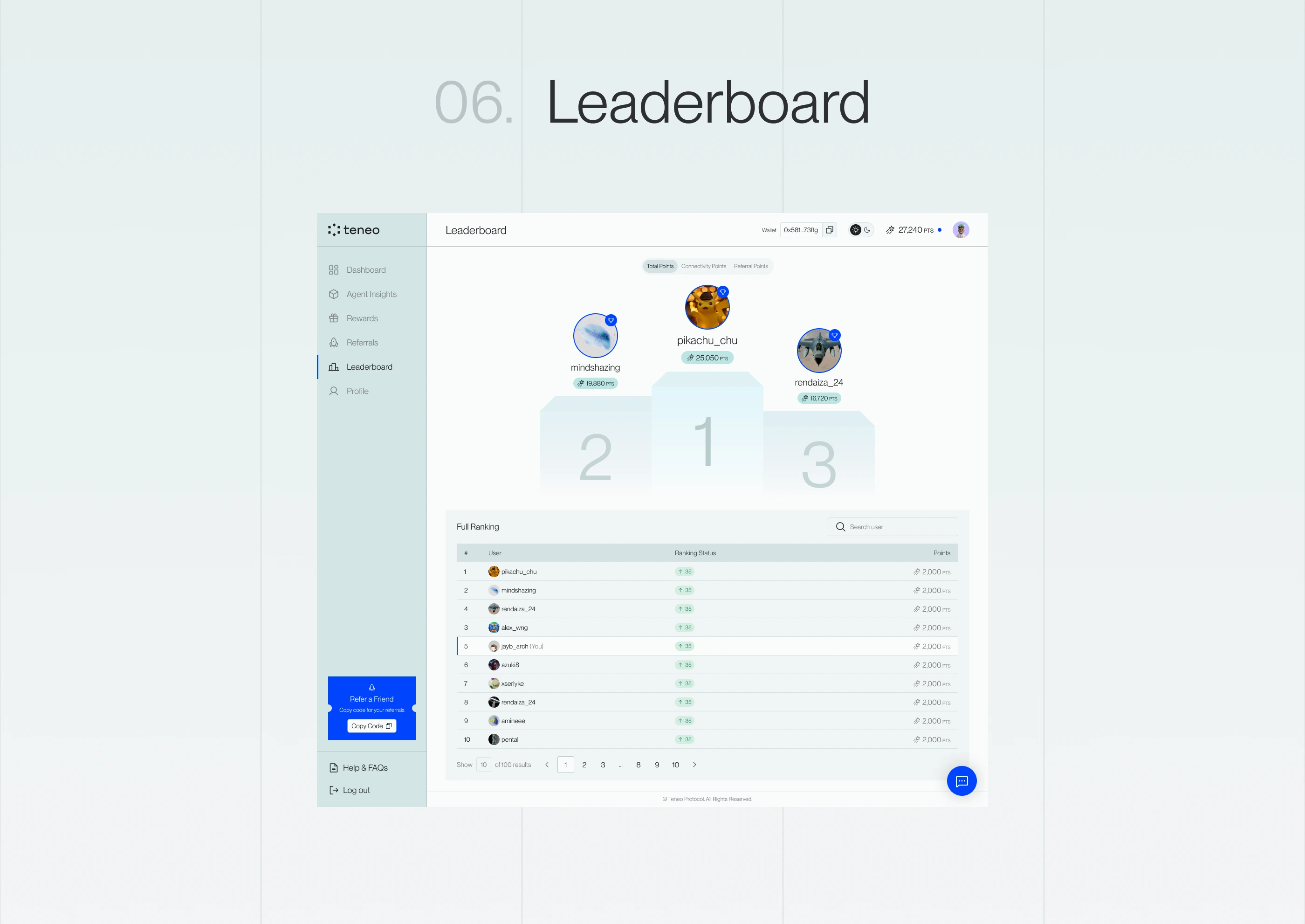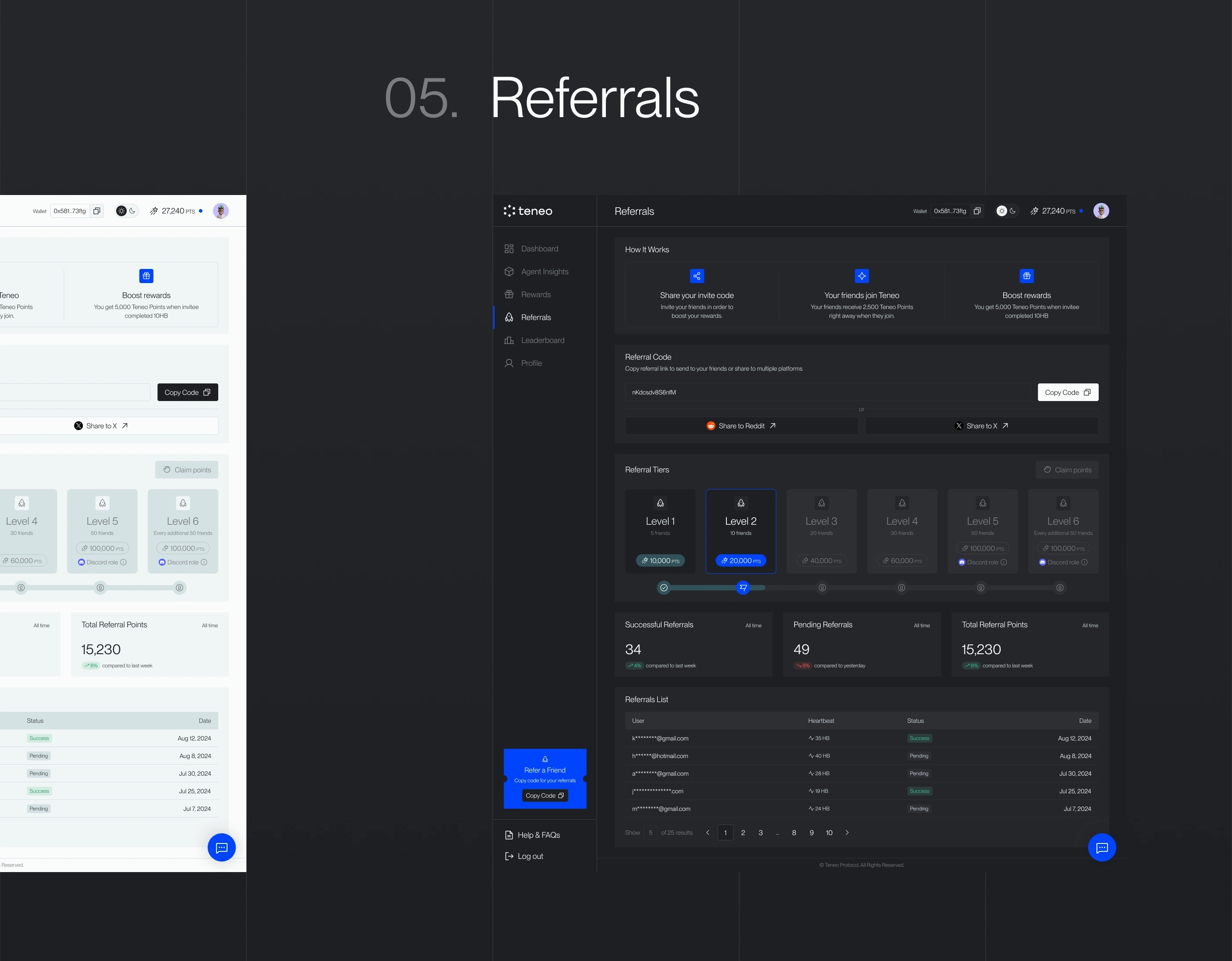 The Referralsenable users to invite others to the protocol, supporting organic growth within the Teneo ecosystem.