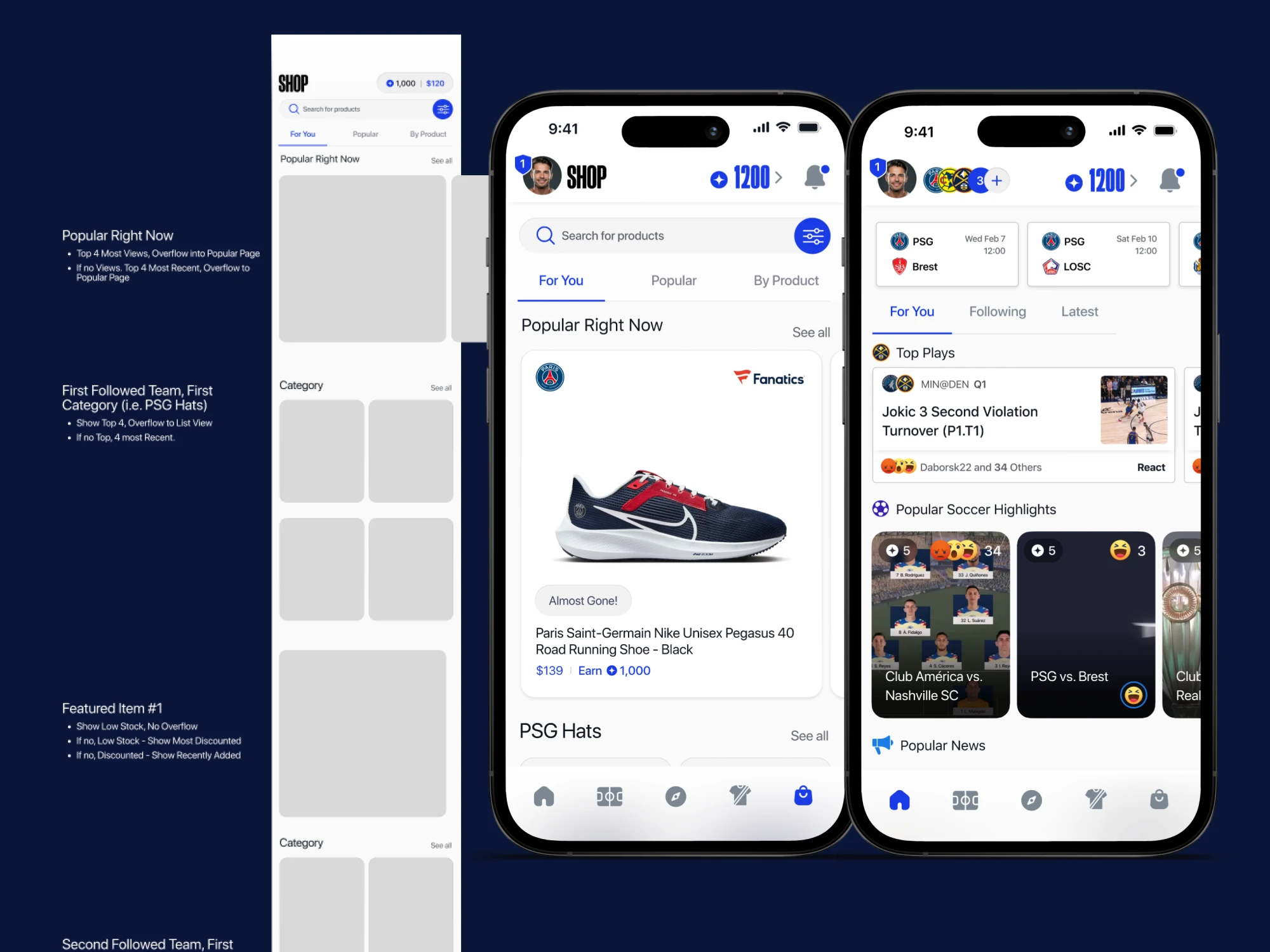 The excitement of sports fandom comes in many forms - sharing moments with friends, sh*t-talking them, wearing your team's colors and sharing in the feeling of victory. For StarX to be relevant it had to tap into all of these feelings while not trying to replace the current experiences - ESPN, The Athletic, Twitter, Instagram and Fanatics are not competitors but relevant engagement vectors that already exist. That starts with the StarX app being aware of the fan's favorites and prioritizing relevant rewards and content.