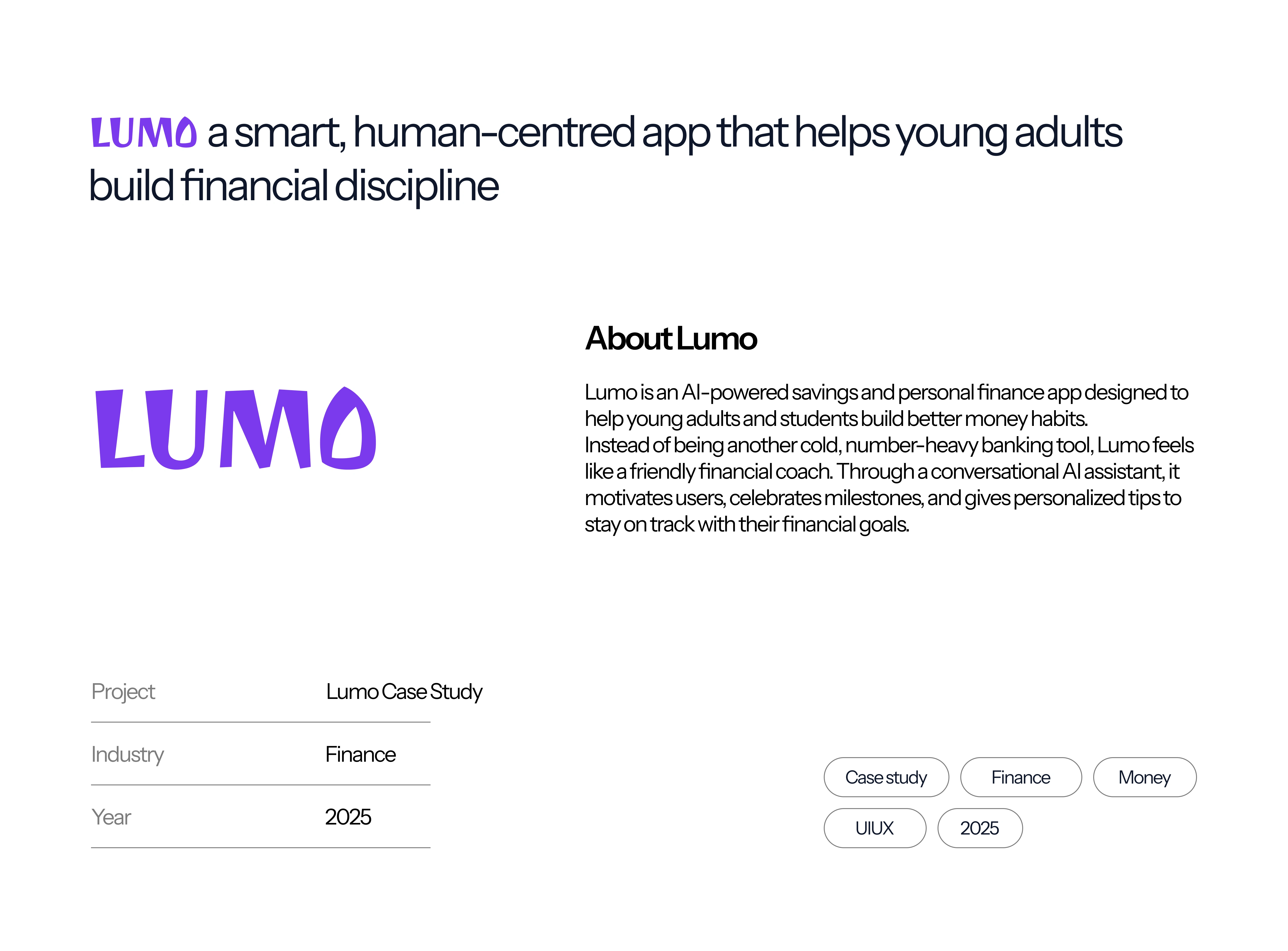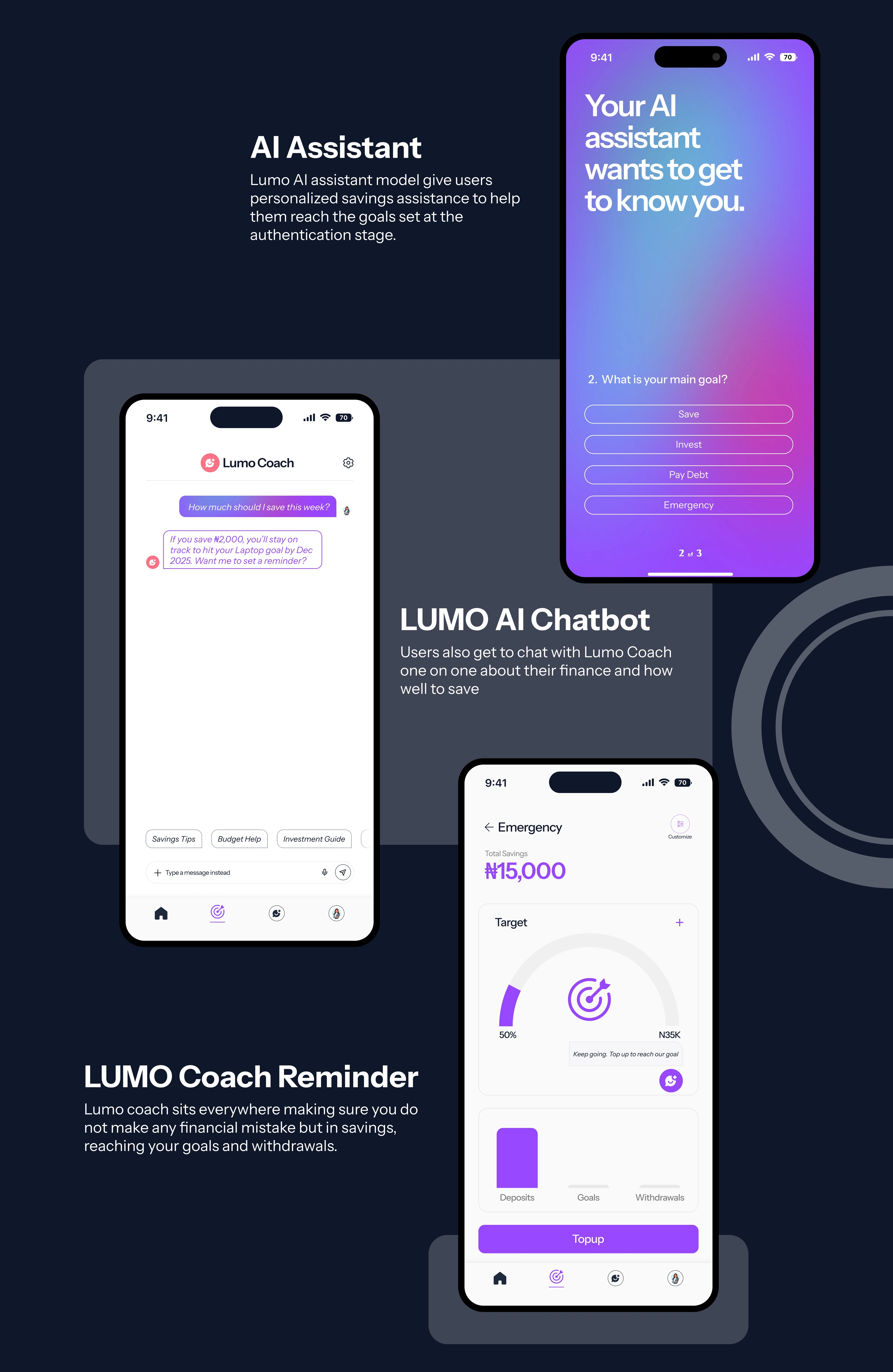 Lumo is a human cenetered AI based app that helps young adults with financial supports and discipline.