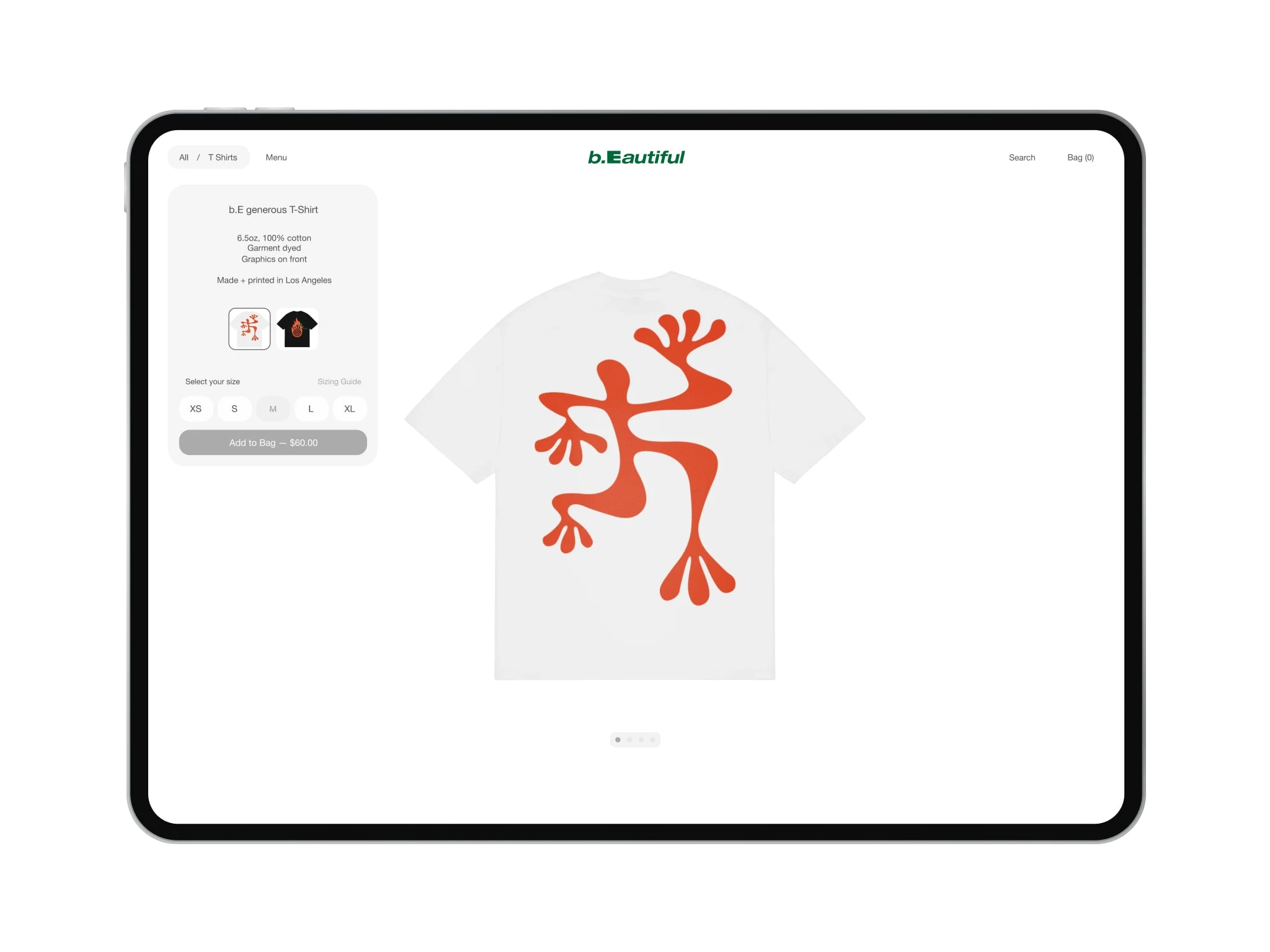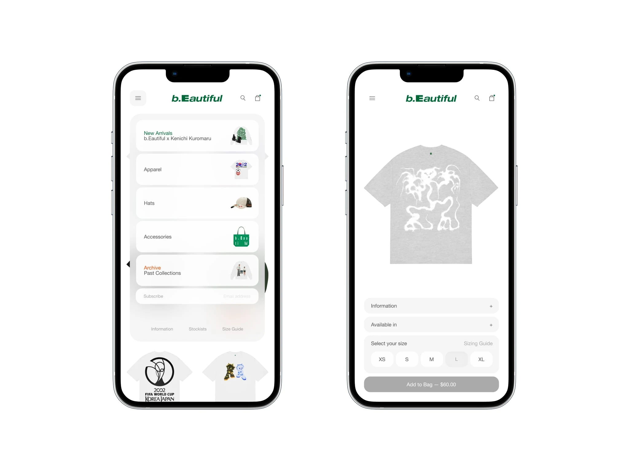 Digital platform for b.Eautiful, eclectic merchandise brand showcasing Japanese phenomena.