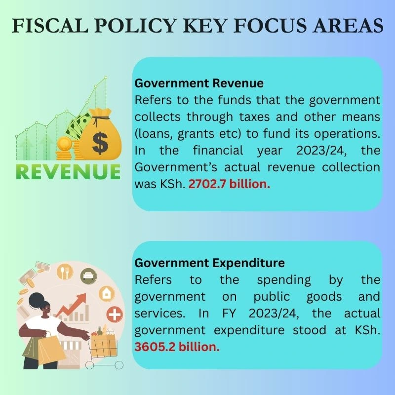 In FY 2023/24, Kenya collected KSh 2702.7B in revenue but spent KSh 3605.2 B, highlighting a fiscal gap driven by higher public spending than income.