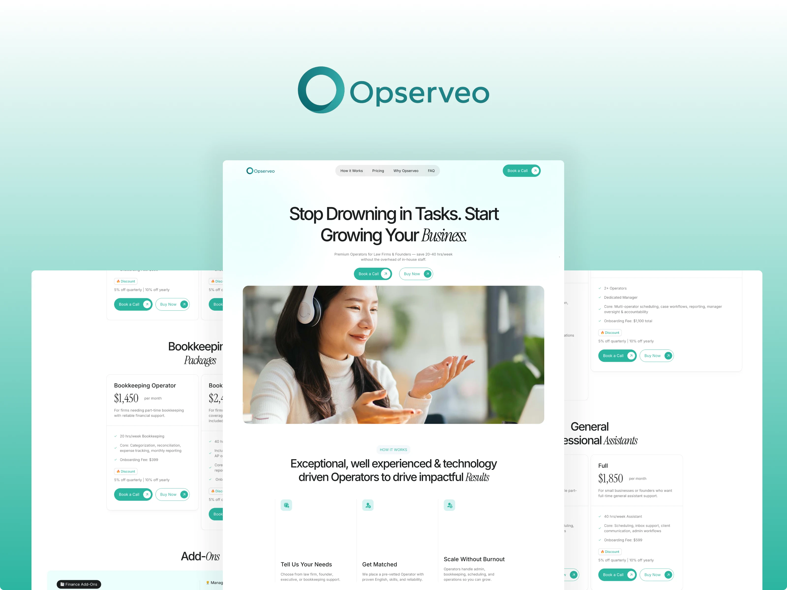 Opseveo Framer website design built for conversion . Featuring a sleek, responsive design ,it showcases services, Pricing, Why Us, FAQ, Testimonies and CTA