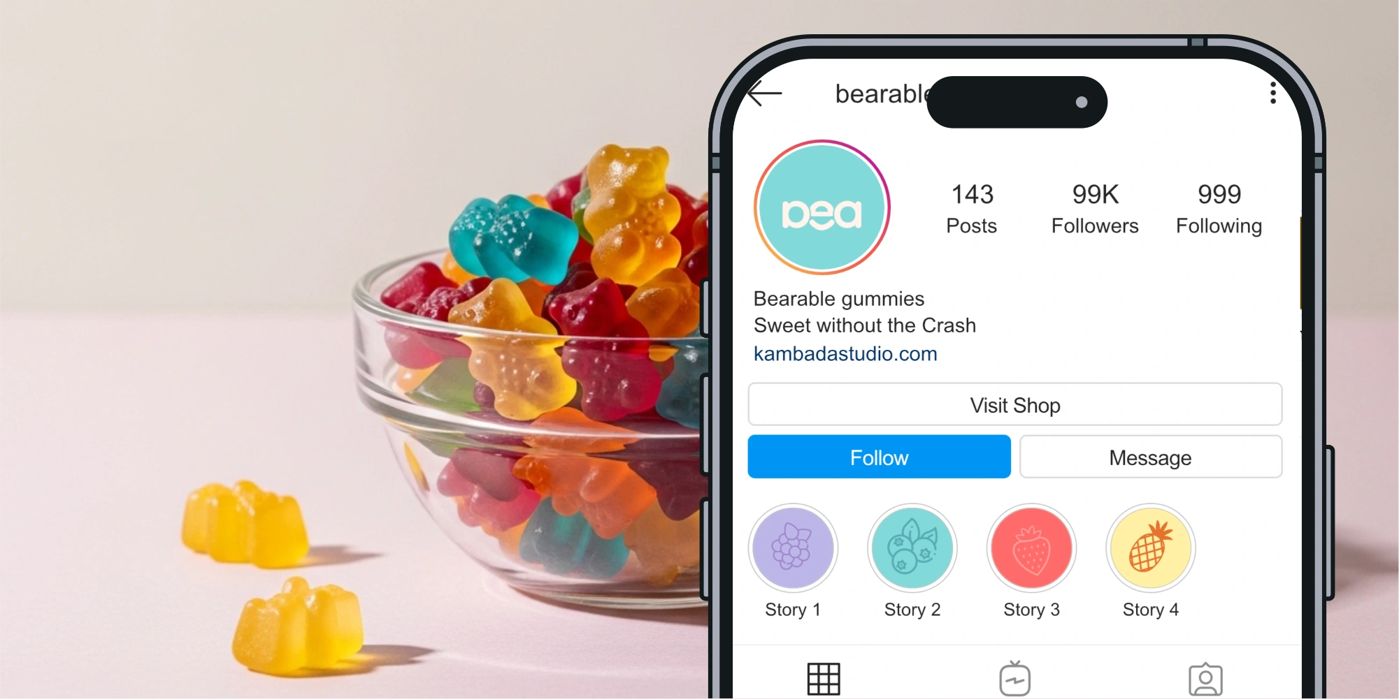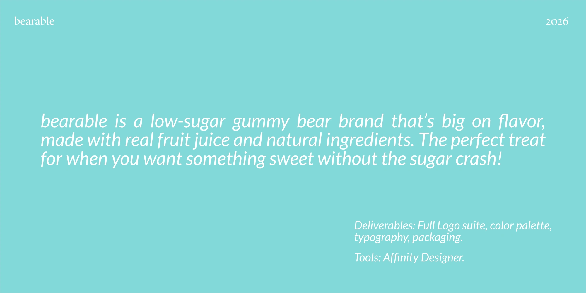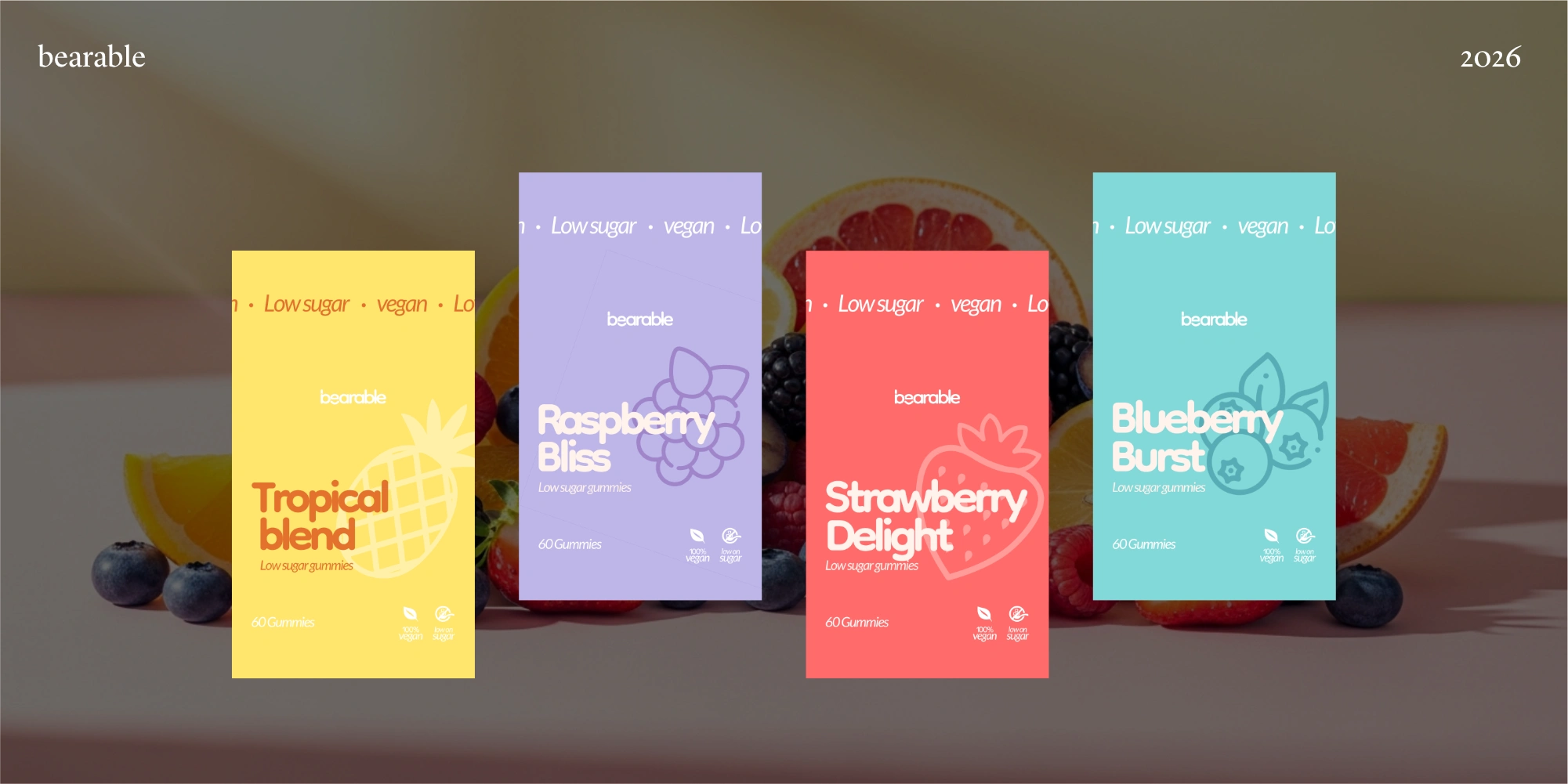 Bearable is a low-sugar gummy bear brand created for people who want to enjoy something sweet without the usual sugar crash. The brand is built around bold flavor, real fruit juice, and natural ingredients, positioning Bearable as a smarter, feel-good treat that doesn’t compromise on taste.