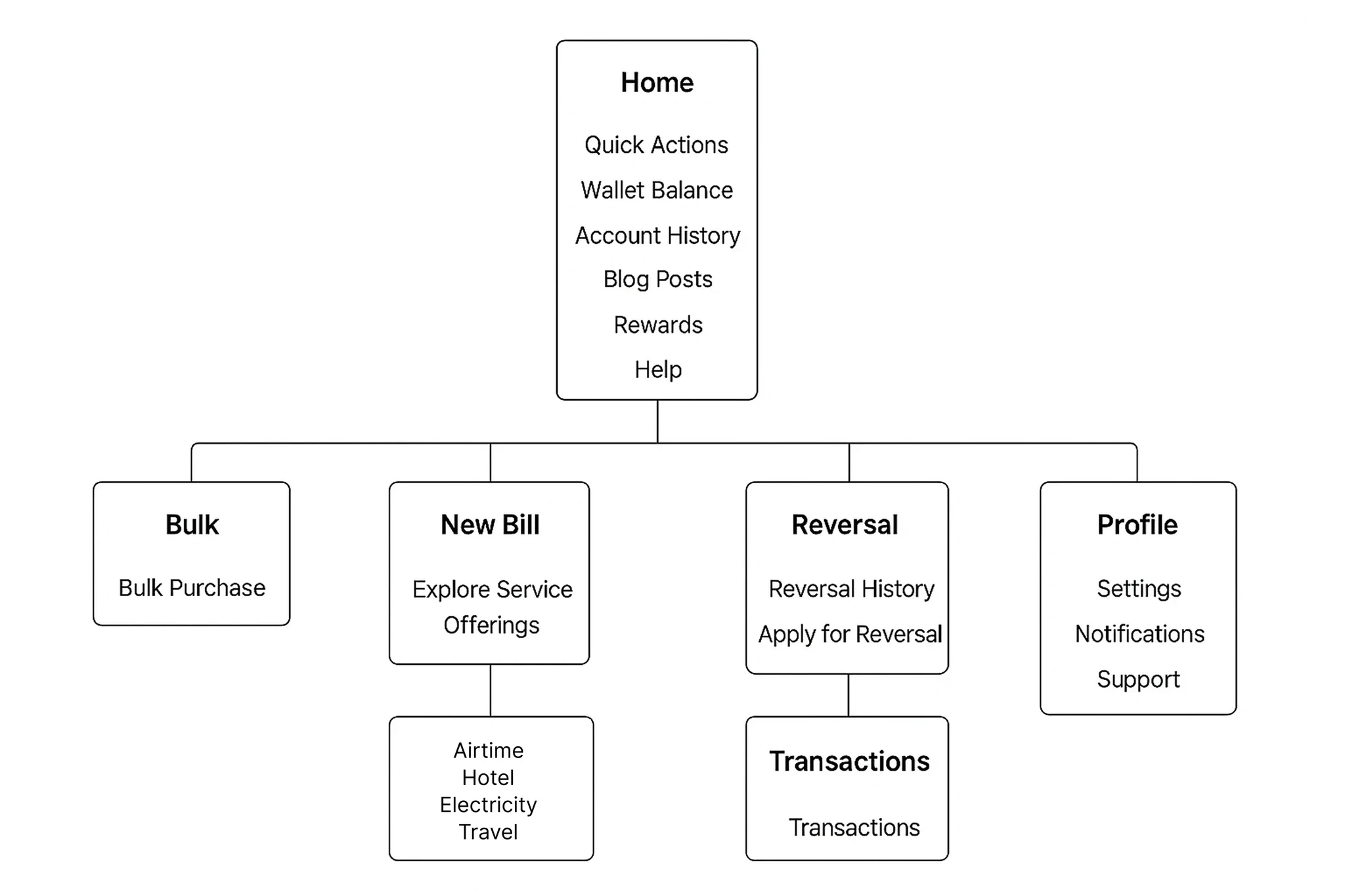 Once I had a few solid ideas, I moved into Figma to build wireframe prototypes, which I used to test usability with non-Web3 users specifically. The goal was to observe whether everyday users could perform common actions like buying airtime or paying a bill without any confusion or extra guidance.