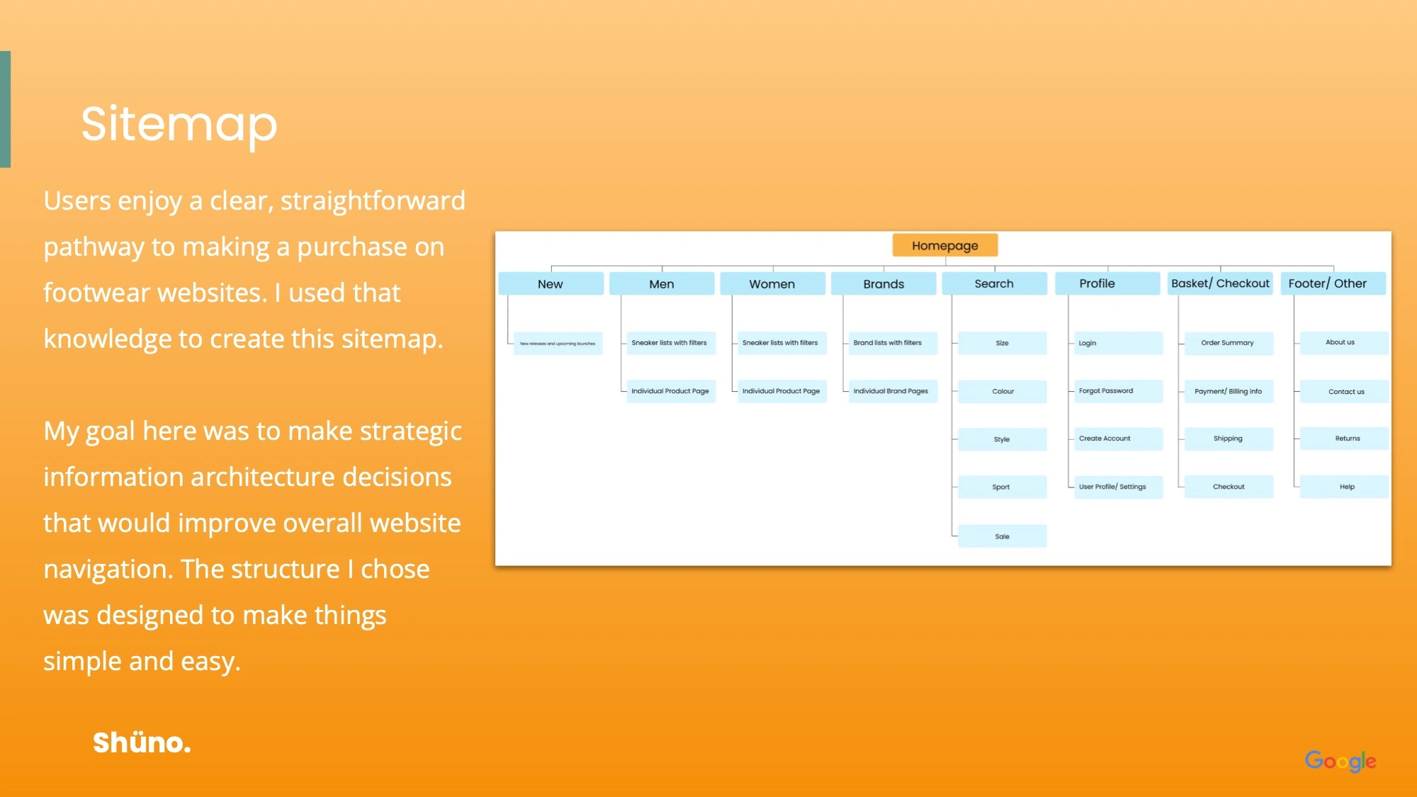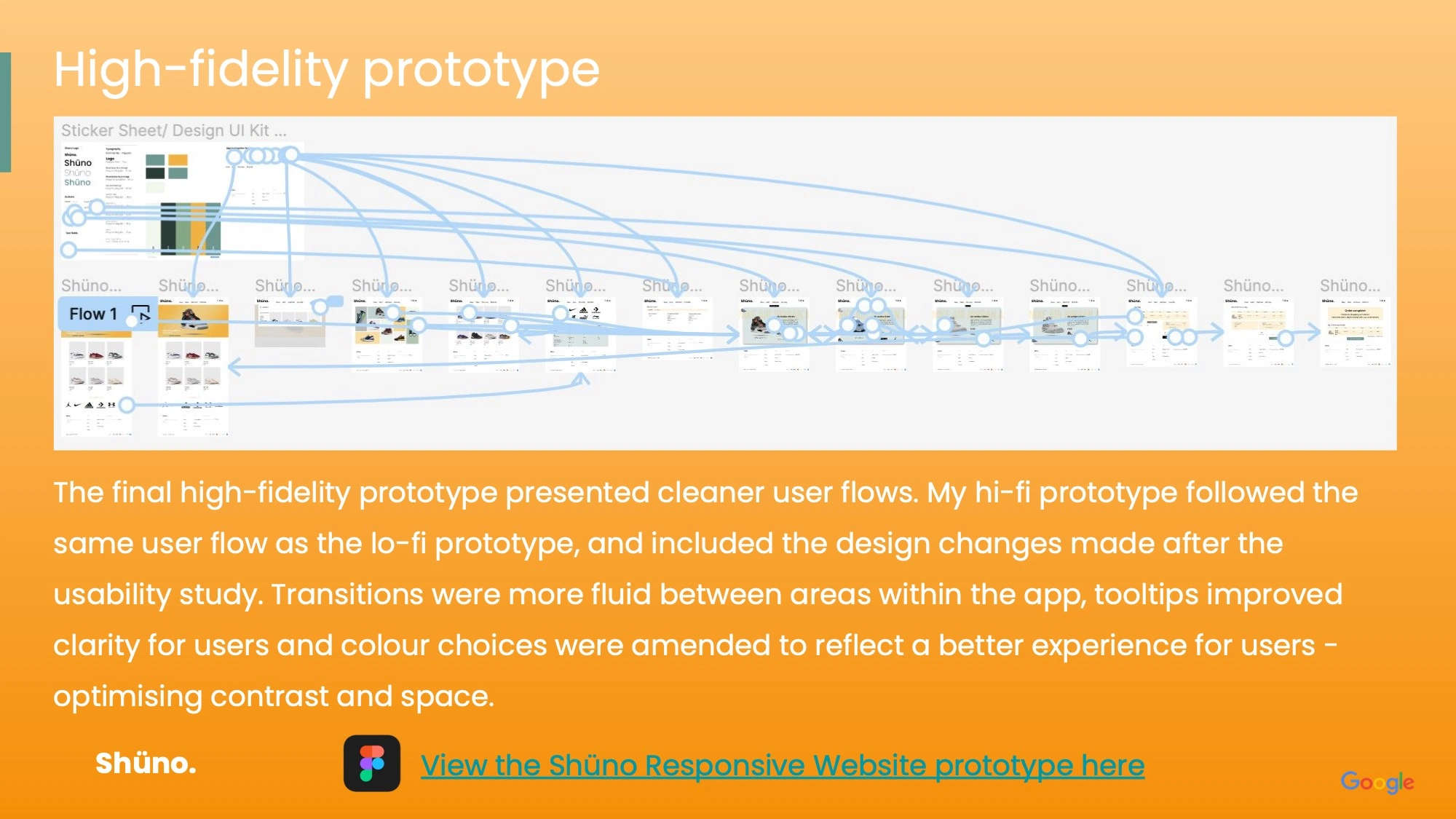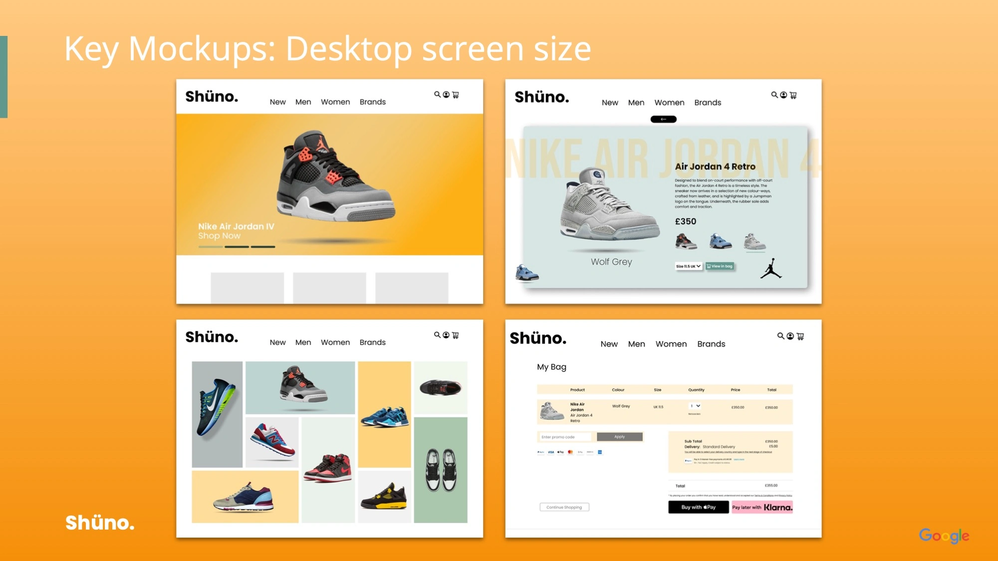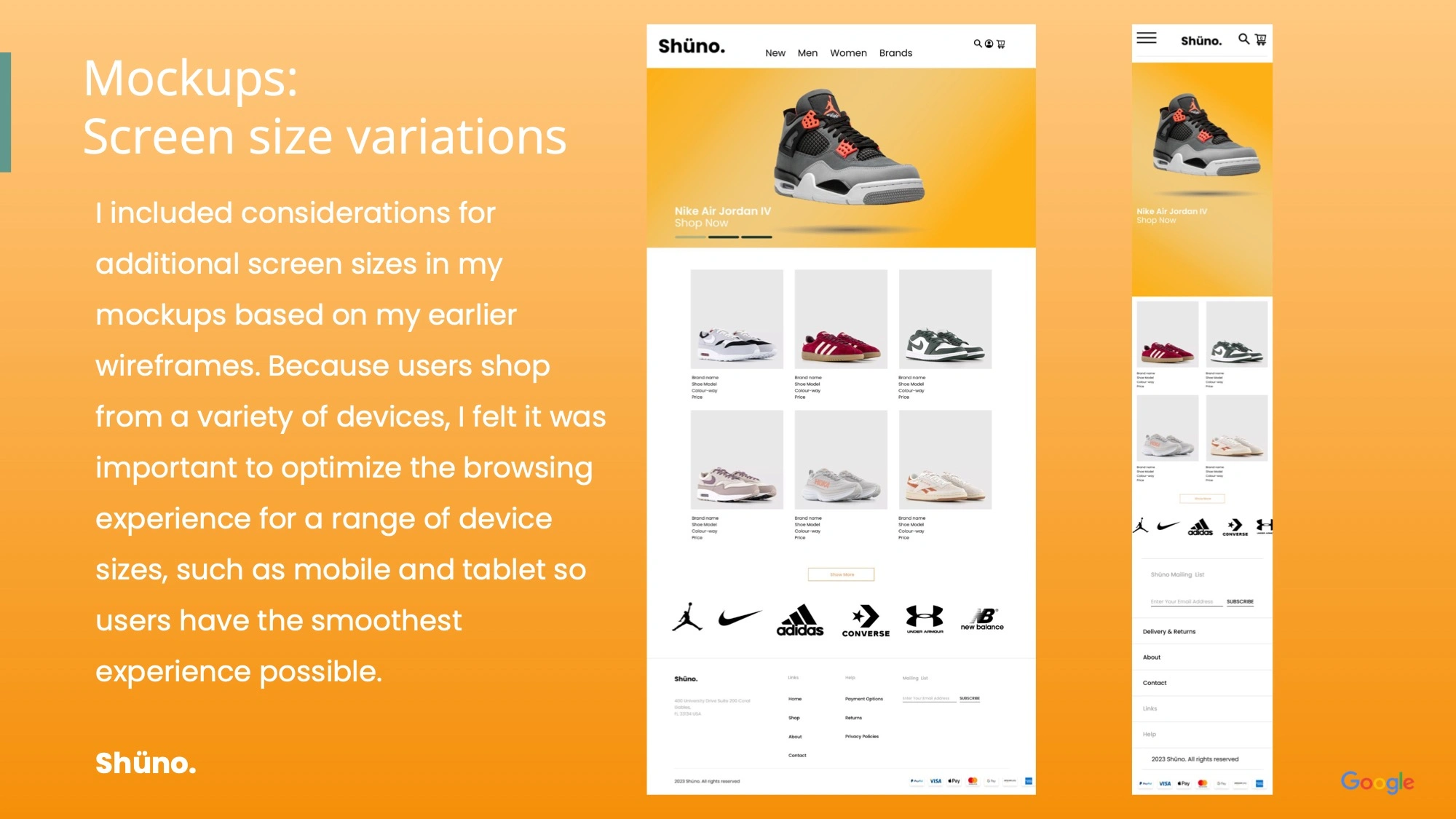 Key outcomes - Responsive, minimalist design with strong brand identity, intuitive e-commerce flows, and a polished interactive prototype for the Shüno brand.