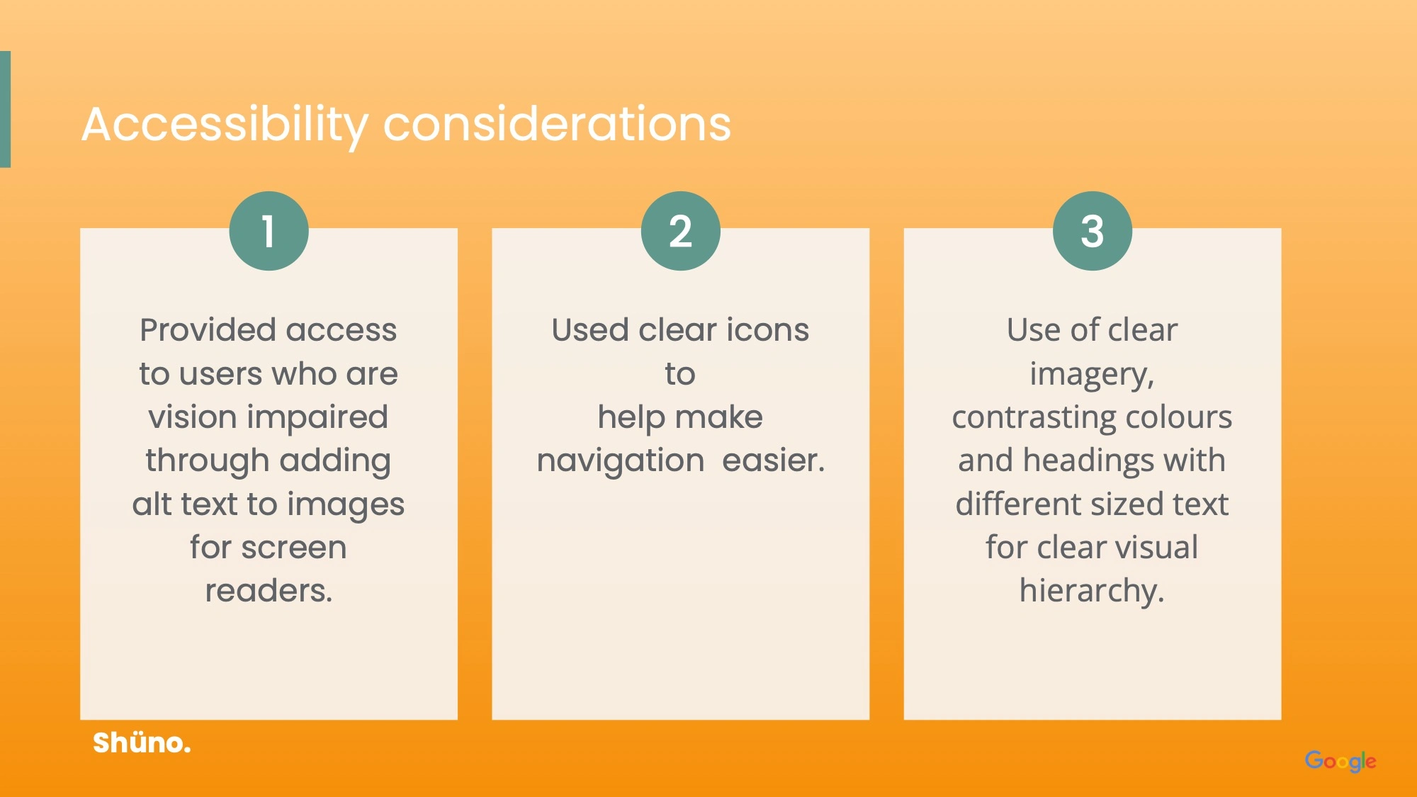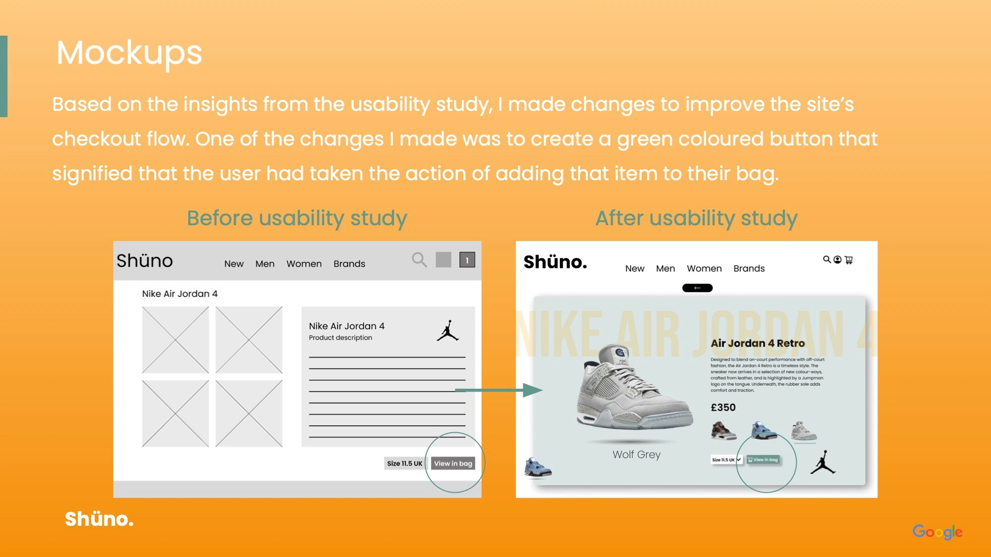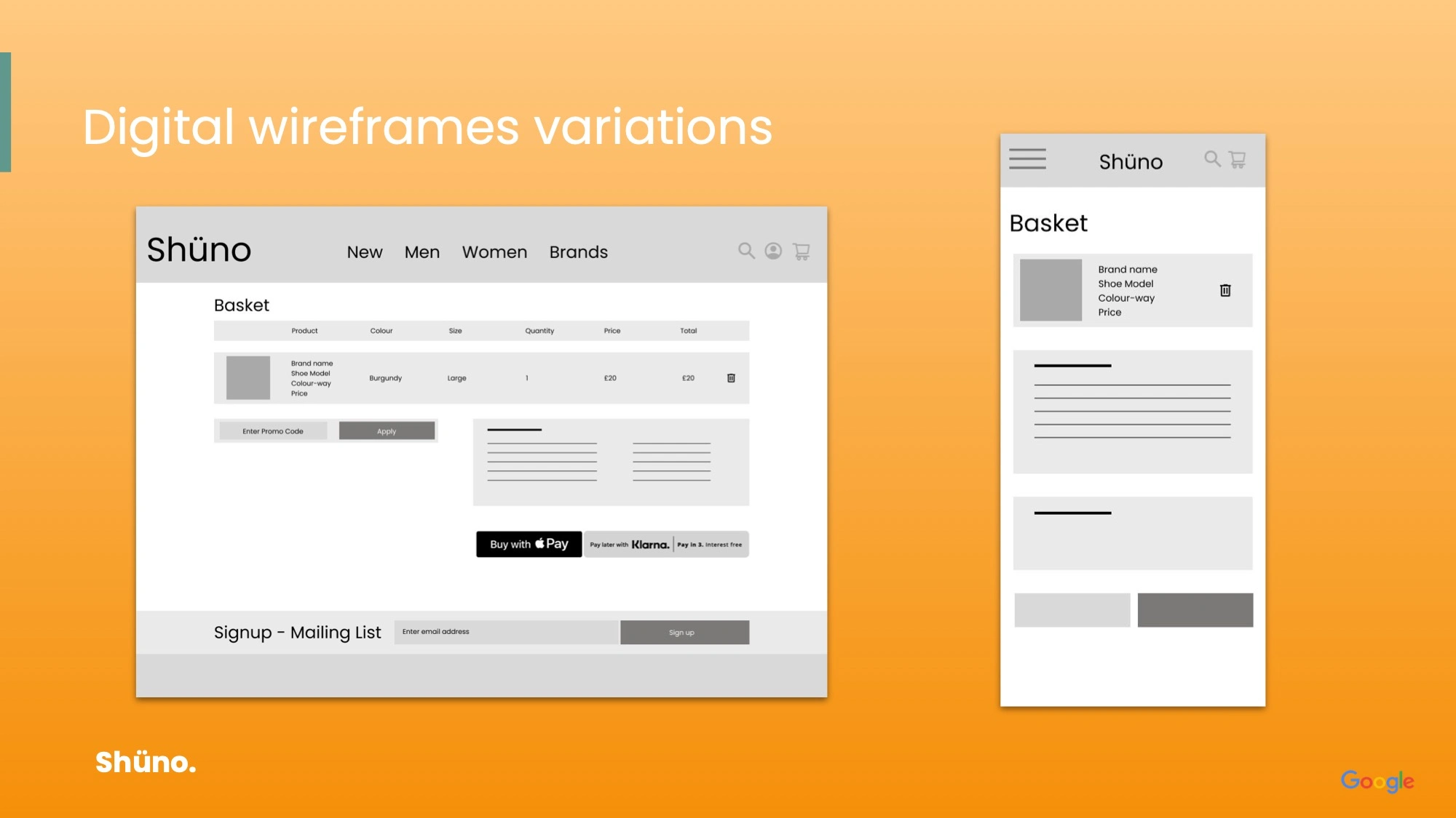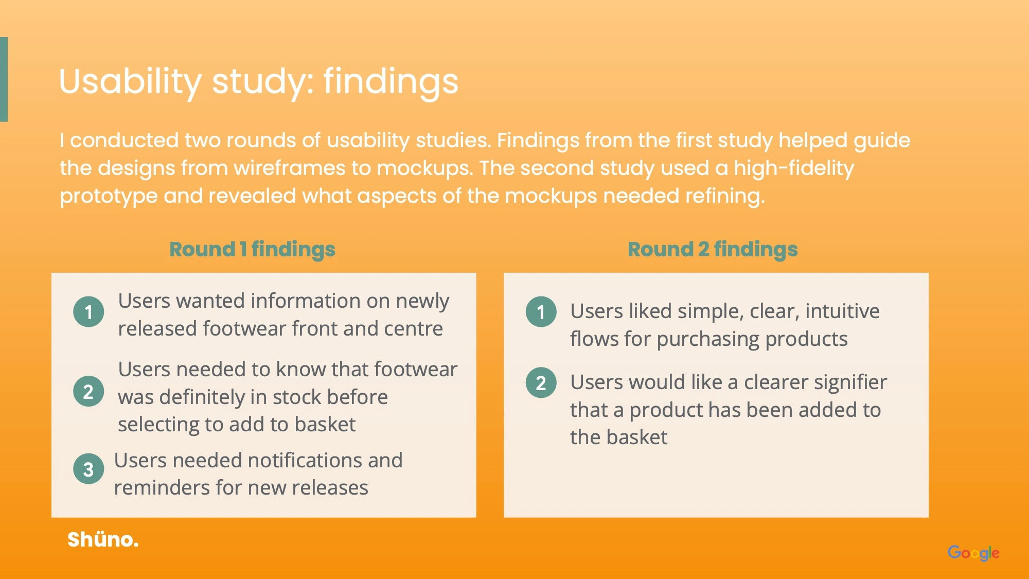 Key outcomes - Responsive, minimalist design with strong brand identity, intuitive e-commerce flows, and a polished interactive prototype for the Shüno brand.