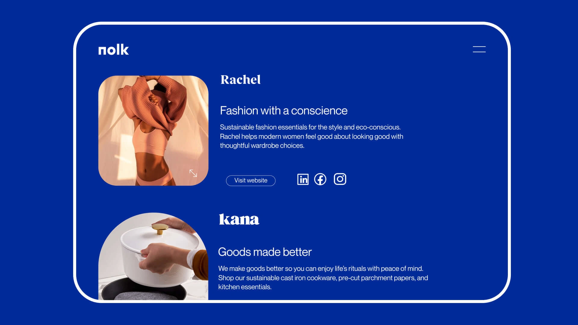 Hi, we're nolk, modern brand stewards for the digital generation. Web design & Art direction : Simon Langlois Web development : Samuel Charpentier