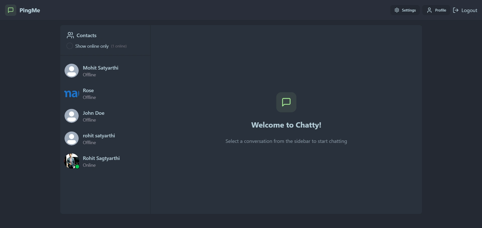 PingMe is a real-time chat app built with the MERN stack, featuring instant messaging, group chats, and a clean, responsive UI for all devices.