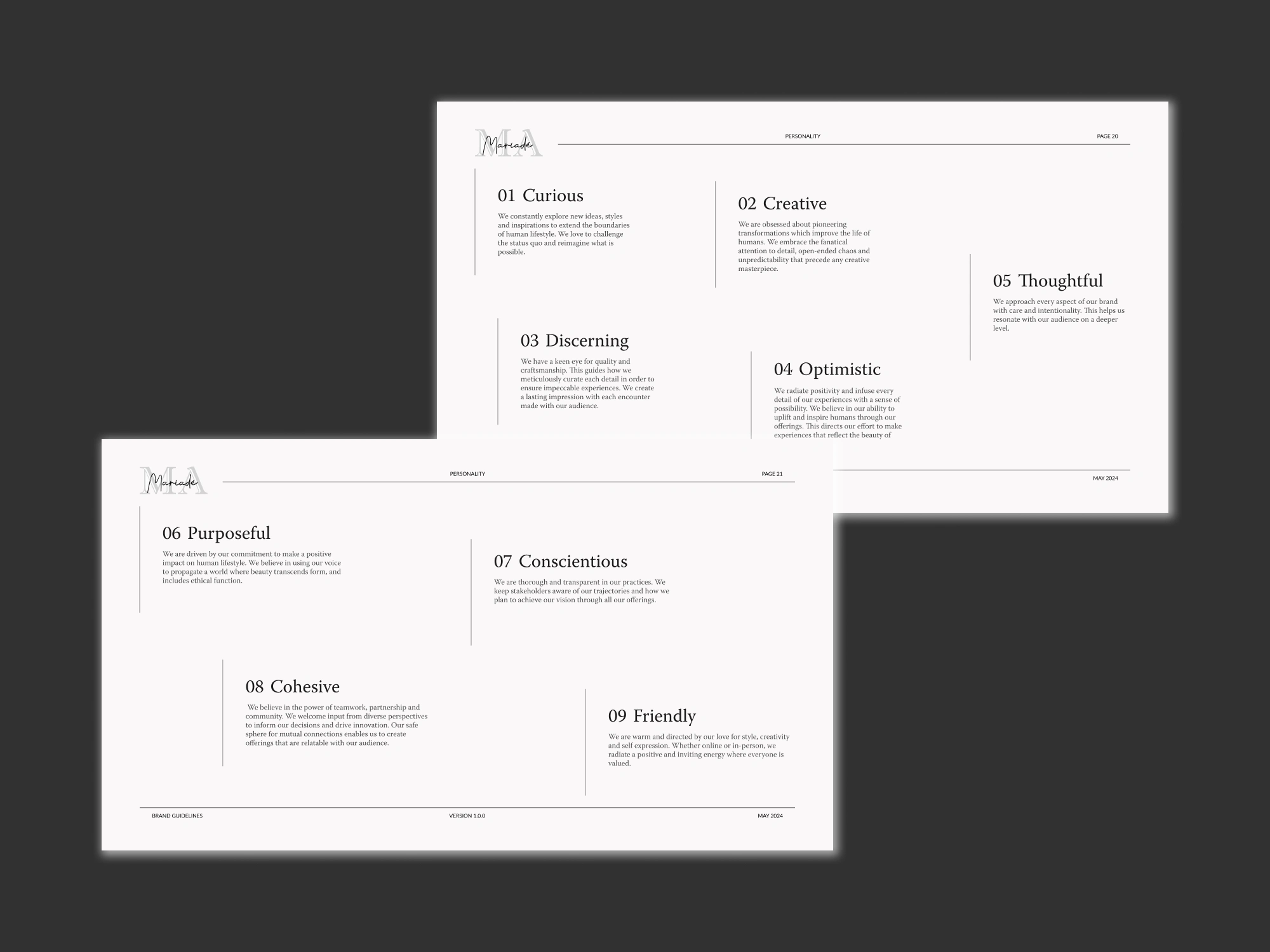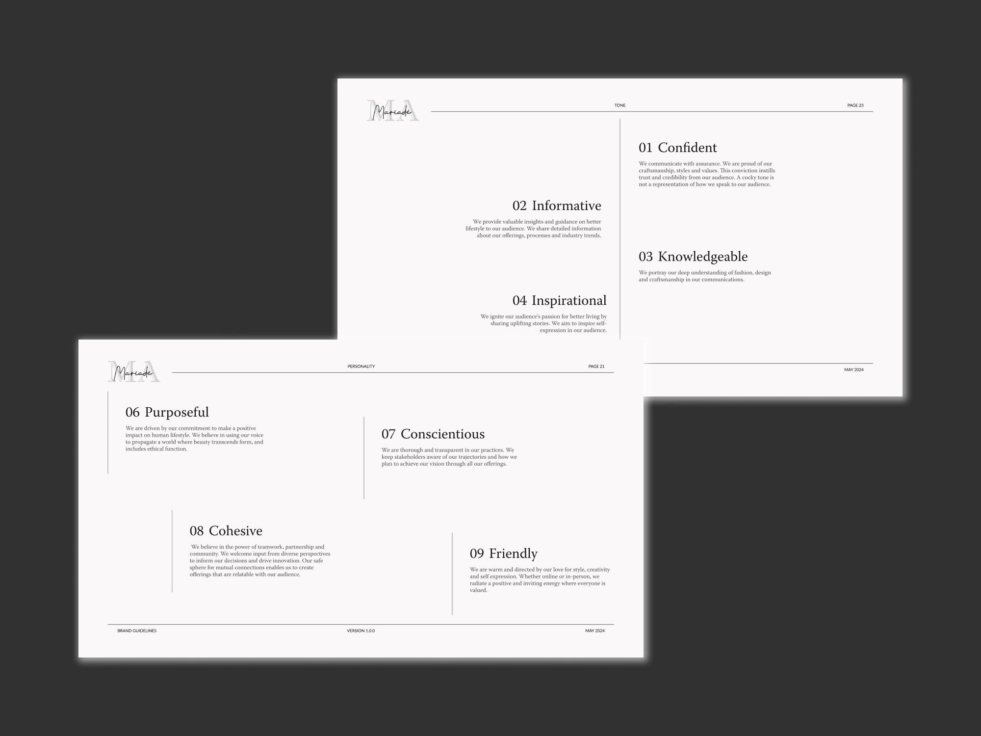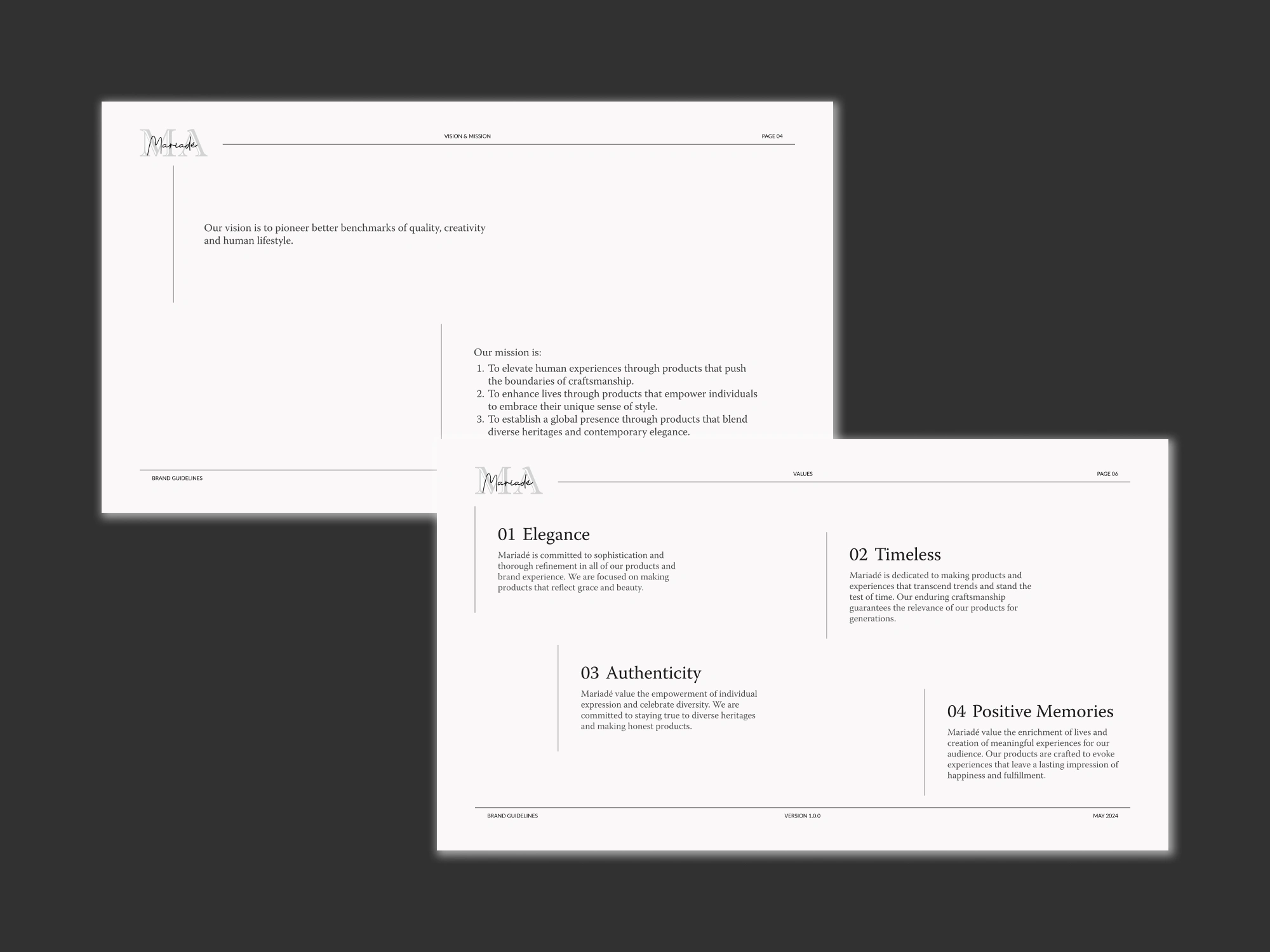 The goal was to engage my full-stack branding service in crafting messaging and design language that are coherent with the new path of the company. All assets created for the full-stack branding would be documented as a Brand Guidelines for the fashion house.