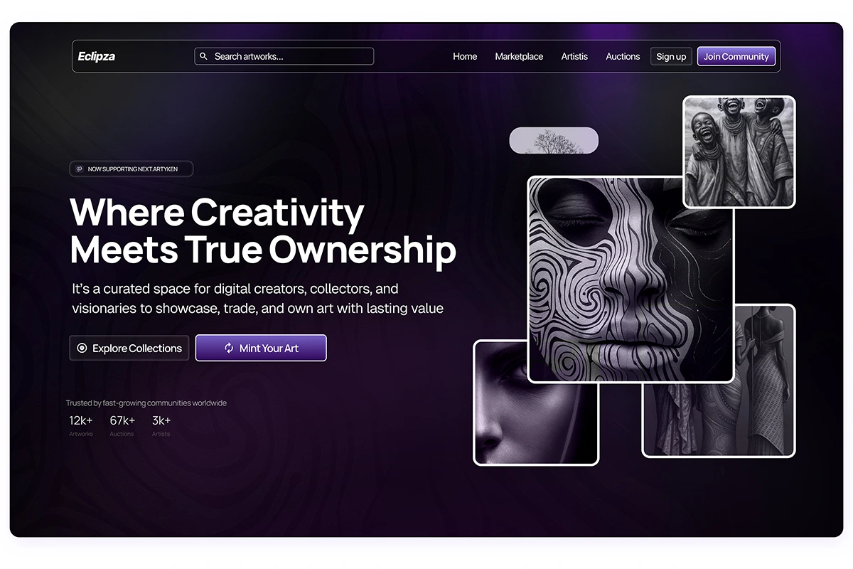 Modern Hero Section, user-friendly interface for Eclipza, a digital portfolio platform, focusing on creative expression for professionals and creators.