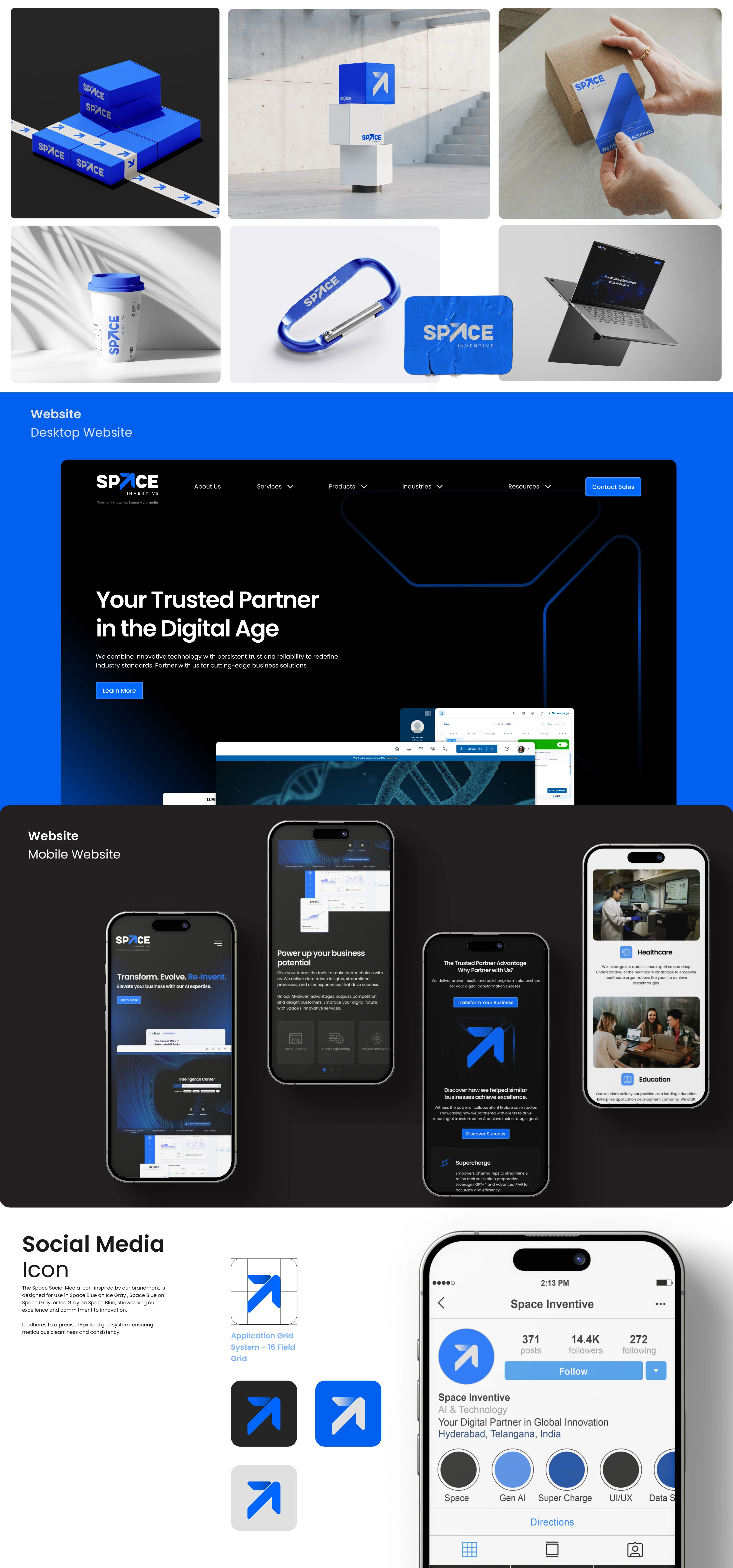 Redesigned Space Inventive's brand identity to highlight innovation, trust, and scalability with a modern logo, refined visuals, and seamless UI/UX design.