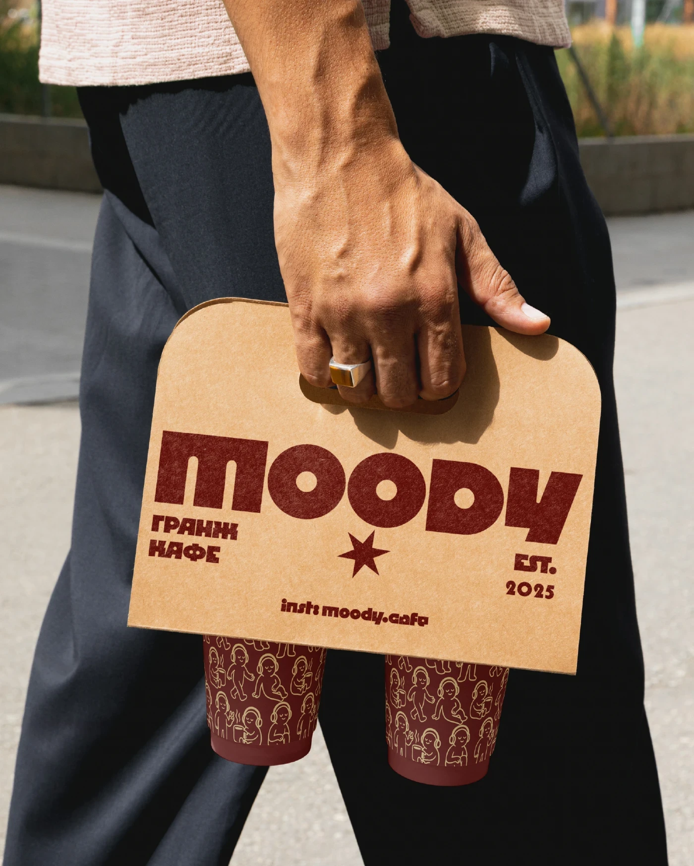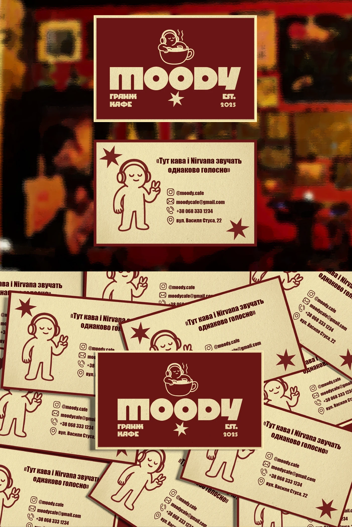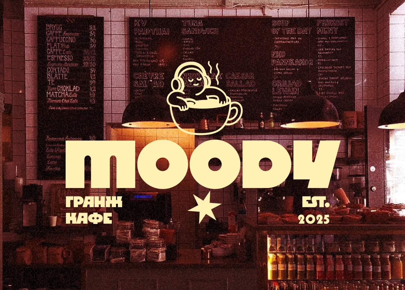 “Moody” is a bold, grunge-inspired brand identity designed for a café that embraces attitude, texture, and urban cool. The identity combines distressed textures, dark-toned colour palette,s and bold typography to capture a raw, gritty ambience—perfect for a café setting that wants to stand out from the polished, minimal crowd.