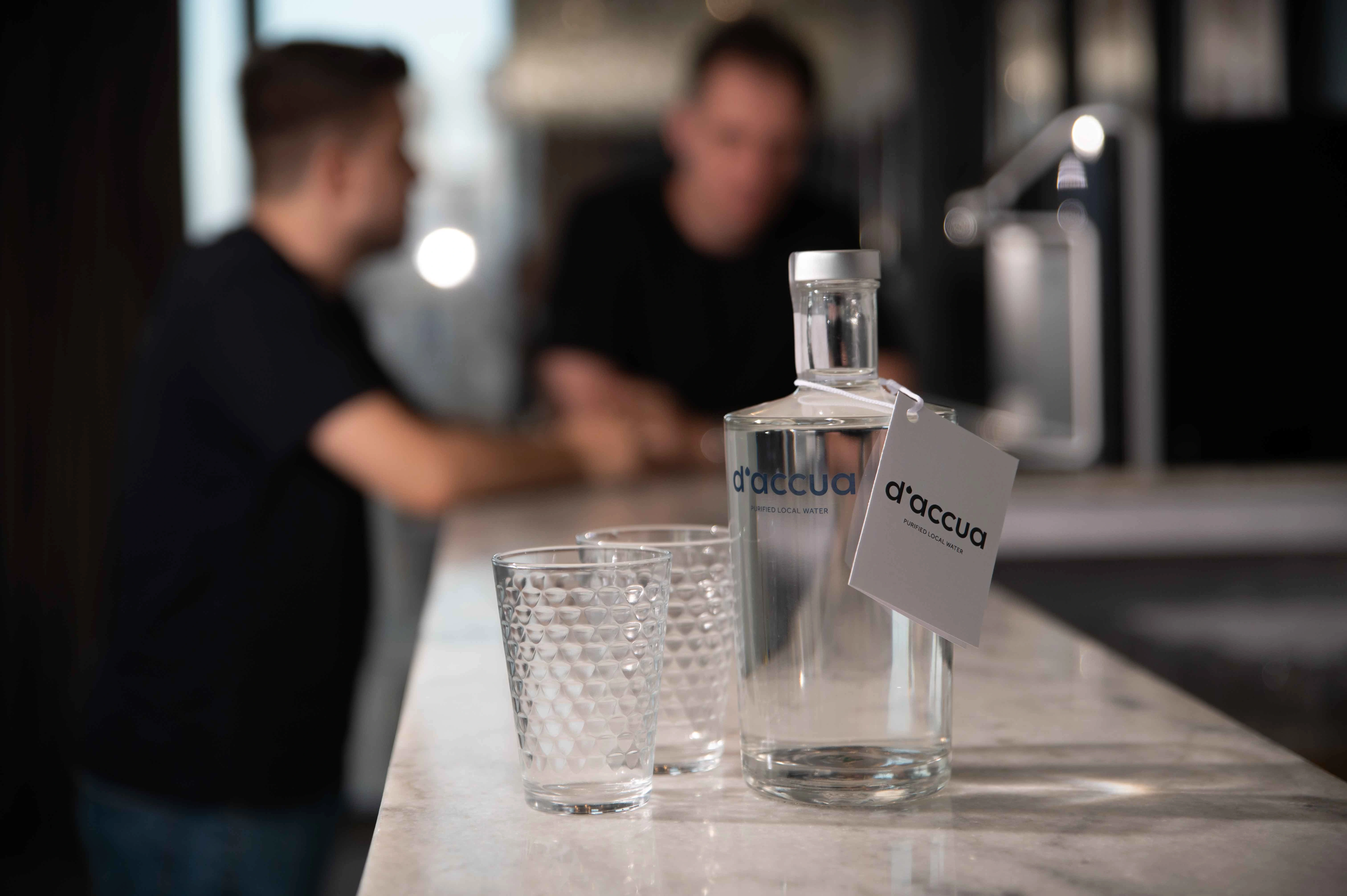 The brand provides tap machines that purify water directly from the main grid, eliminating the need for single-use plastics. What sets D'Accua apart is its presentation of purified water in high-quality customizable glass bottles, featuring various designs and the option to display the establishment's logo.