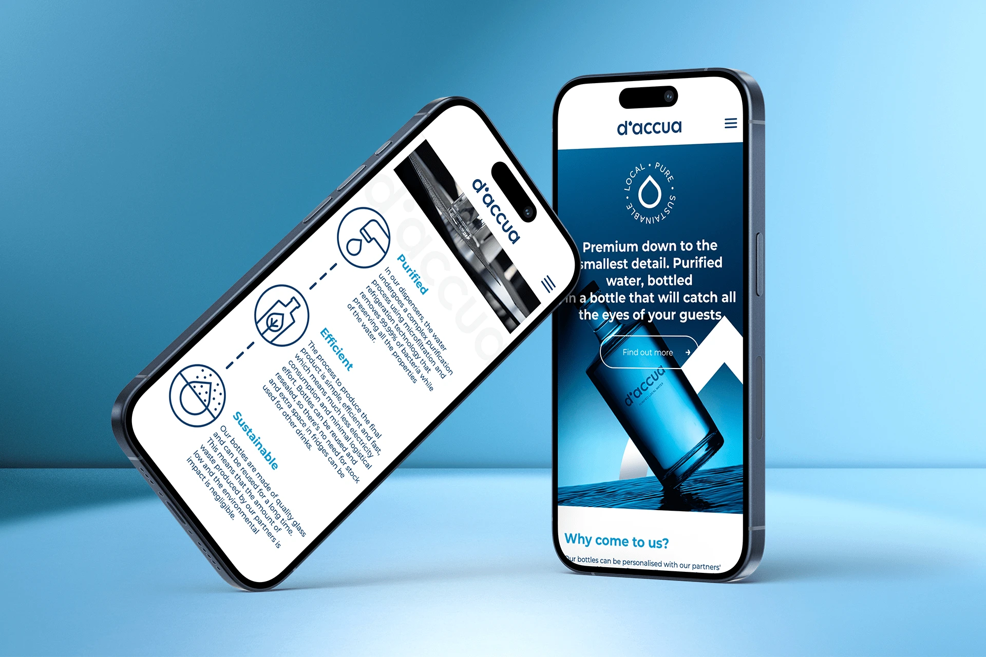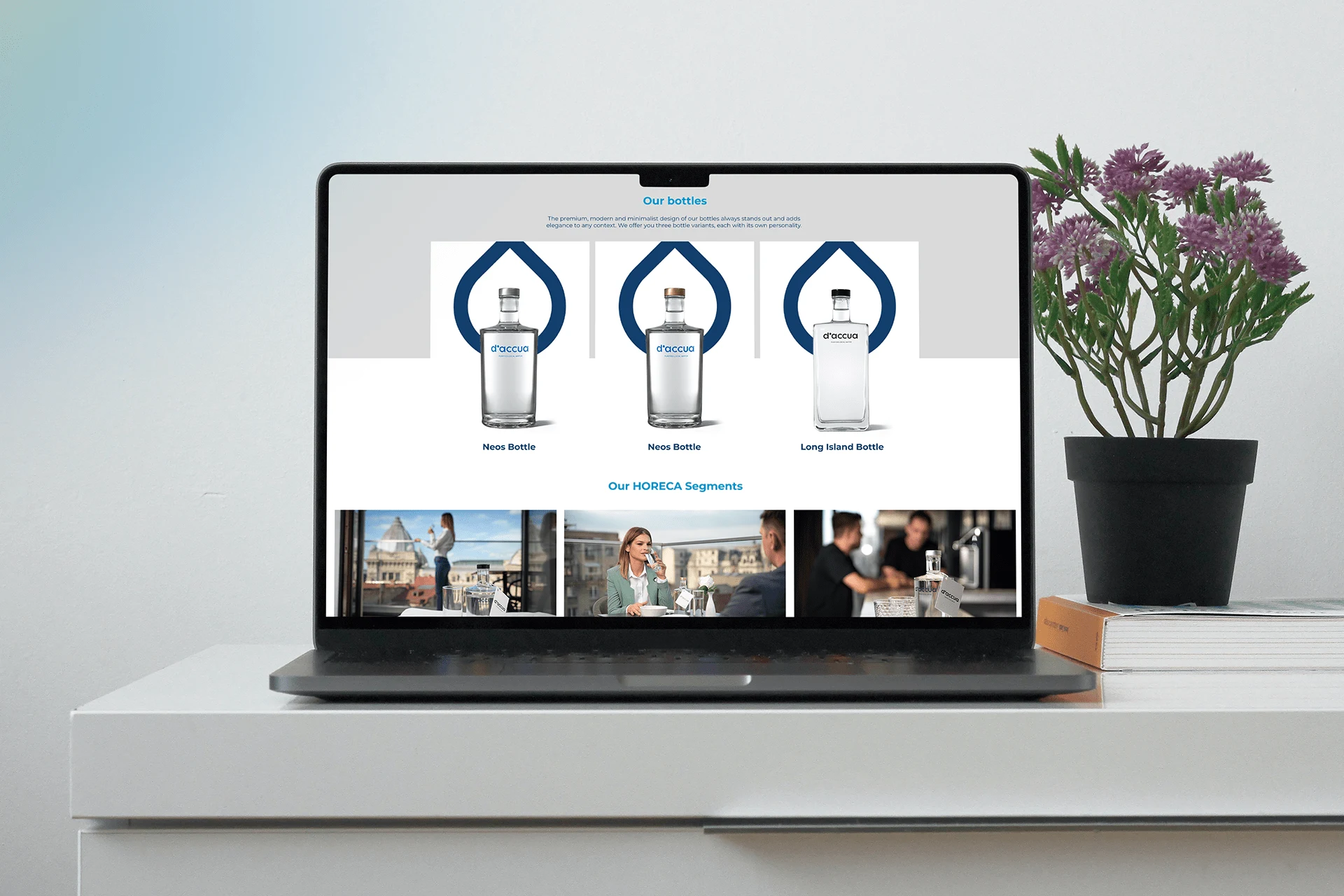 D'Accua.com is a premium water brand designed for the horeca industry, offering an eco-friendly alternative to plastic bottles.