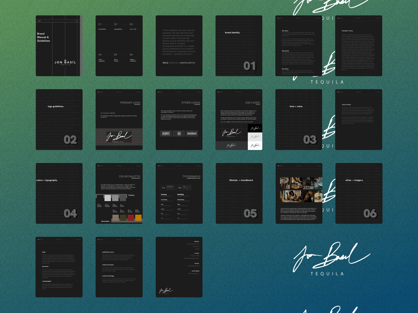 Brand guidelines kit for Jon Basíl Tequila, a diverse Chicago-based and millennial-owned spirit company.
