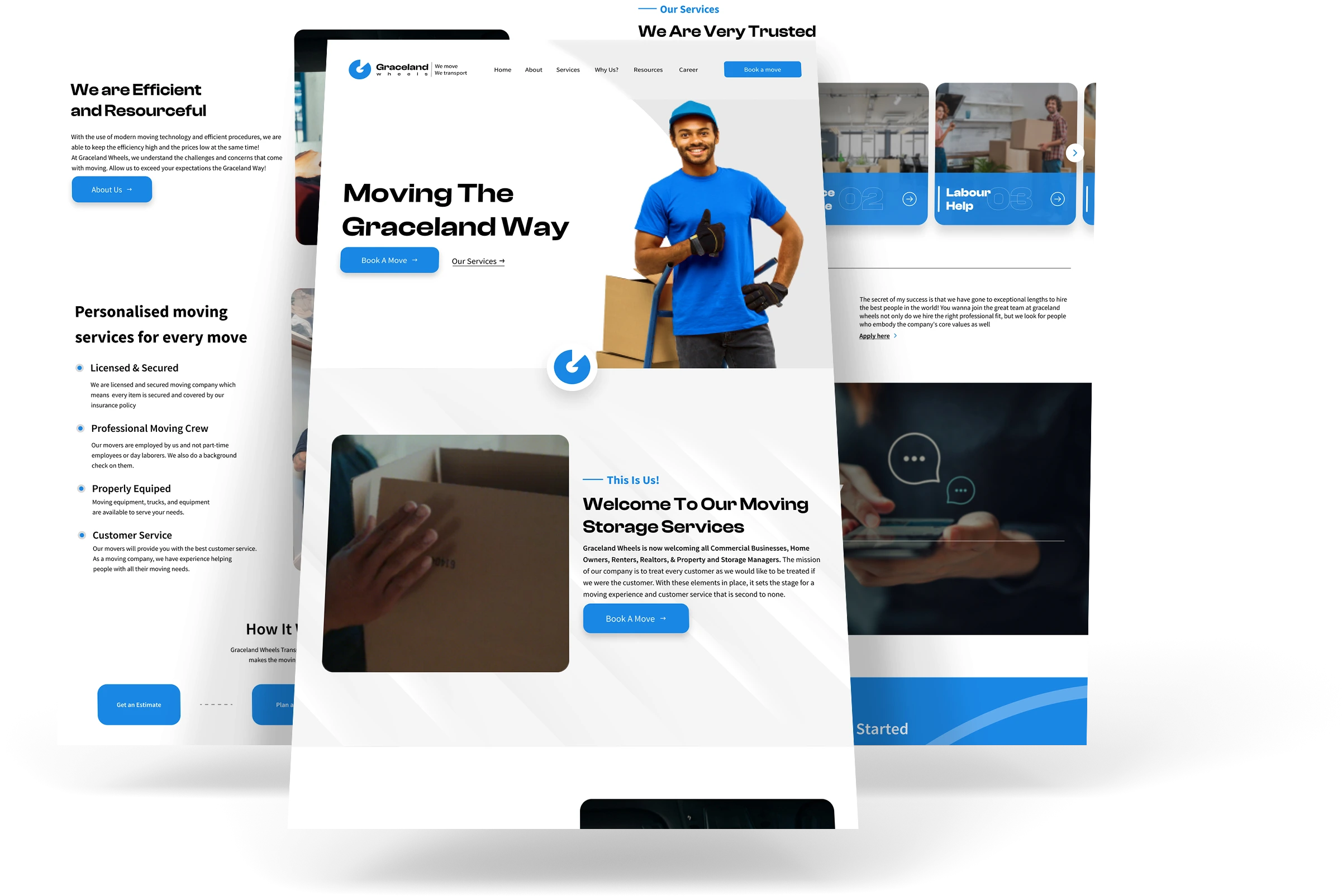 Designed a bold, modern brand identity for Graceland Wheels, a Texas-based logistics company delivering reliable and professional moving services.