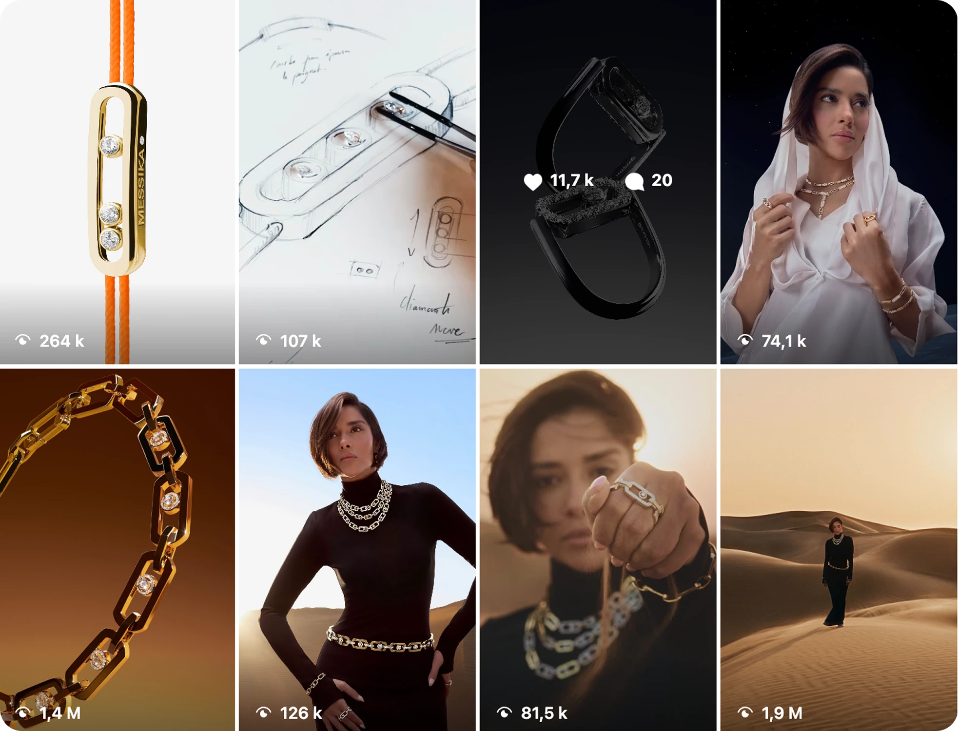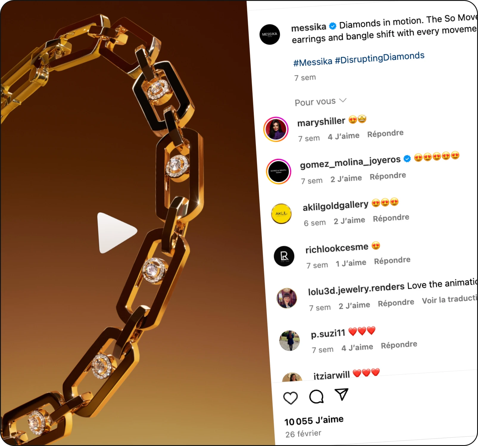 For Ramadan 2025 and the Middle East market, Messika engaged us to elevate the visual and emotional impact of its iconic Move collection. Working alongside the in-house team, we helped define the campaign’s art direction, produced premium 3D content, and co-created an immersive sound identity to amplify storytelling across channels.