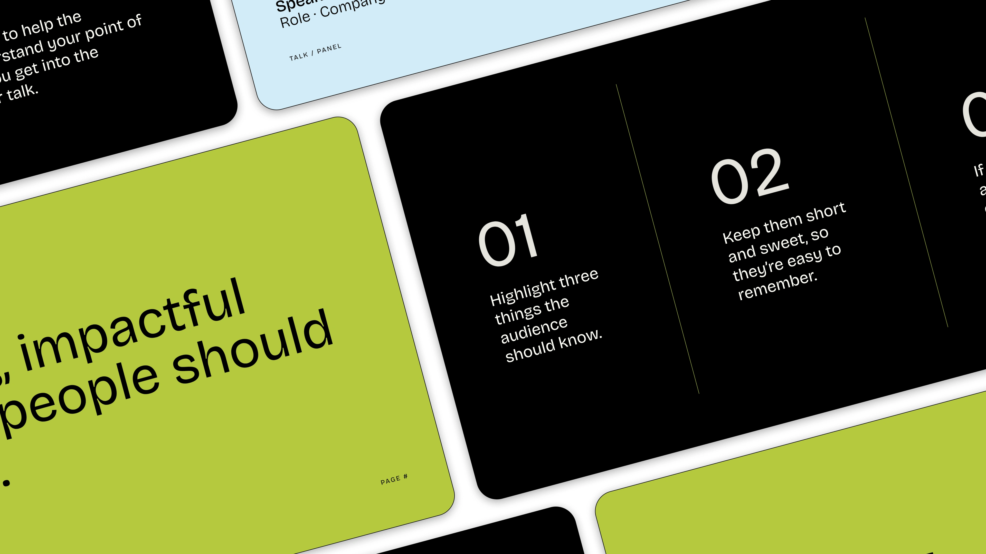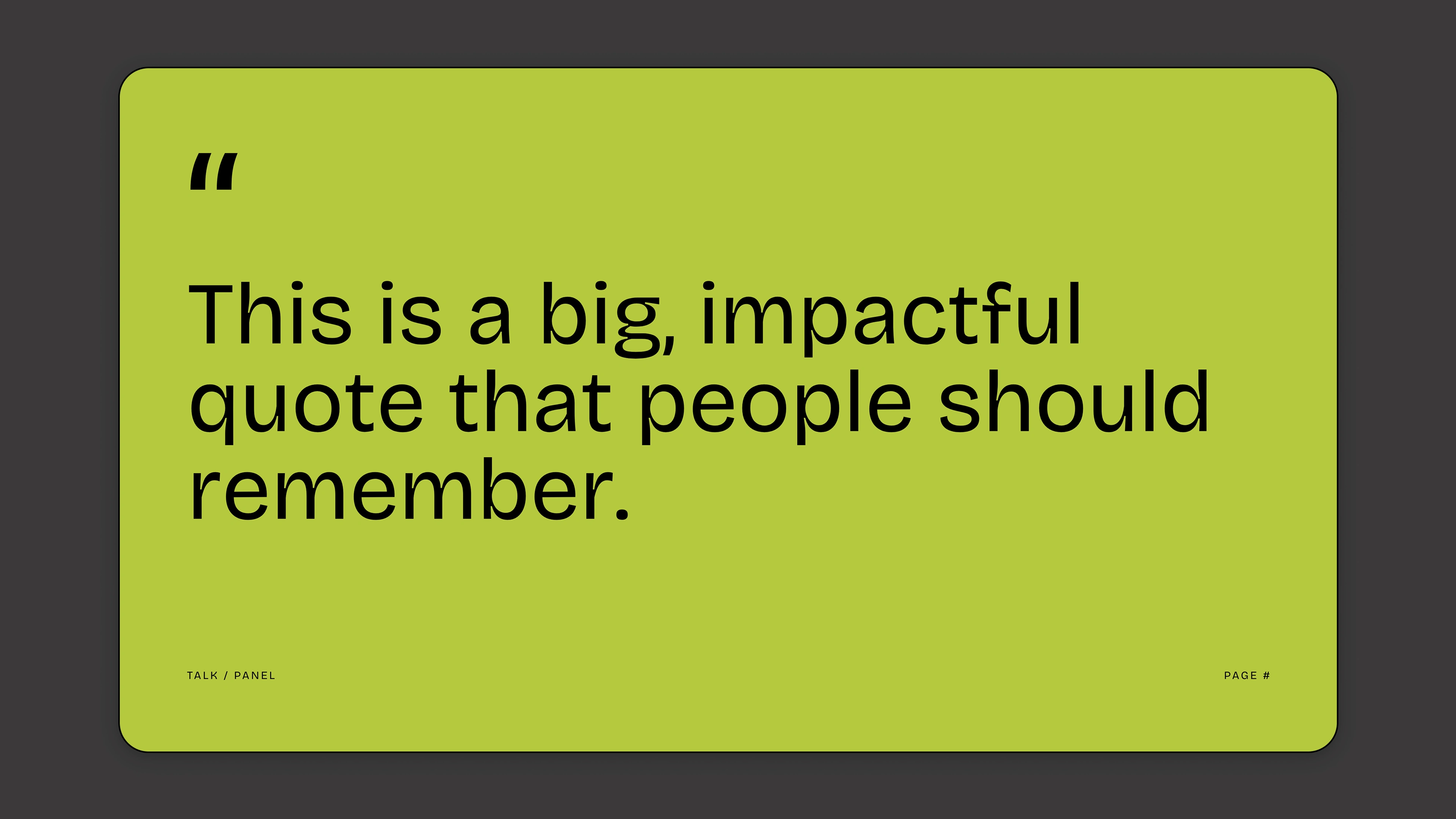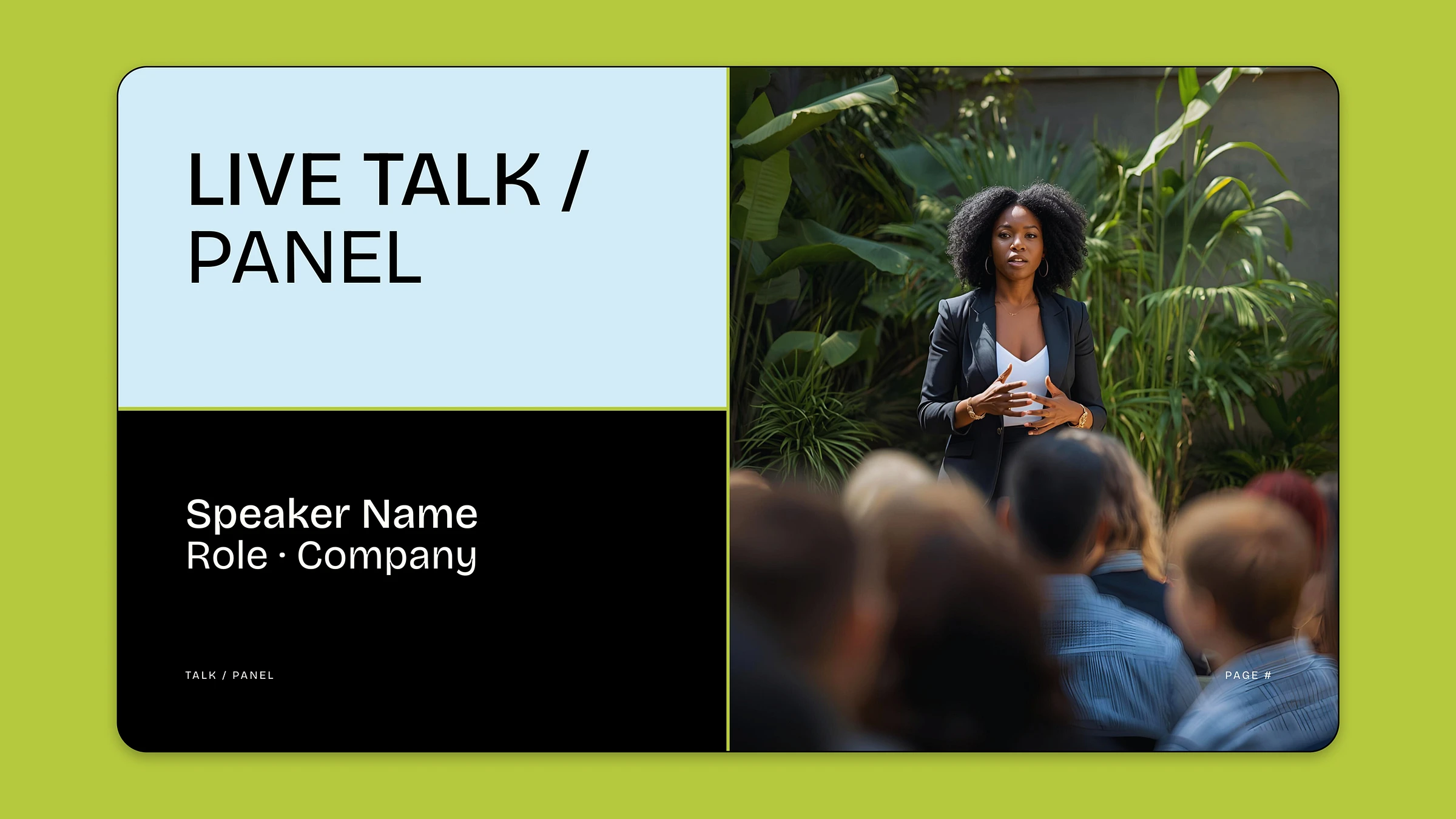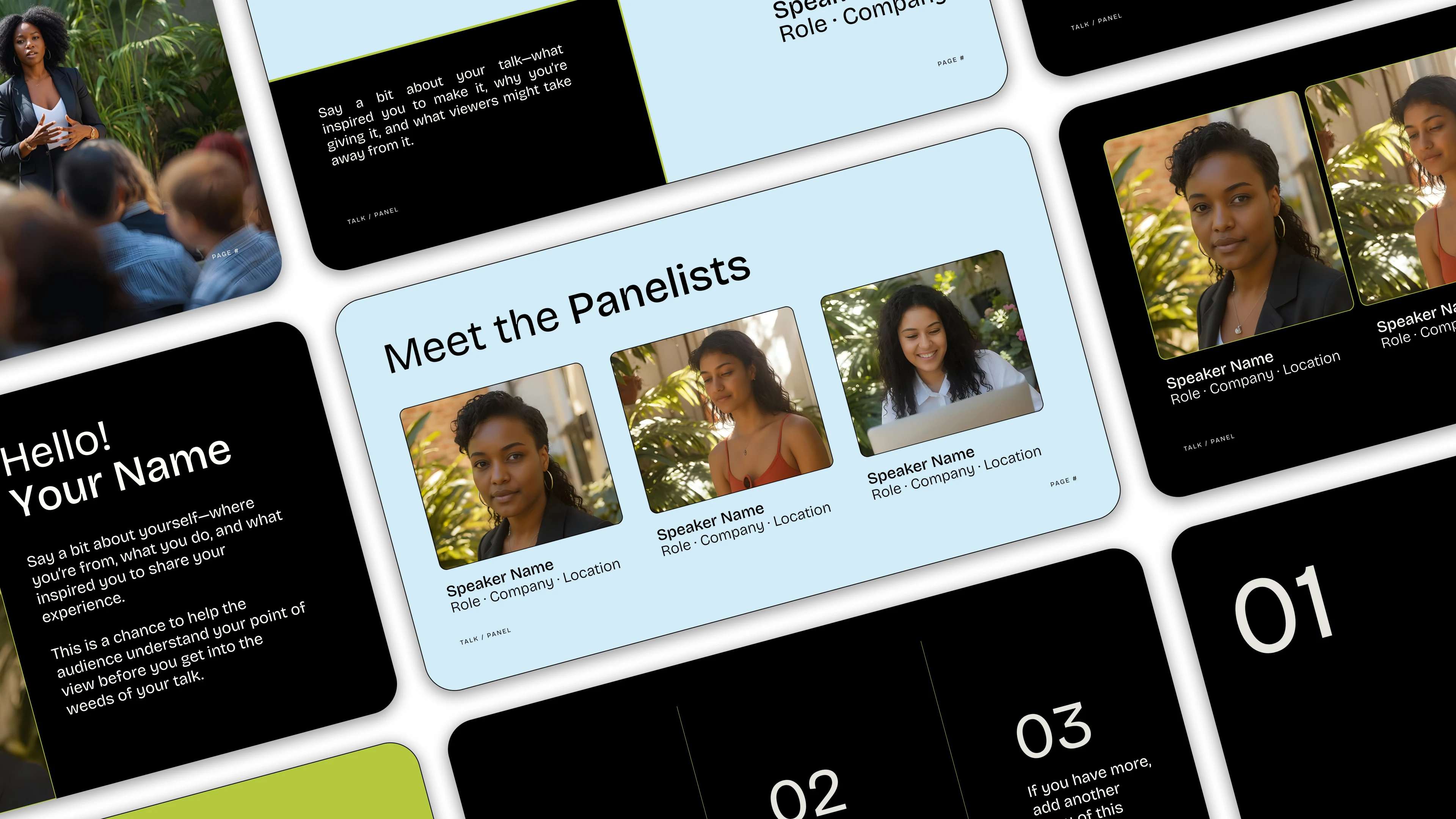 An impactful and engaging presentation design crafted specifically for live talks, panel discussions, and compelling conference-style storytelling.