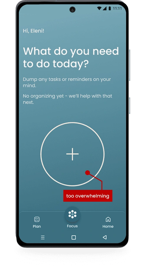 Users can freely unload tasks without overthinking, then receive gentle guidance to organize and prioritize what matters most. This makes it easier to choose one task and begin.