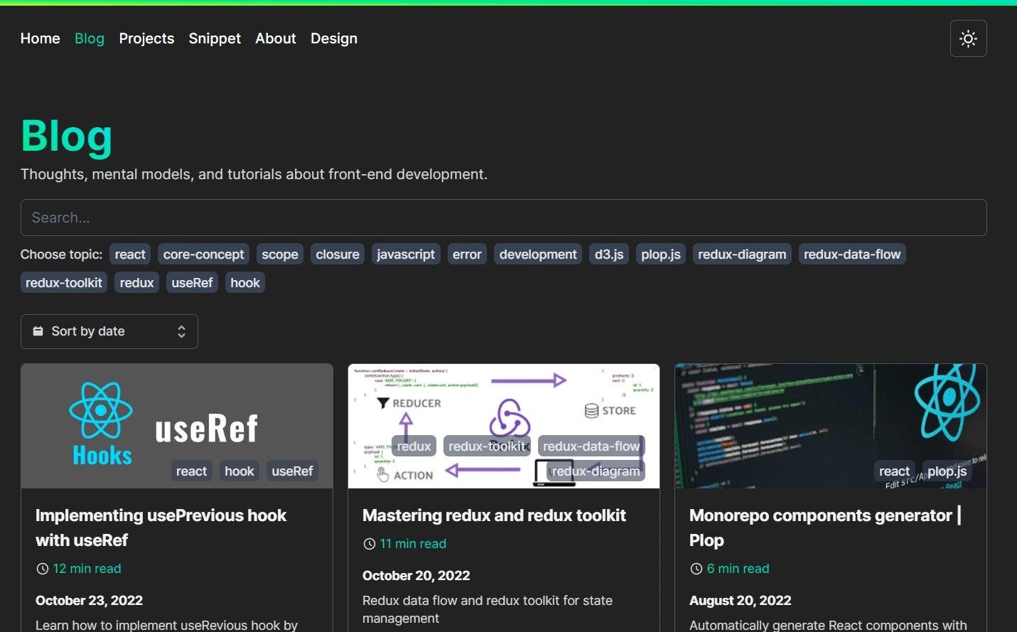 Personal tech blog to represent my development story, perspective regarding the frontend development.