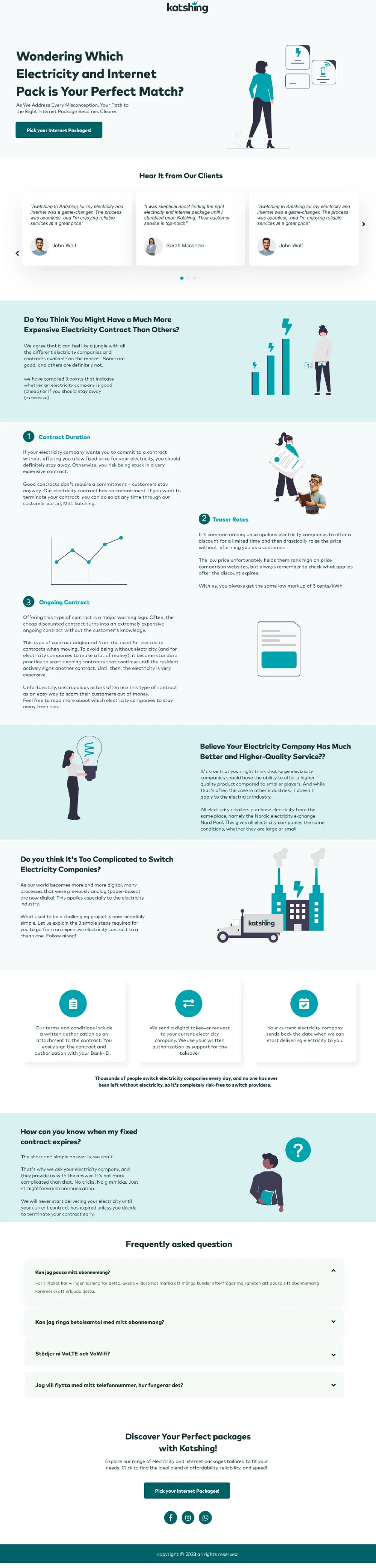Challenge: Katshing, a mobile subscription service, sought a fresh landing page design to promote their unique offering: earning points on consumed electricity, convertible into internet usage.