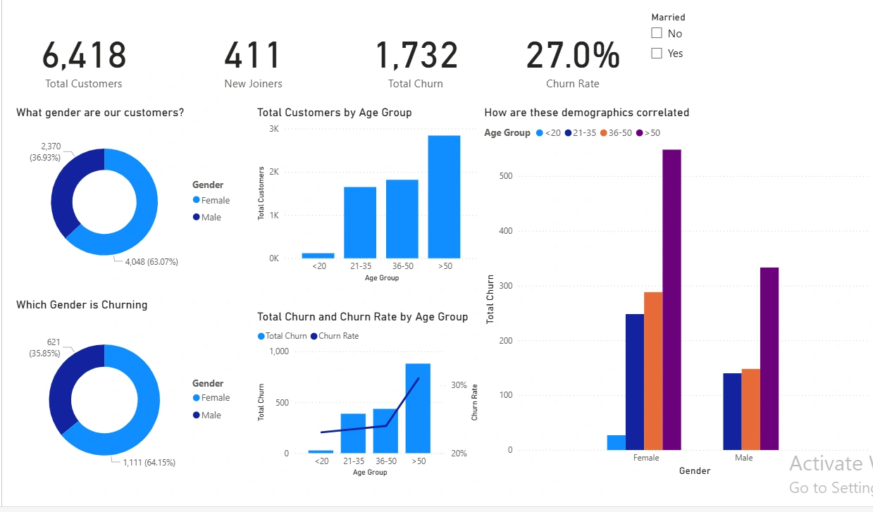 Conducted a churn analysis to identify retention strategies for the telecom company.