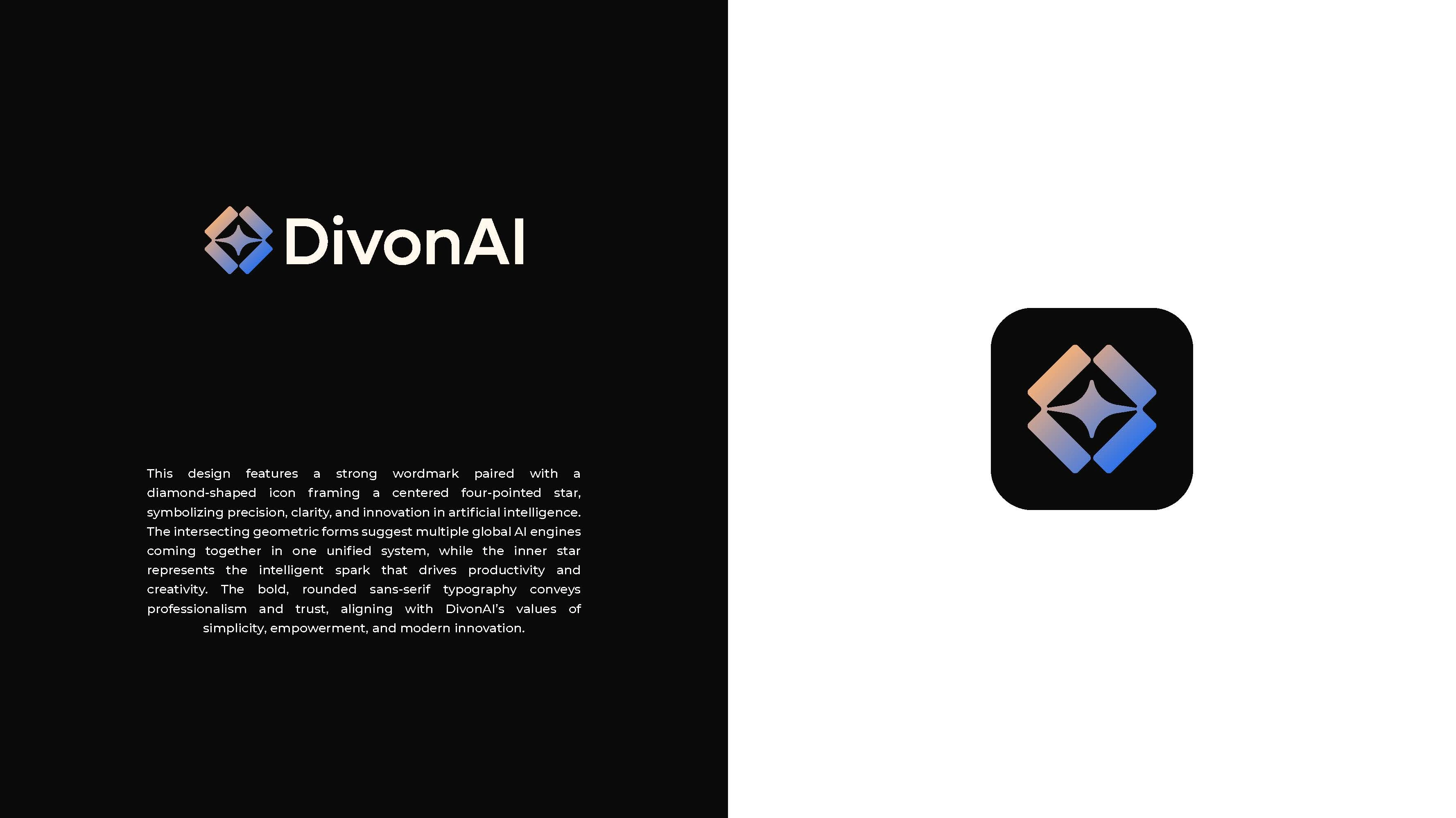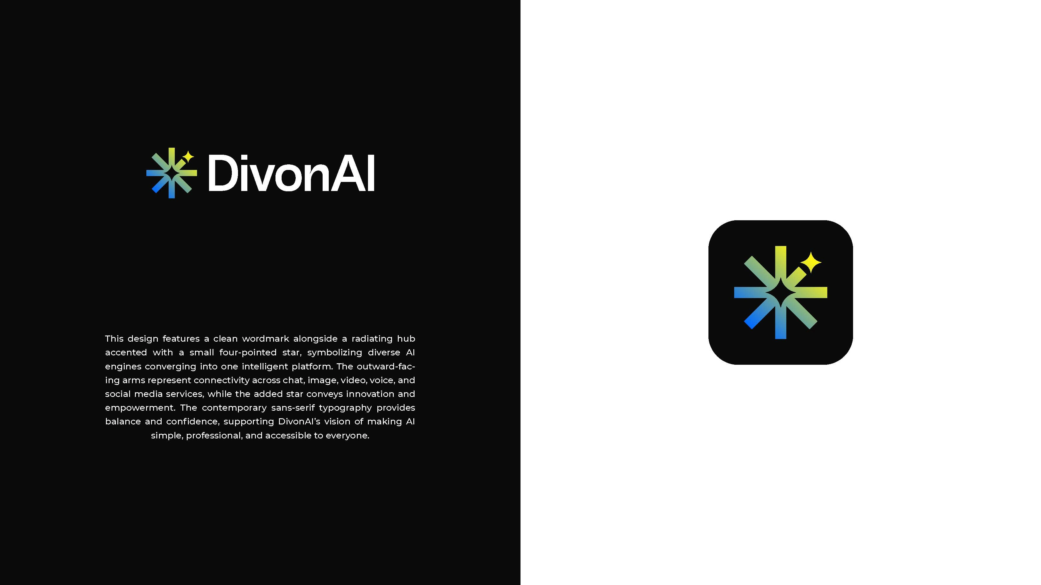 The three DivonAI logo concepts collectively present a modern and cohesive visual identity centered around innovation, connectivity, and trust in artificial intelligence. Each concept combines a clean, professional wordmark with a distinctive geometric icon featuring a four-pointed star, symbolizing the core intelligence driving the platform. While Concept #1 emphasizes security and structure through a shield-like form, Concept #2 highlights connectivity and integration with a radiating hub design, and Concept #3 focuses on precision and unity באמצעות a diamond-shaped framework. Together, they reflect DivonAI’s mission to deliver simple, powerful, and accessible AI solutions through a visually balanced and forward-thinking design language.