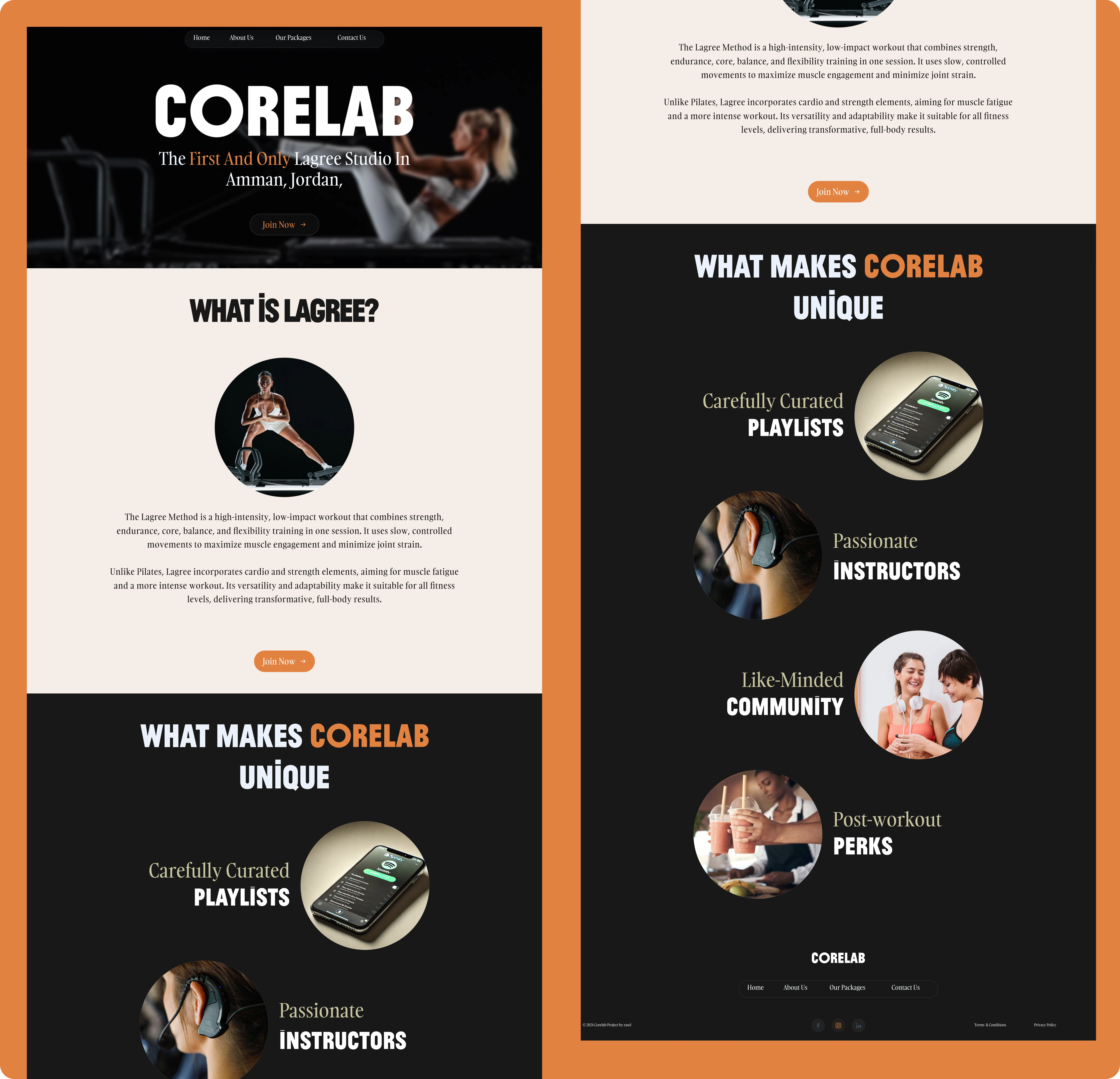 I designed a sleek and powerful landing page for a boutique fitness studio in Jordan specializing in Lagree workouts. The site sets a bold tone with a high-contrast hero, positioning the brand as exclusive and premium.