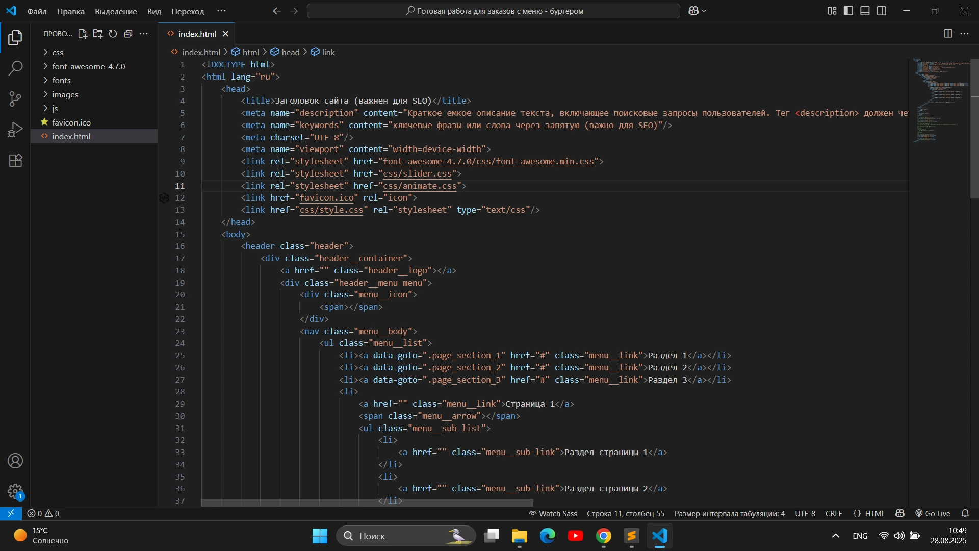 The work is done on HTML, CSS, JS, Flexbox, Grid. The FA-icons library is connected (Fontavesome icons are added). Implemented the parallax effect with images. Made a burger menu and adaptive for mobile devices up to 320px. Wanted to make animations at the moments of page scrolling, but considered them inappropriate on this site, parallax does its job anyway.