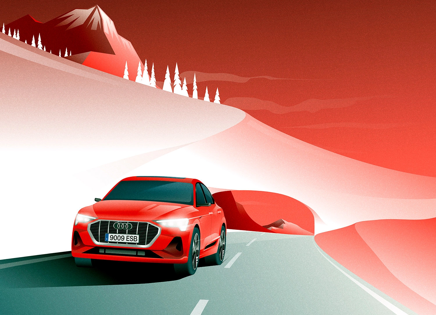 Audi E-tron illustrations for winter 2020 Baqueira Outdoor Campaign.