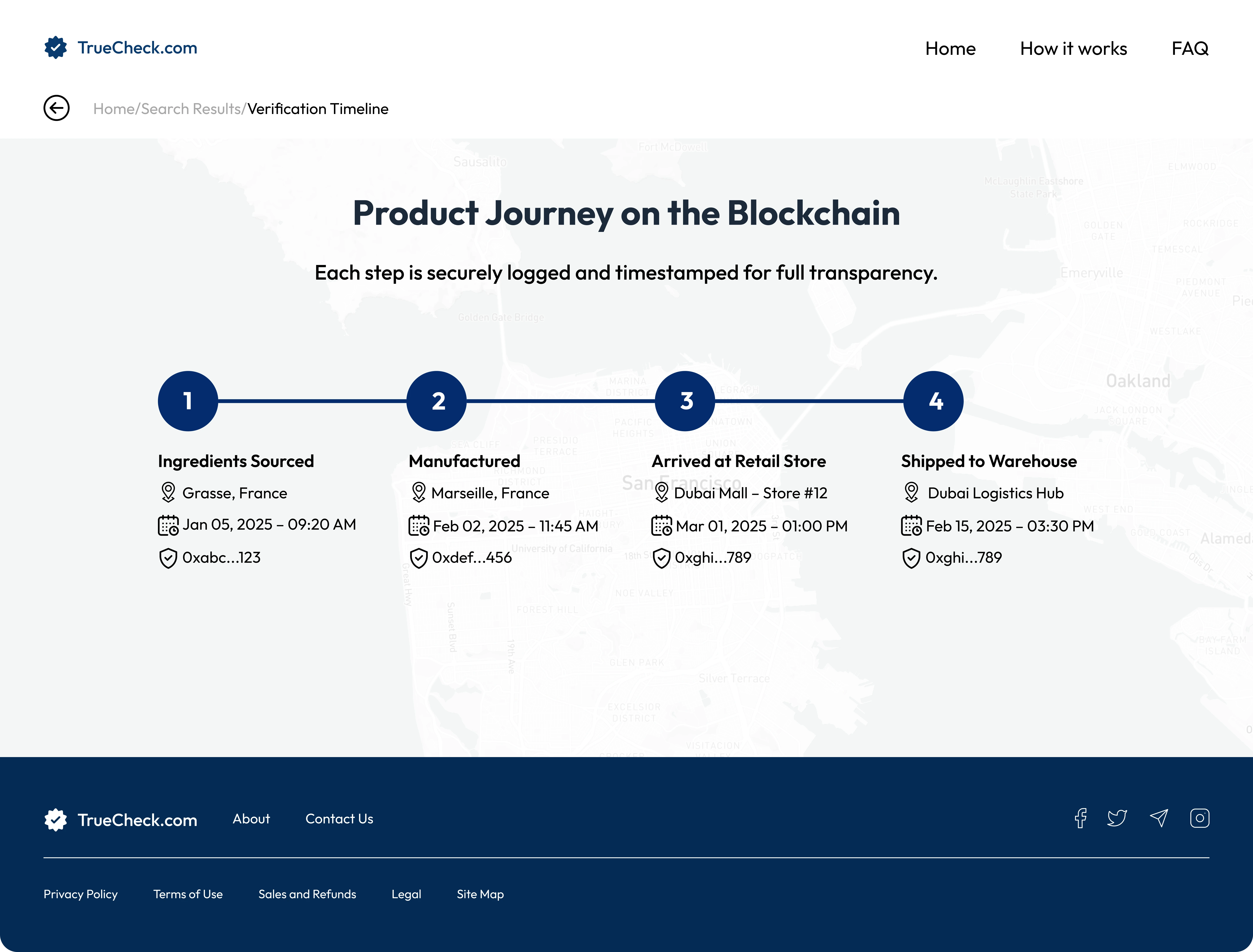 A website that lets you track the product origin using blockchain technology.
