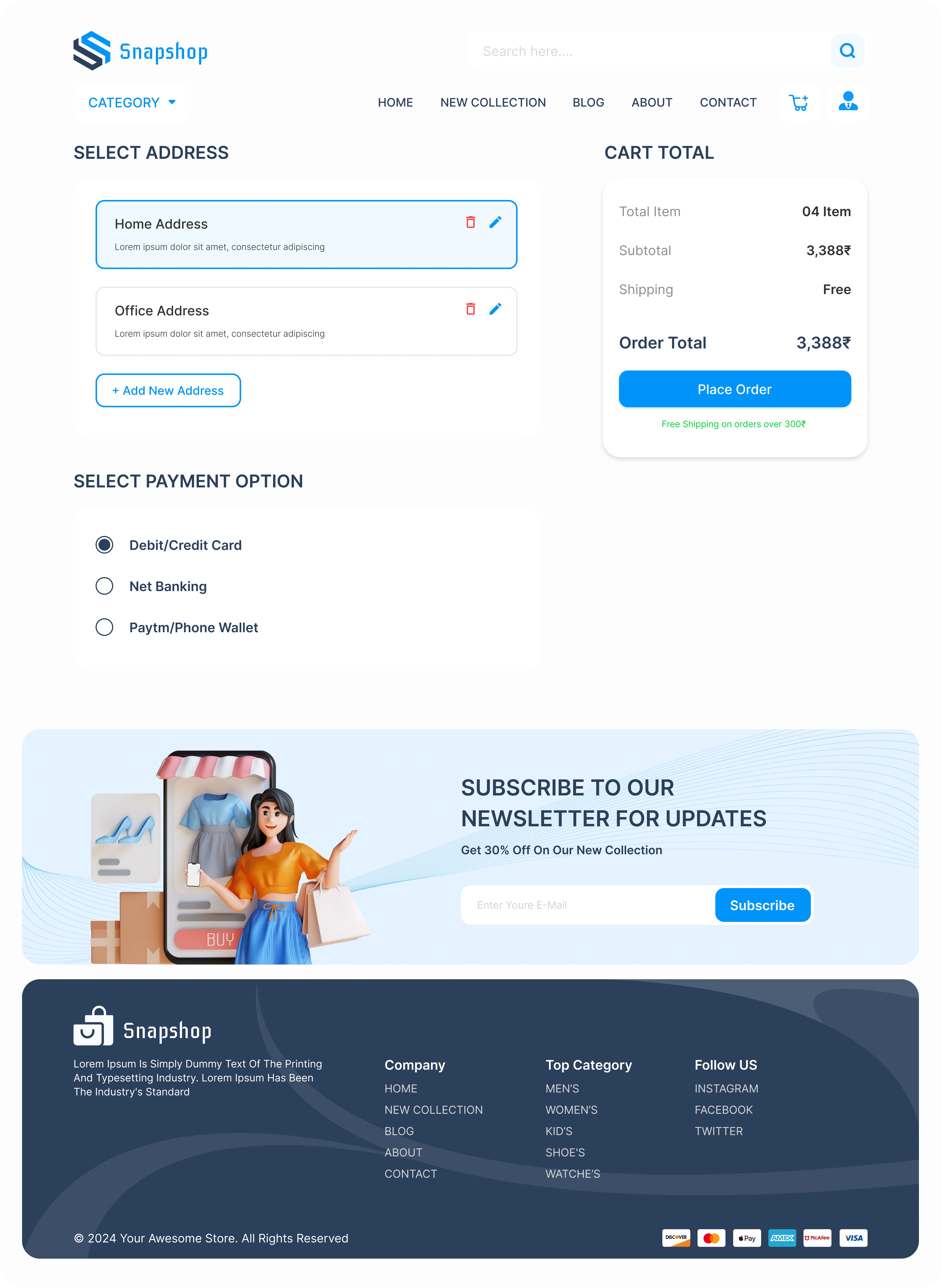 Designed intuitive and responsive e-commerce UI/UX for SnapShop Web & Mobile, optimizing user onboarding, browsing, and checkout experience.