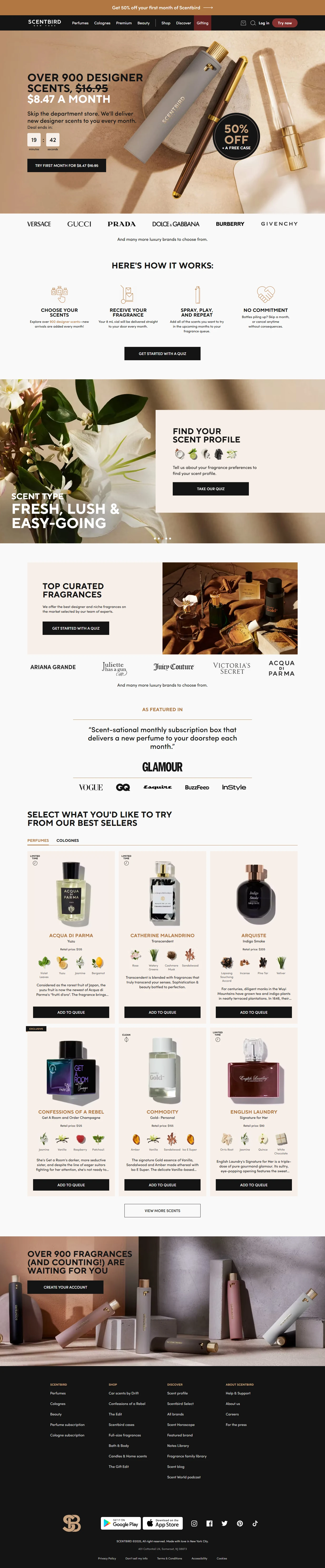 Redesigned and optimized the Shopify store for Scentbird, a fragrance subscription brand with a high-conversion eCommerce funnel.