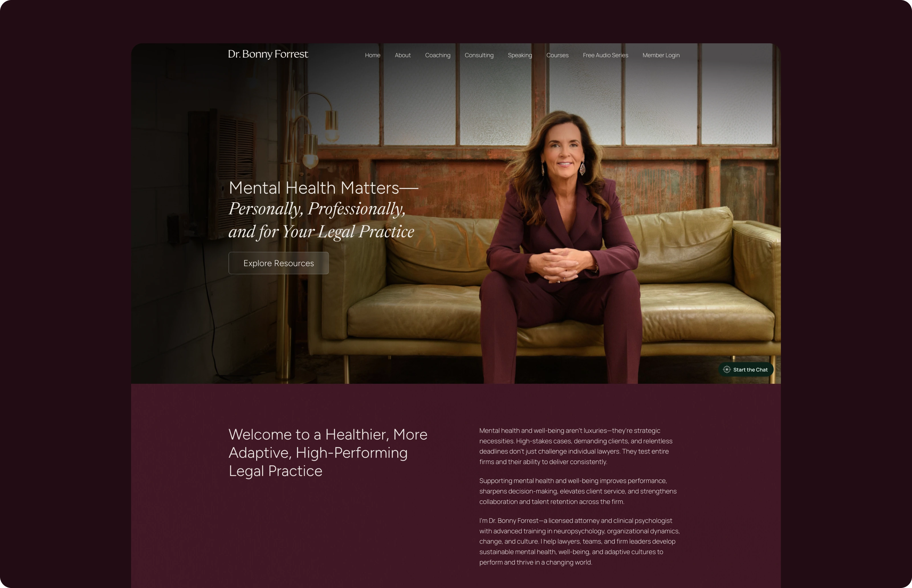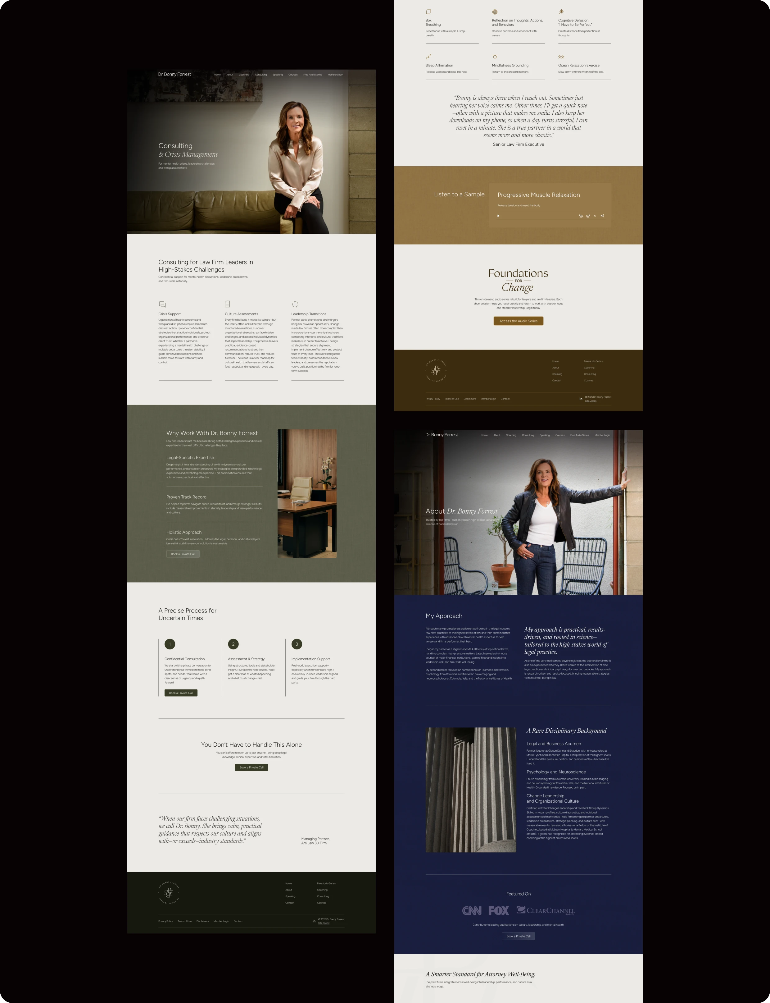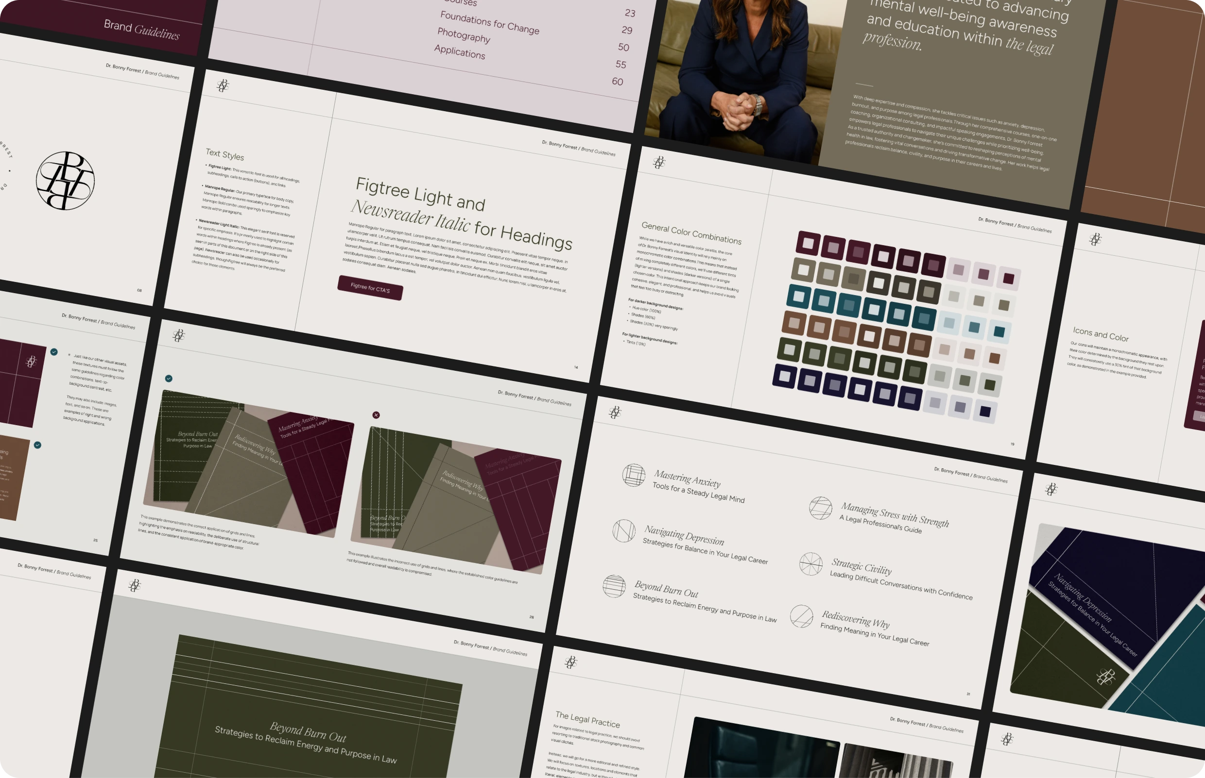 From programs to digital presence, we crafted a confident, elegant visual language for Dr. Bonny Forrest, establishing her authority in legal mental well-being.