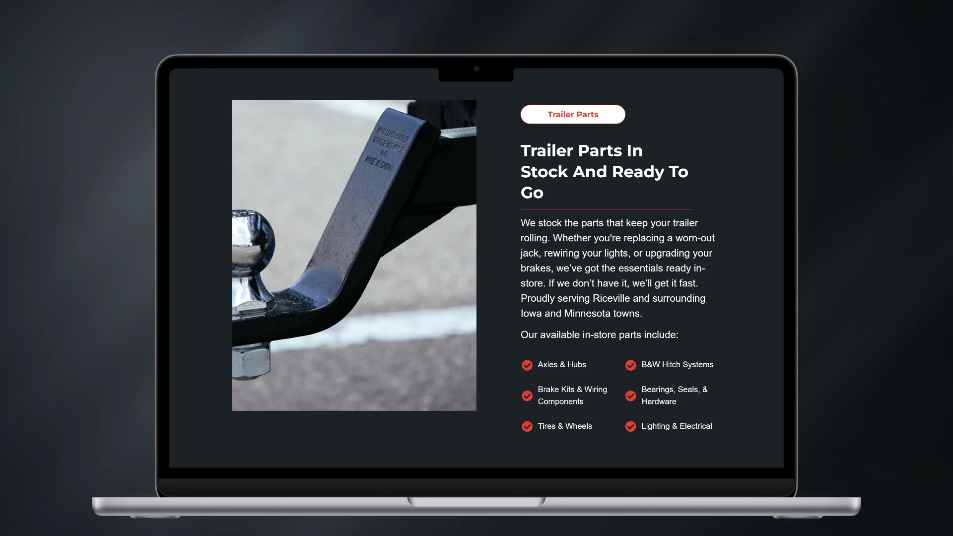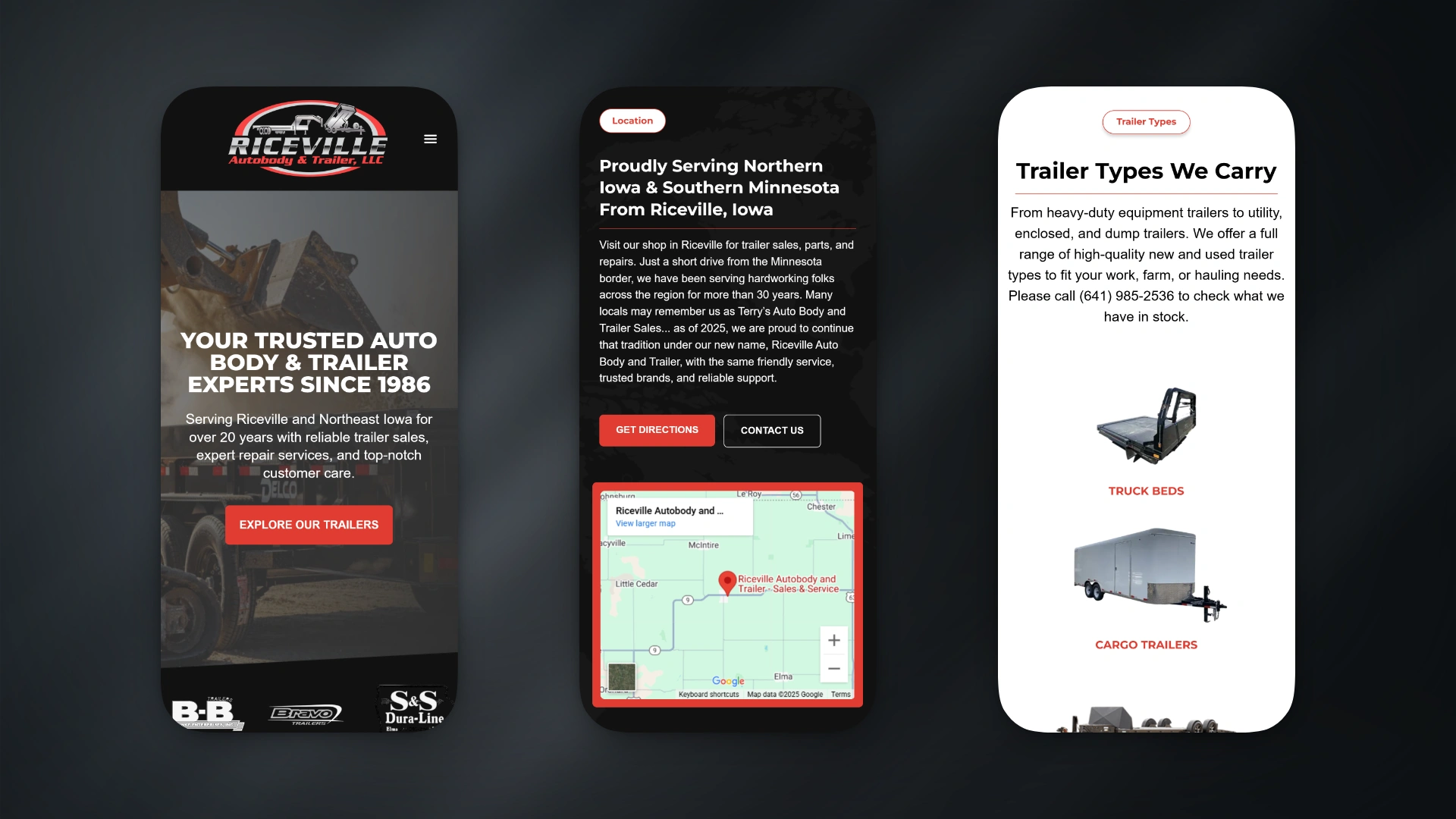 Riceville Auto Body & Trailer LLC wanted a modern and reliable online presence to highlight their auto body repair services, trailer maintenance, and vehicle inventory. The project began with a homepage design to establish tone and style before expanding into service, inventory, and contact pages. Each section was carefully planned to reflect professionalism and make information easy to find.