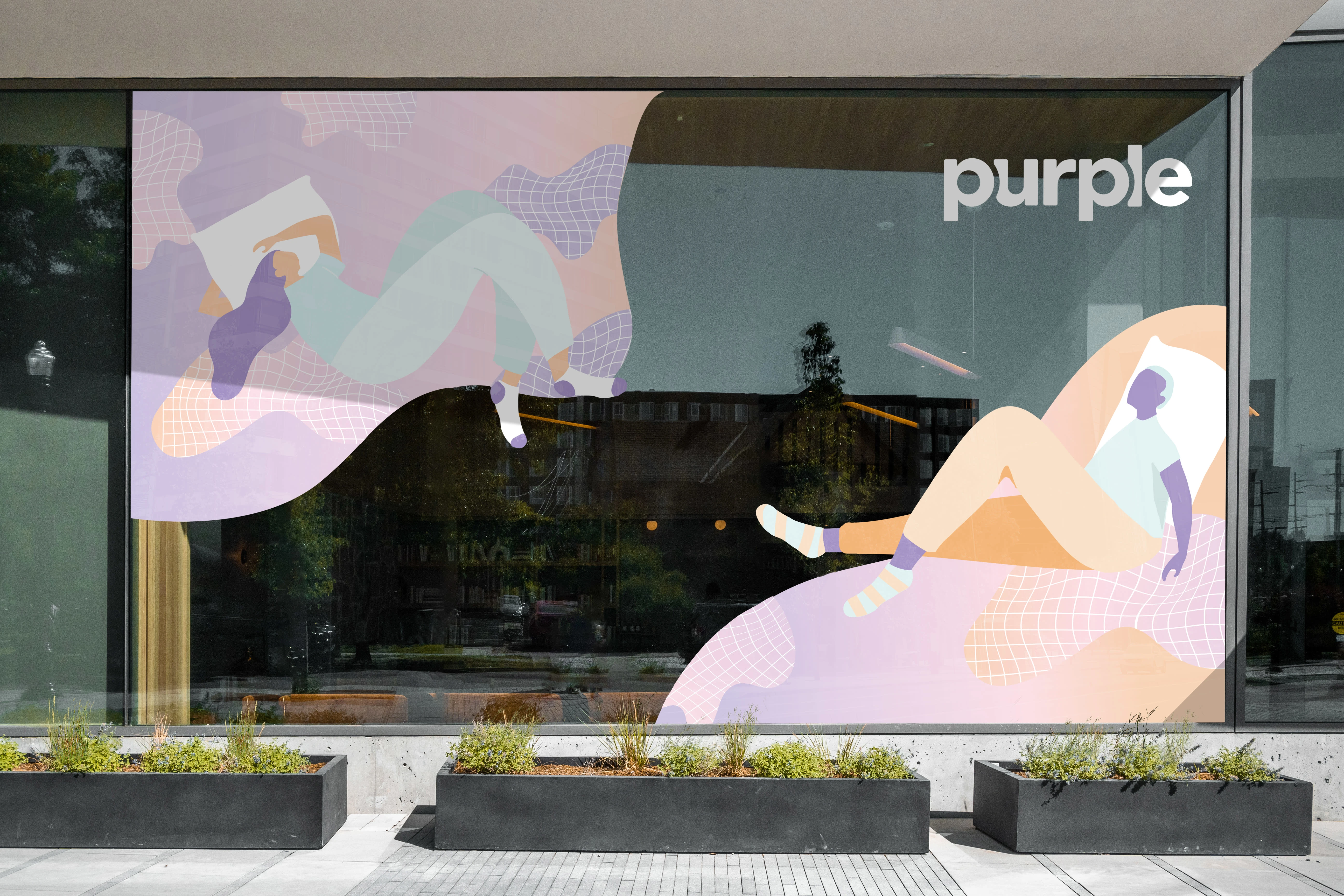 Brand design done for Purple, I worked on countless digital ads, OOH, campagins, video shoots, photoshoots, packaging, print pieces, signage, and more!