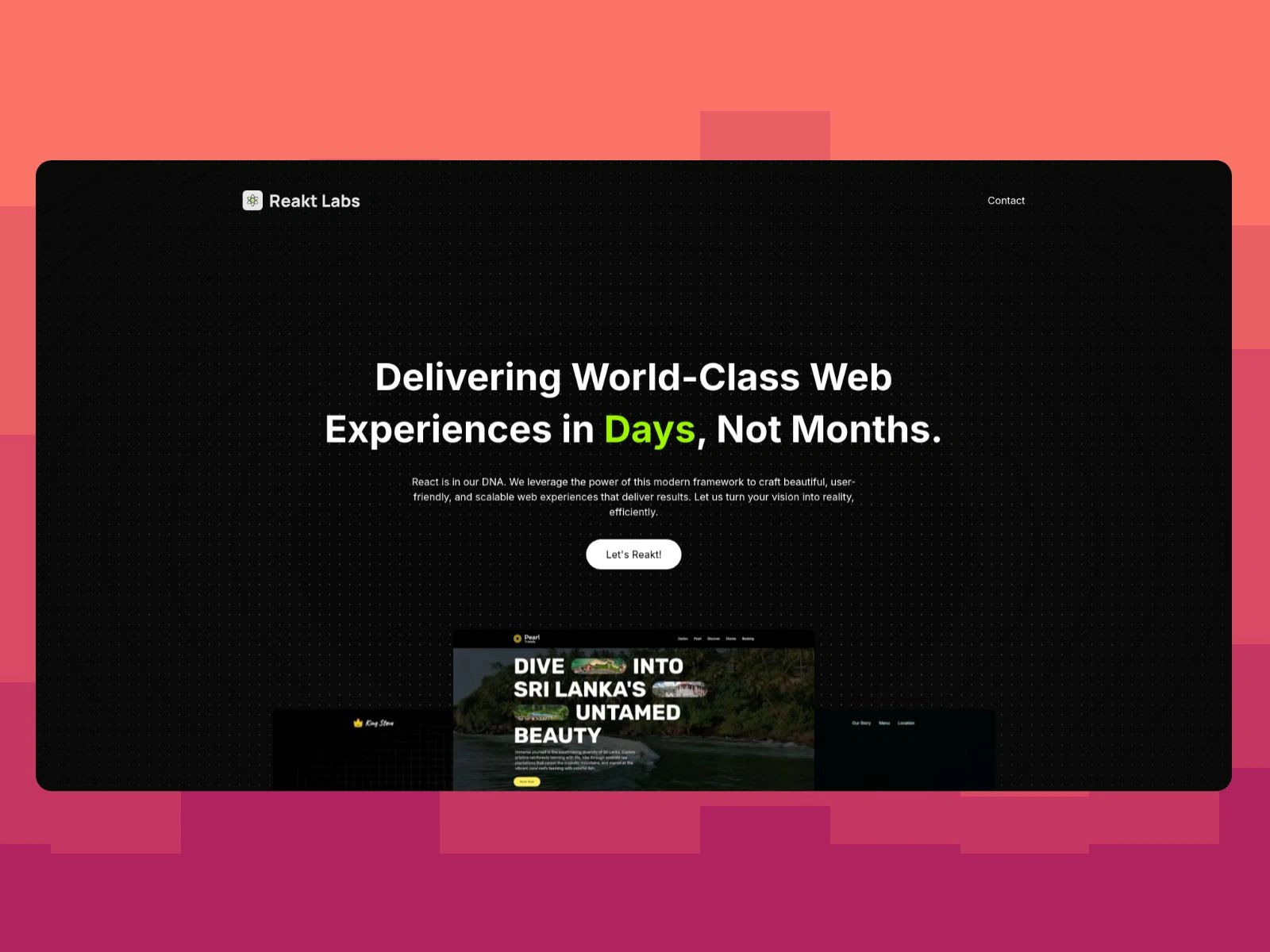 ReaktLabs is a young and vibrant web development agency founded in 2024, driven by a passion for building incredible web experiences with React. The agency specializes in creating dynamic, high- performing, and scalable web applications, leveraging the latest technologies to deliver exceptional results in record time. At ReaktLabs, it’s not just about building websites—it’s about shaping the future of the web, one innovative project at a time.
