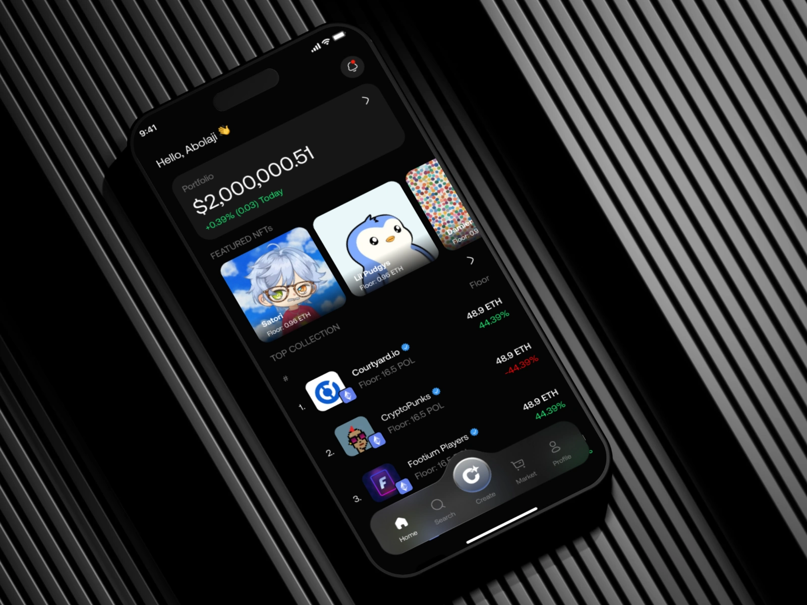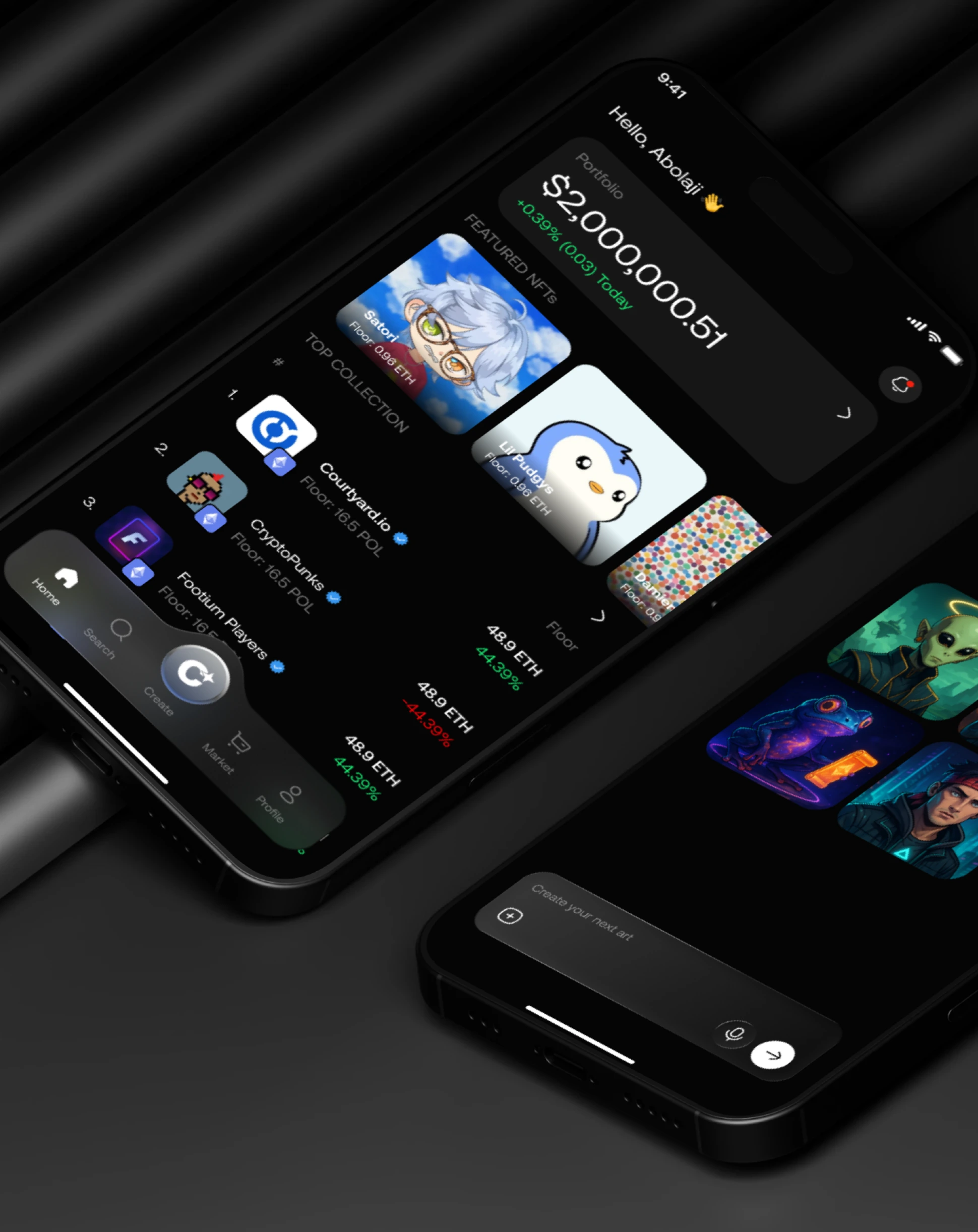Market screens that highlight trends, floor prices, and creator drops