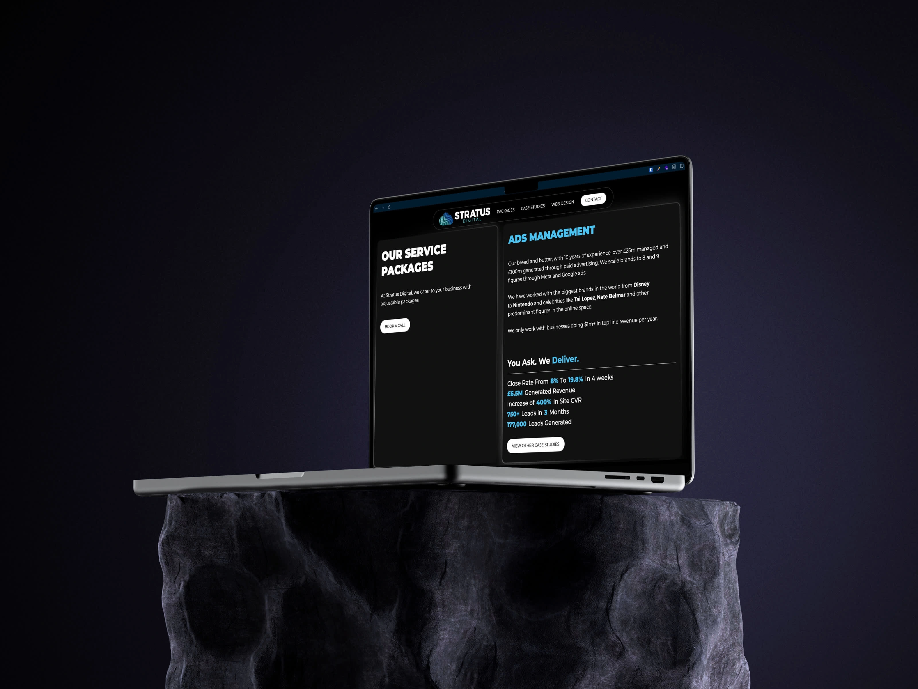 A completely fresh site build for a marketing agency with 10 years experience, £25M+ managed and £100M+ generated through paid advertising.