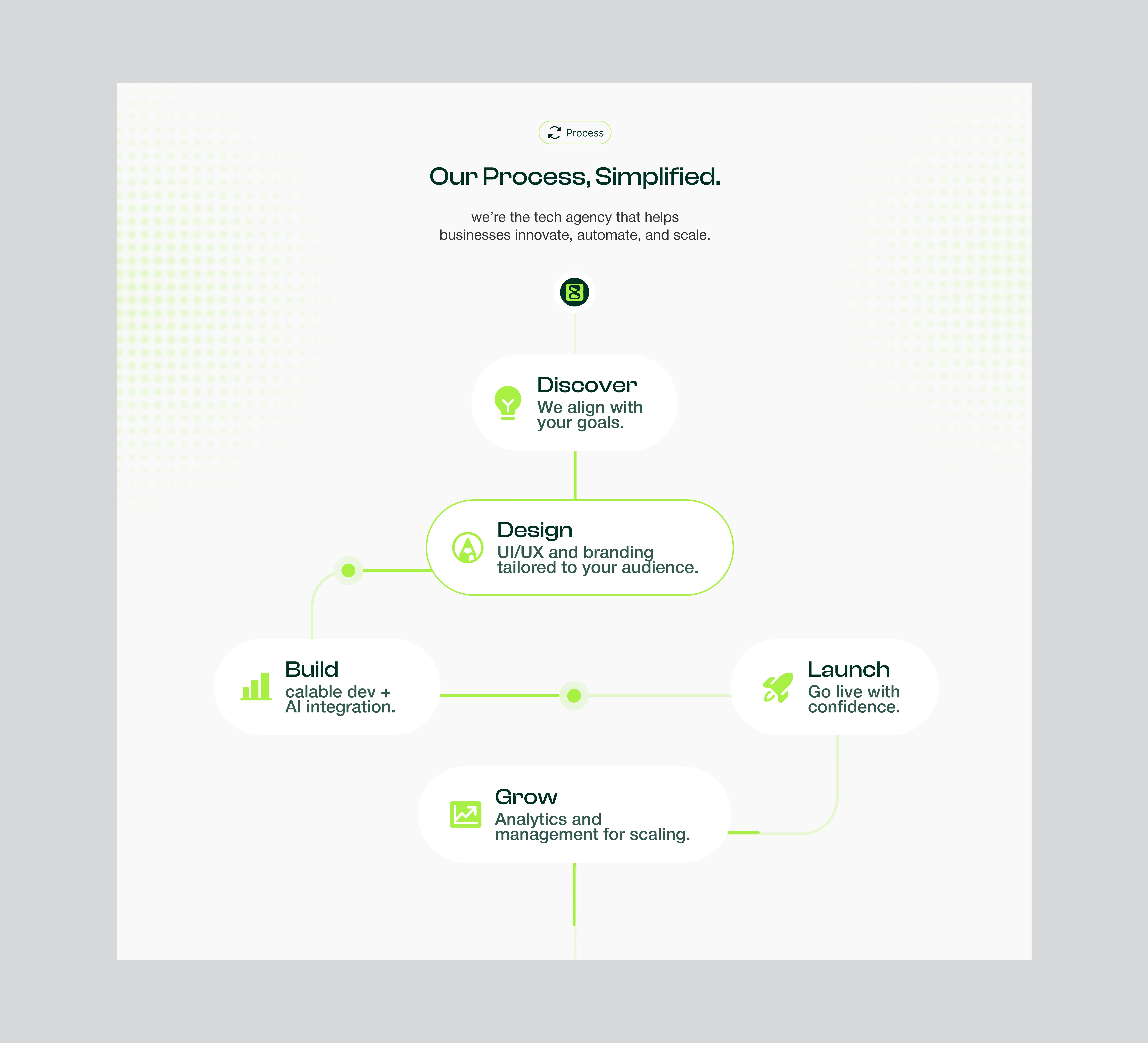 In the services section, I aimed to provide a comprehensive overview of the entire product journey, encompassing the stages of discovery, design, development, launch, and subsequent growth.