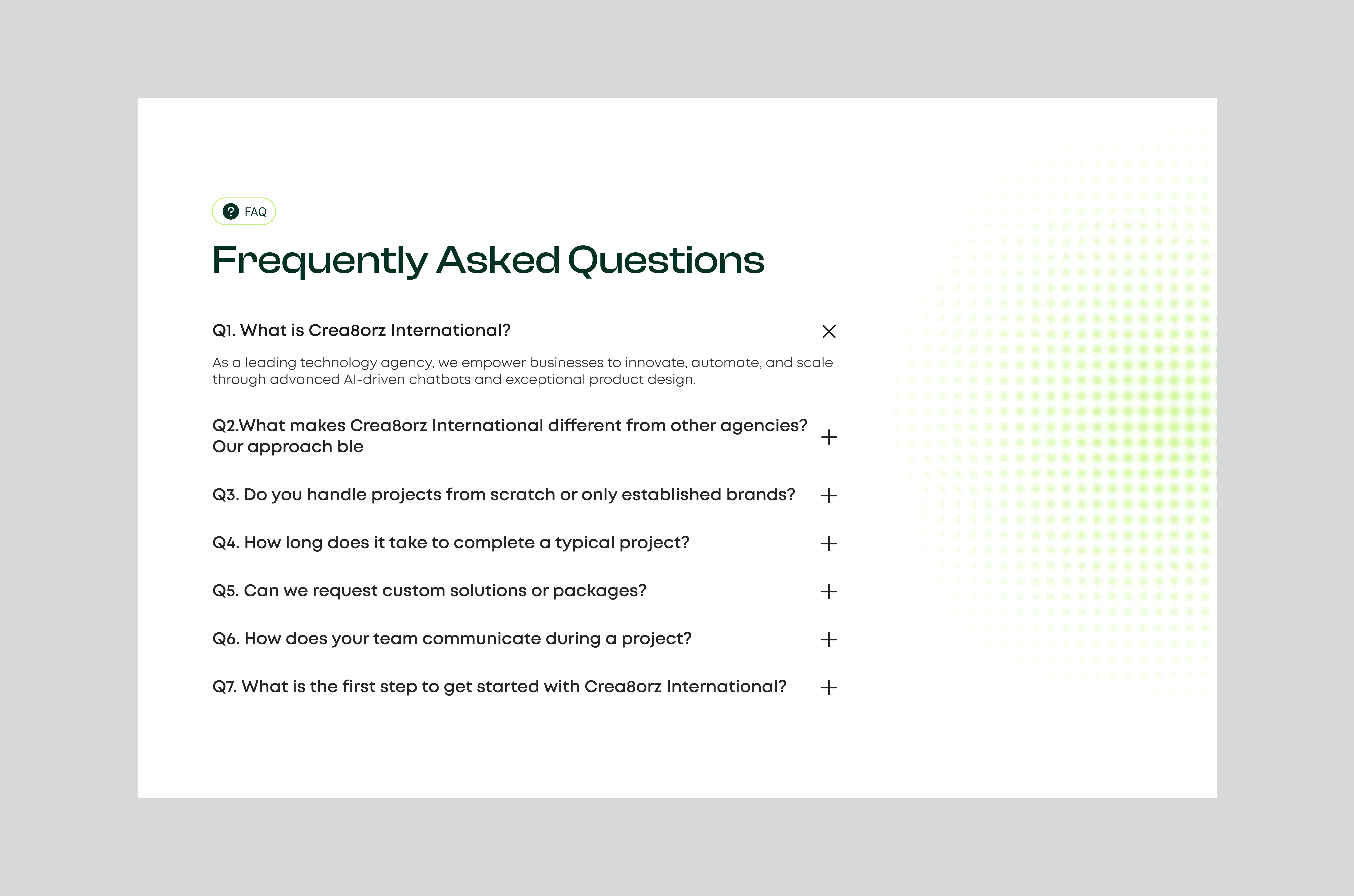 In the FAQ section, I sought to address the essential questions that prospective clients may have in the most effective manner possible.