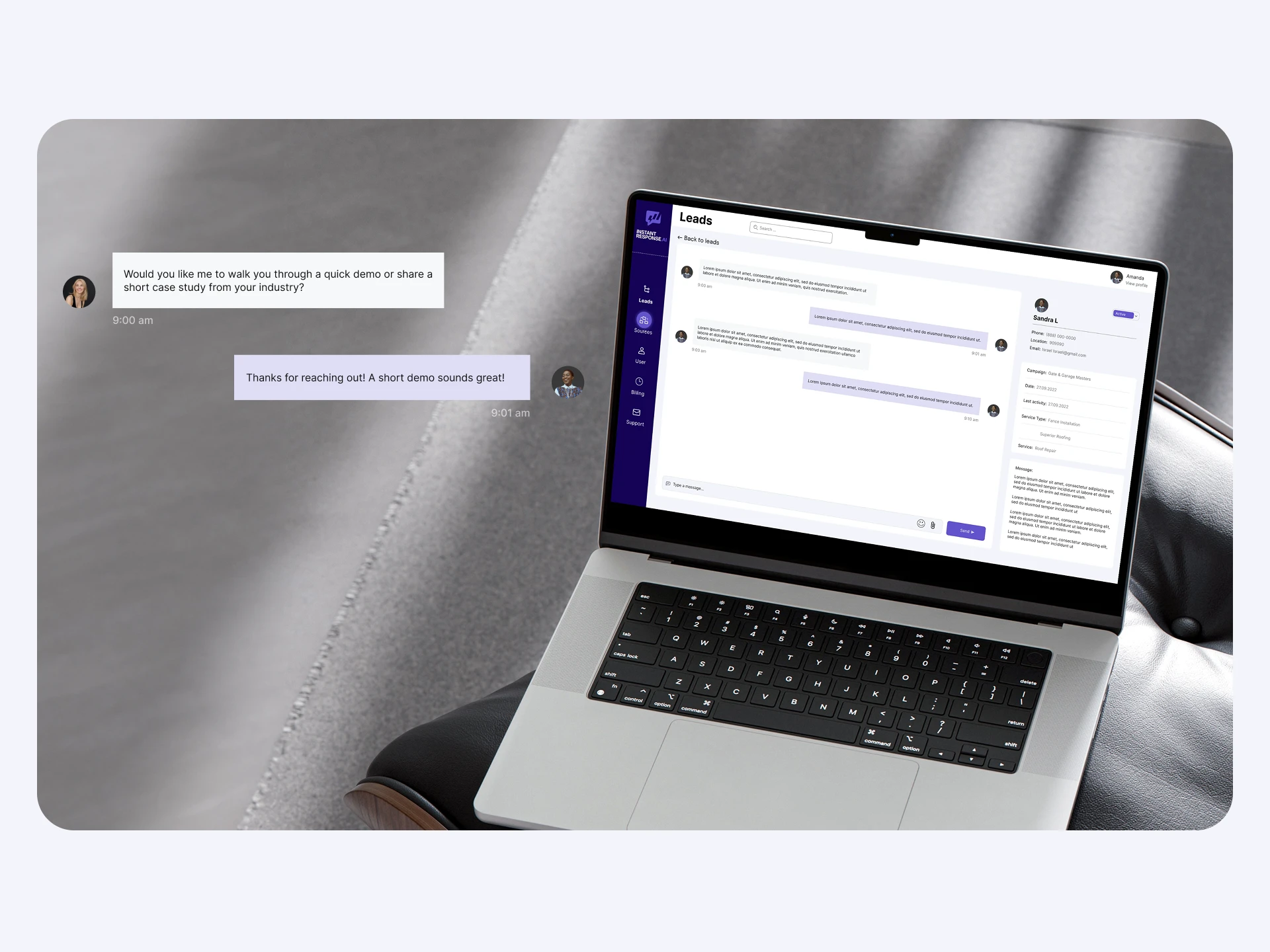 Multi tenancy Marketing tech lead management platform created for home service businesses to manage their Yelp and Google Local Services leads in one central place. By integrating directly with Yelp and GLS APIs, the platform enables real-time lead syncing, in-app chat for instant customer communication, and AI-powered message recommendations. Users can set up default messaging schedules, send automatically responses, and never miss a potential client - all from a single, easy-to-use dashboard.