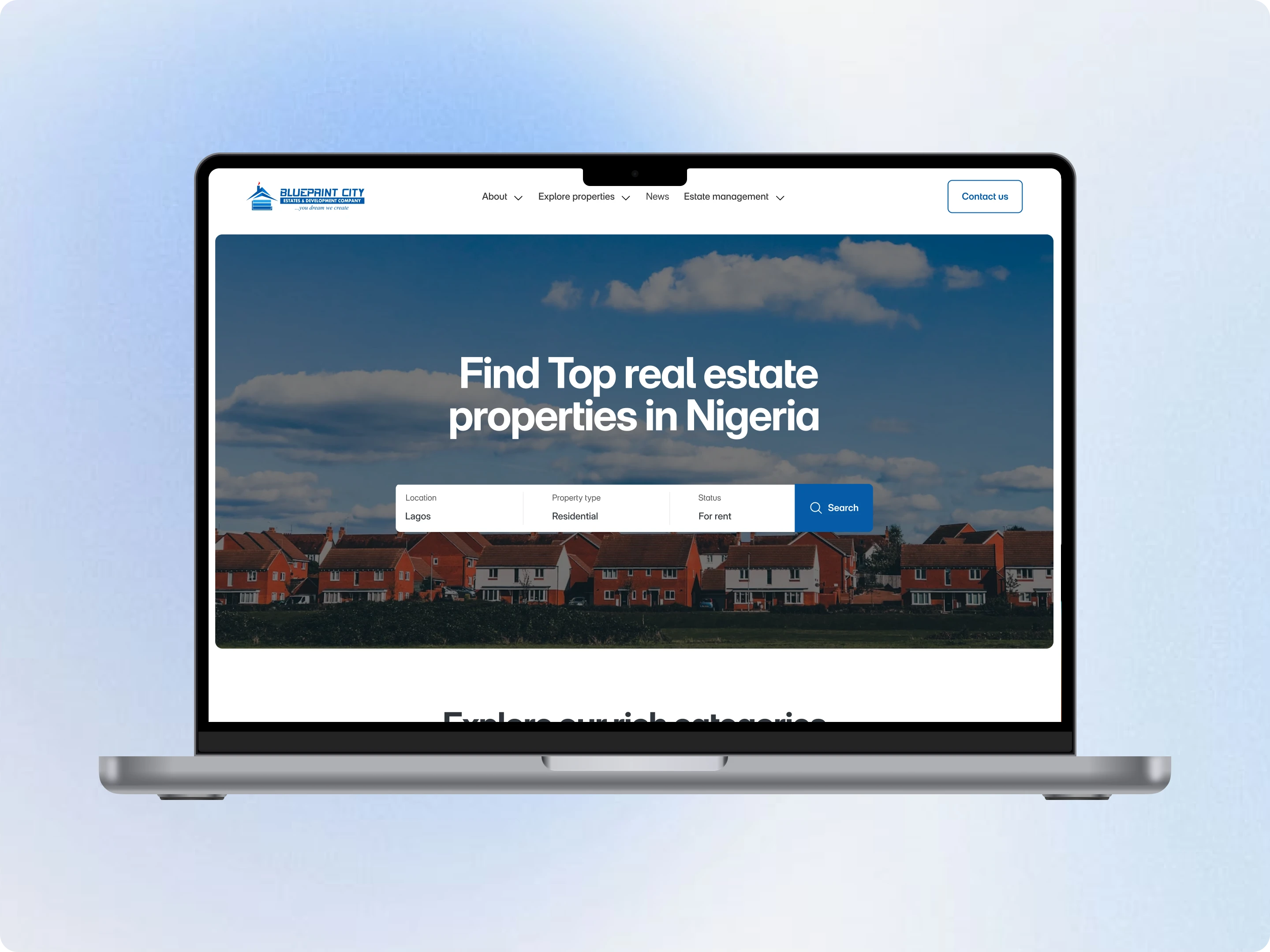 Blueprint City is a real estate brand that connects people with rental and sale properties. The goal was to design a modern, trustworthy digital experience that simplifies property hunting—making it easier for users to find, explore, and commit to their next home.